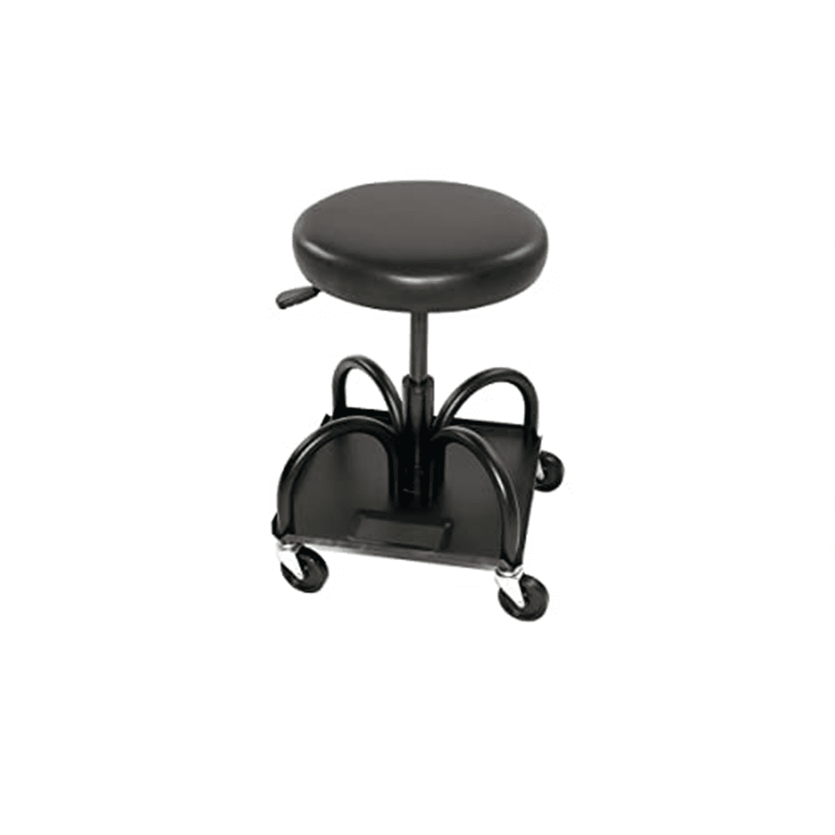 14″ round seat offers superior comfort with a memory foam feel Heavy duty 1″ steel tube frame is powder coated to resist rusting Seat adjusts from 17″ to 22″ 3″ oil resistant casters offer a 480Lb weight capacity Storage tray has magnetic strip to hold small parts and tools