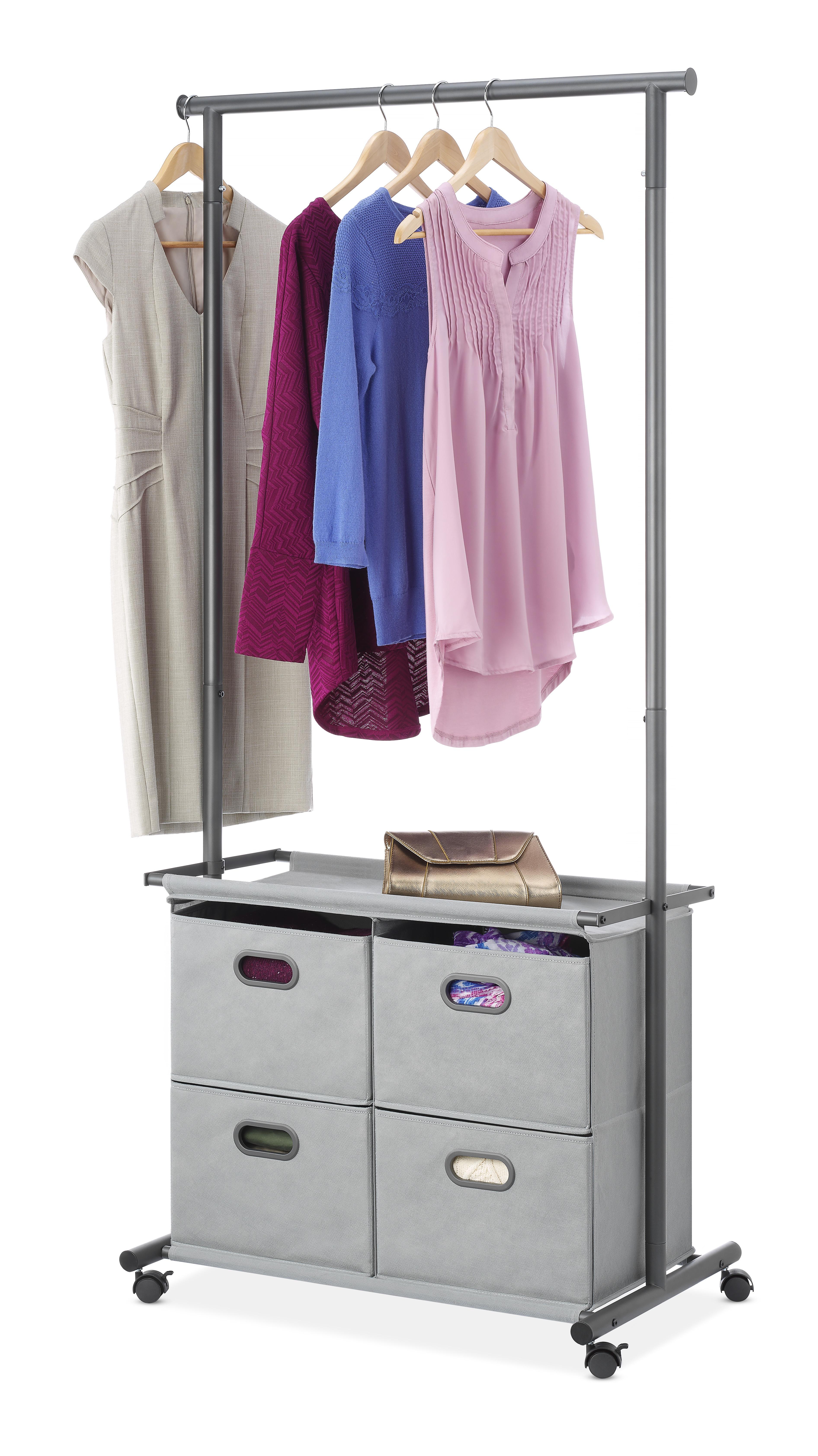 Whitmor 4-Drawer Rolling Garment Rack – Closet Organizer – Gray