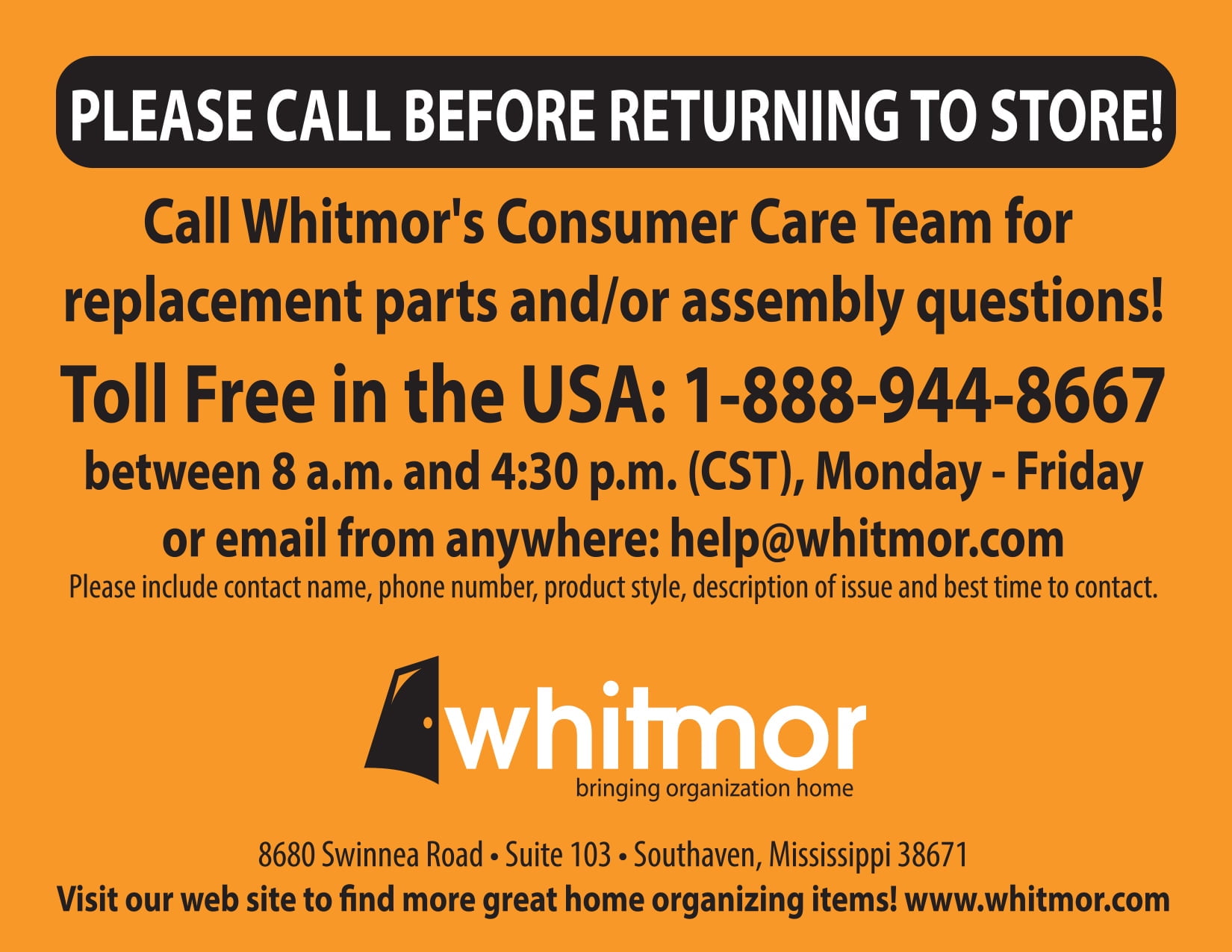 This Whitmor expandable garment rack is a heavy-duty garment rack made of durable chromed steel with commercial grade wheels, two of which lock. The push pins make it easily adjustable from 3. 5 ft. to 5. 3 ft. in height, and the base from 4 ft. To 6 ft. Long. Easy to clean, just wipe with a damp cloth and towel dry. This item comes with a 10-year limited warranty. Assembled dimensions: 20.75 L x 74.375 W x 63.50 H inches. Whitmor is a 4th generation family-owned and operated business. Since 1946, Whitmor has been dedicated to bringing organization home by creating products that simplify everyday life. Ensuring that those products are built with integrity, value, and innovation is our commitment to you. And our promise is that we will always be here for you should you ever need us as we stand behind our product 100%. Whitmor customer service is available in English and Spanish Monday through Friday from 8 am – 4: 30 pm CST. Call us and we will gladly assist you in your language. You may contact Whitmor toll-free at 1-888-944-8667 or via email at [email protected].