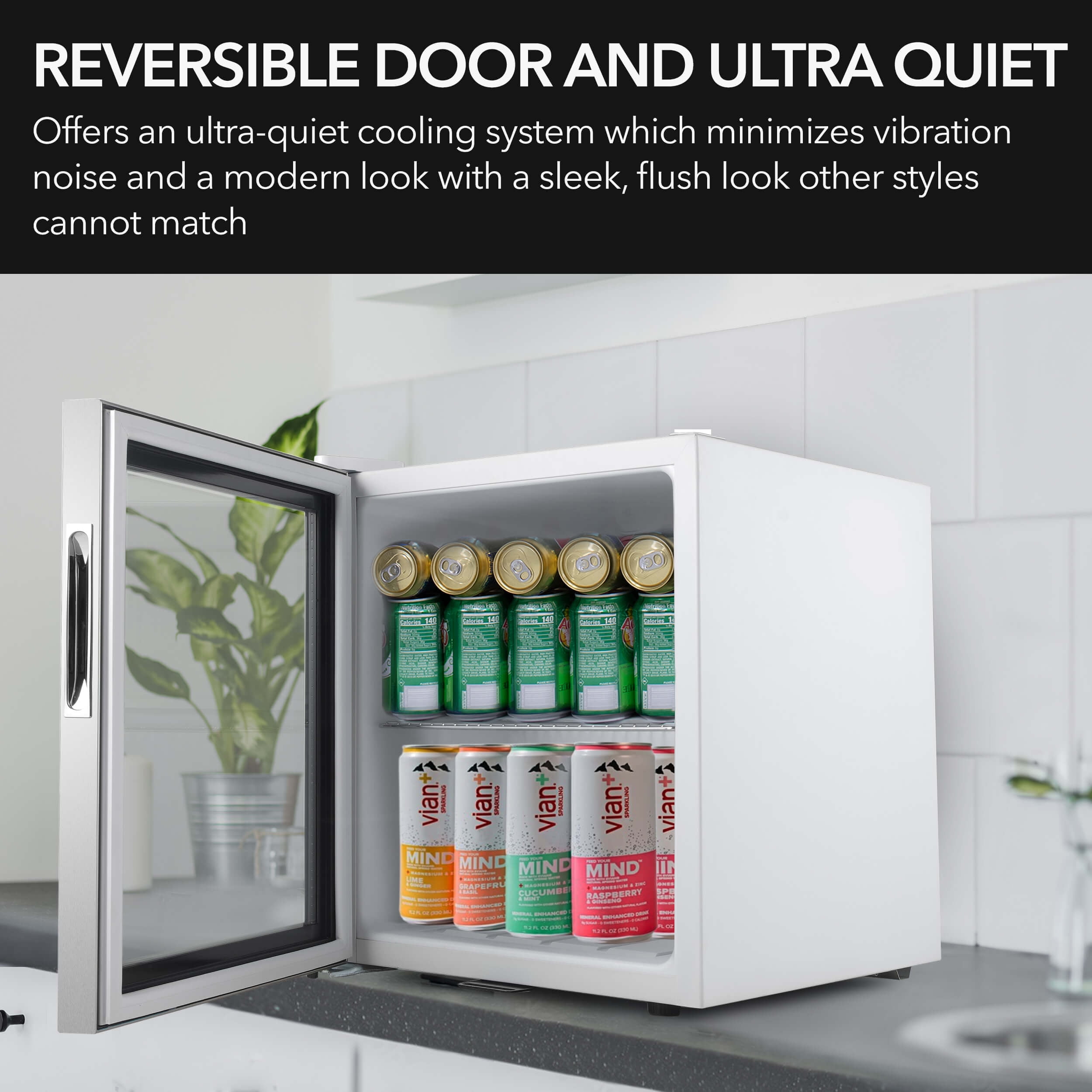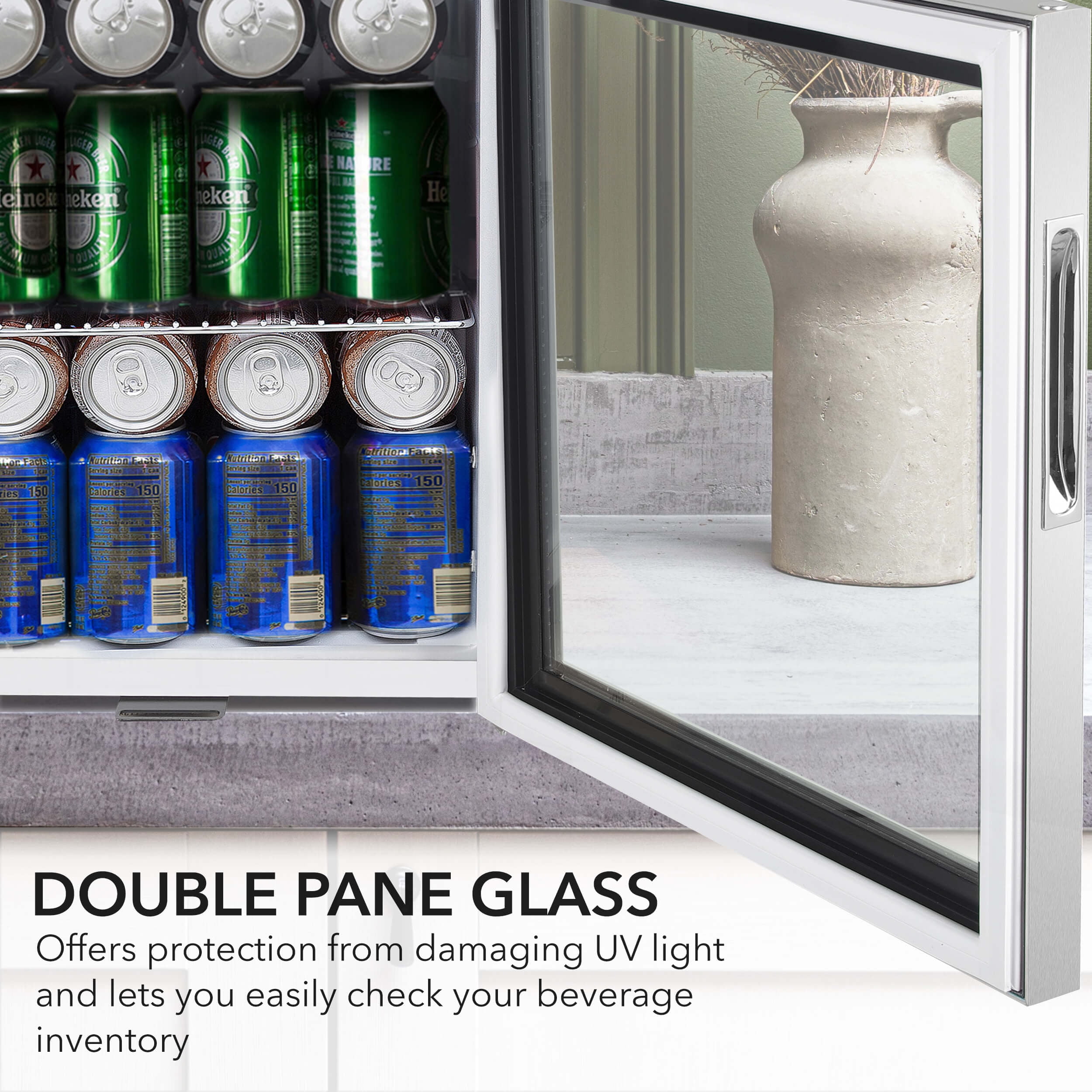 The Whynter 68 Can Stainless Steel Beverage Refrigerator is the ideal for compact, efficient, beverage display. The Whynter Beverage Refrigerator offers a compact and powerful cooling solution ideal for your entertaining or retail merchandising needs. With its powerful compressor and internal air-cooled system, this beverage refrigerator creates an evenly-cooled space ensuring consistent temperatures throughout. The stainless steel trimmed glass door allows you to see view the contents while maintaining internal temperatures and increasing energy efficiency. The Whynter 62 Can Stainless Steel Beverage Refrigerator is equipped with a lock to keep your beverages safe and secure. The door swing direction is also reversible for customization to your specific requirements.