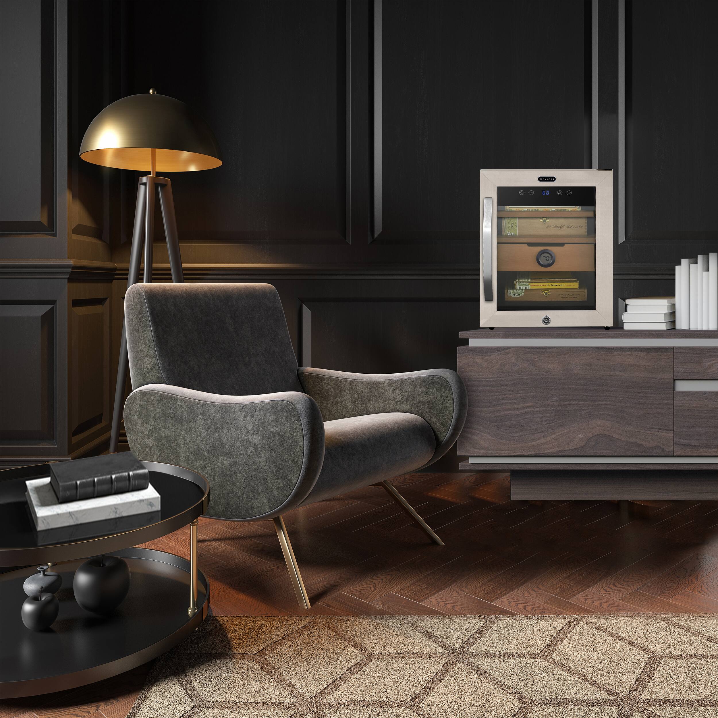 Whether you are a true cigar aficionado or a casual enthusiast, the Whynter CHC-123DS is an ideal cigar storage system that can help preserve the flavor of your cigars and protect them from pests or other harmful conditions. This unit is designed to help store and age cigars within the optimal humidity range 62% to 75% at room temperature. This cigar humidor contains a humidification tray (for use with preferred solution/moisture beads) and equipped with an elegant digital hygrometer which helps monitor the desired level of humidity. A temperature controlled environment is also critical for discouraging the proliferation of any pests that may be present in the tobacco leaves. The thermoelectric cooling system used here minimizes the drying effect when cooling, relative to the compressor based cooling systems in many refrigeration units. Furnished with two Spanish Cedar flat shelves and one spacious drawer, the Whynter CHC-123DS helps maintain humidity, emits a light complementary aroma, and helps repel damaging insects.