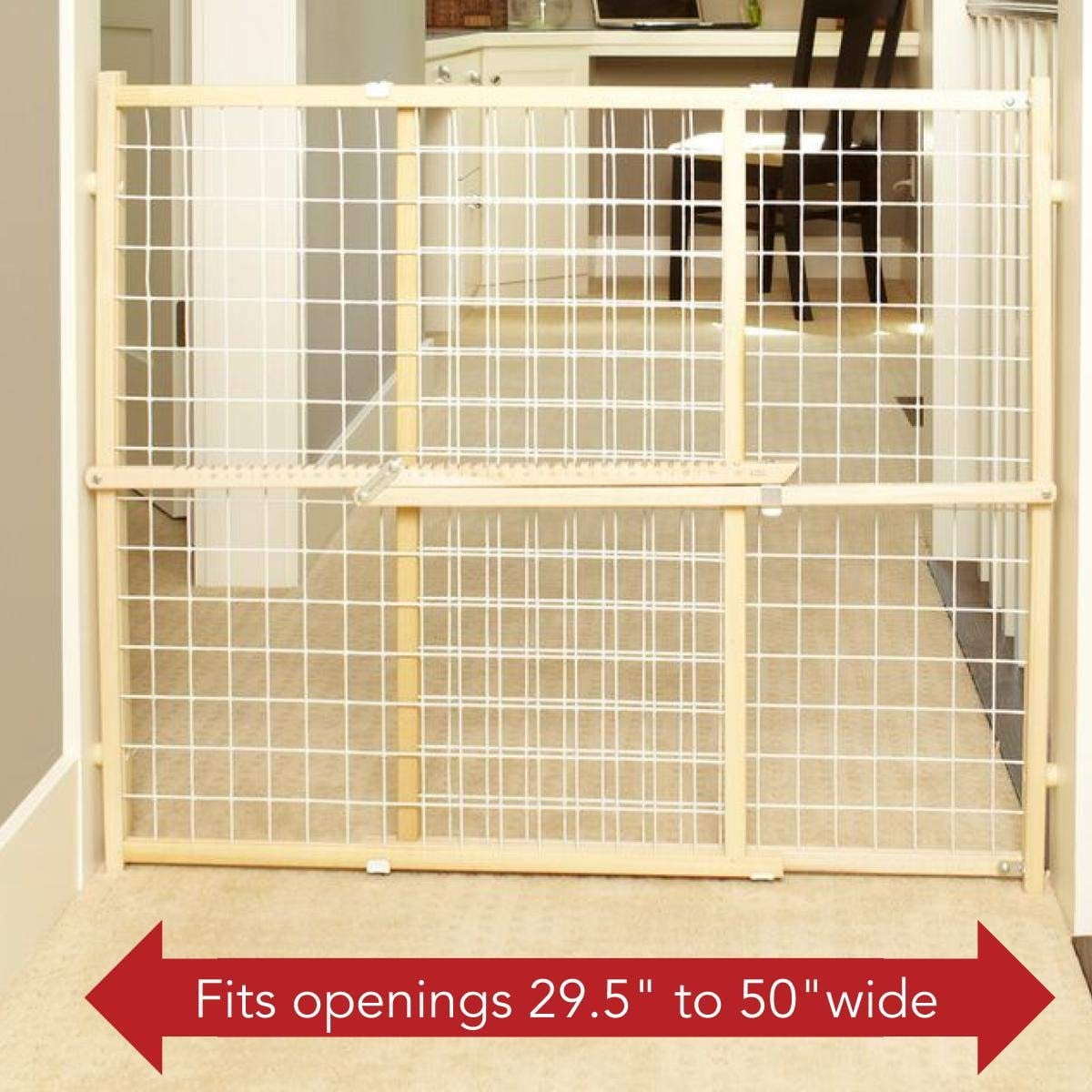 It’s three cheers for playful days with the Toddleroo by North States® Extra-Wide Wire Mesh Wood Gate, specially designed for wide openings. With quick set up, the gate pressure mounts easily and securely without the use of hardware. Simply position and lock in place. The sturdy wood frame of this gate is made from American sustainable hardwood making it extremely durable. This wood comes from USA sustainable forests which are carefully managed so that trees are replaced with seedlings as they mature and fall. These efforts help to preserve the natural environment in which we live.