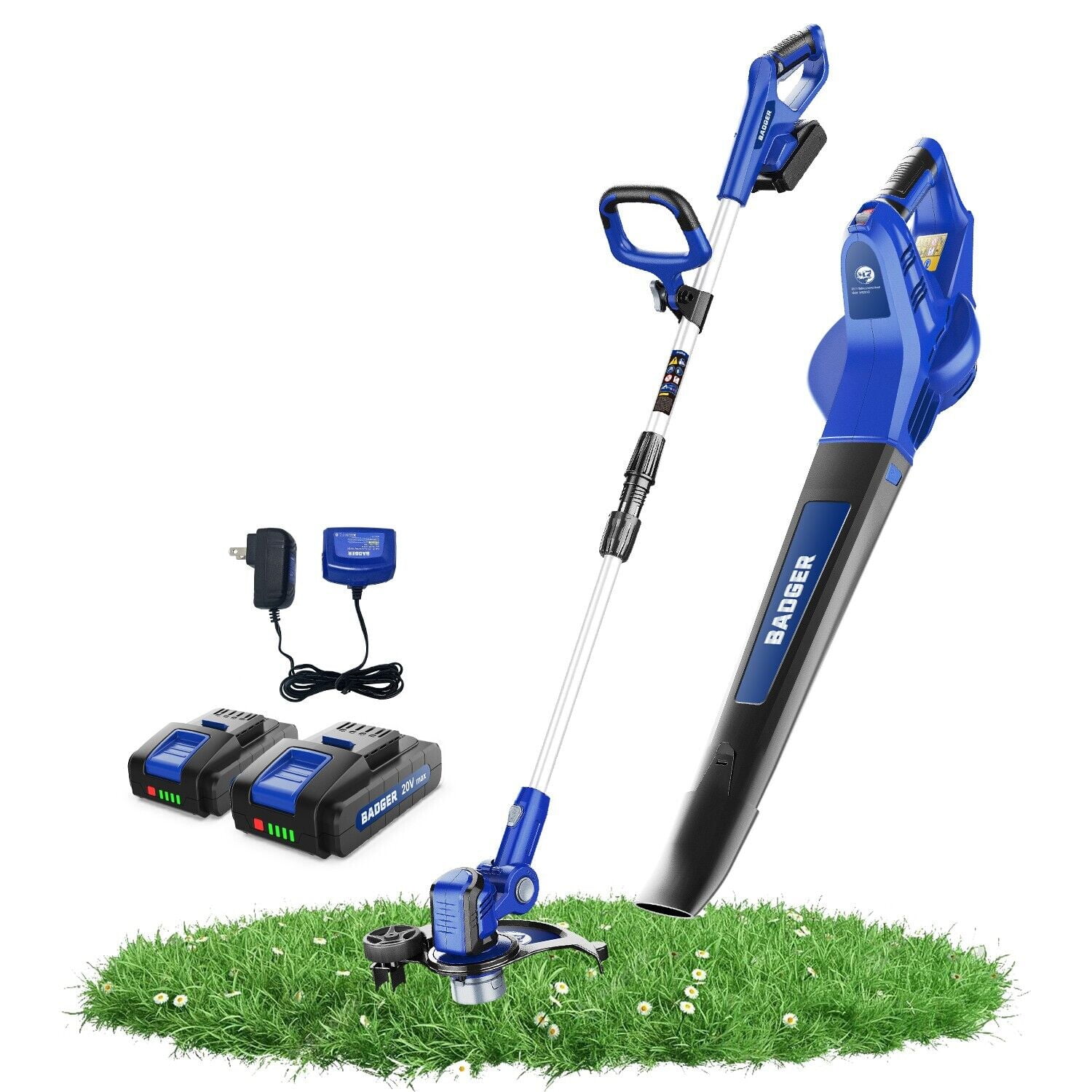 The WILD BADGER POWER 20V Cordless String Trimmer/Edger and Leaf Blower Combo is the perfect all-in-one solution for maintaining a tidy yard with ease. Featuring a 12-inch cutting width, this string trimmer effortlessly transitions into a wheeled edger, allowing for precise lawn edging without extra effort. The single-line auto-feed system ensures continuous operation without the need for manual adjustments, while the adjustable auxiliary handle provides customizable comfort to suit different working environments. The 145MPH leaf blower with 94 CFM airflow efficiently clears leaves and debris, making post-trimming cleanup quick and effortless. Powered by the 20V battery system, this cordless set delivers reliable performance with two 2.0Ah batteries and a charger included, ensuring extended runtime and convenience. Lightweight and easy to handle, this versatile string trimmer and blower combo makes lawn care simple, efficient, and enjoyable for any homeowner.