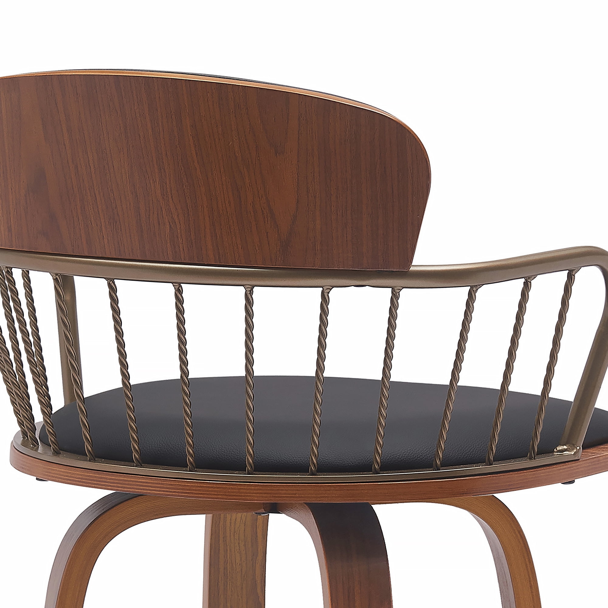 Willow 25.5″ Swivel Walnut Wood Counter Stool in Black Faux Leather with Golden Bronze Metal