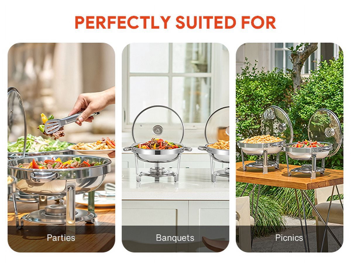 Wilprep 2 Pack Chafing Dish Buffet Set 5qt Stainless Steel Food Warmers with Glass Lid