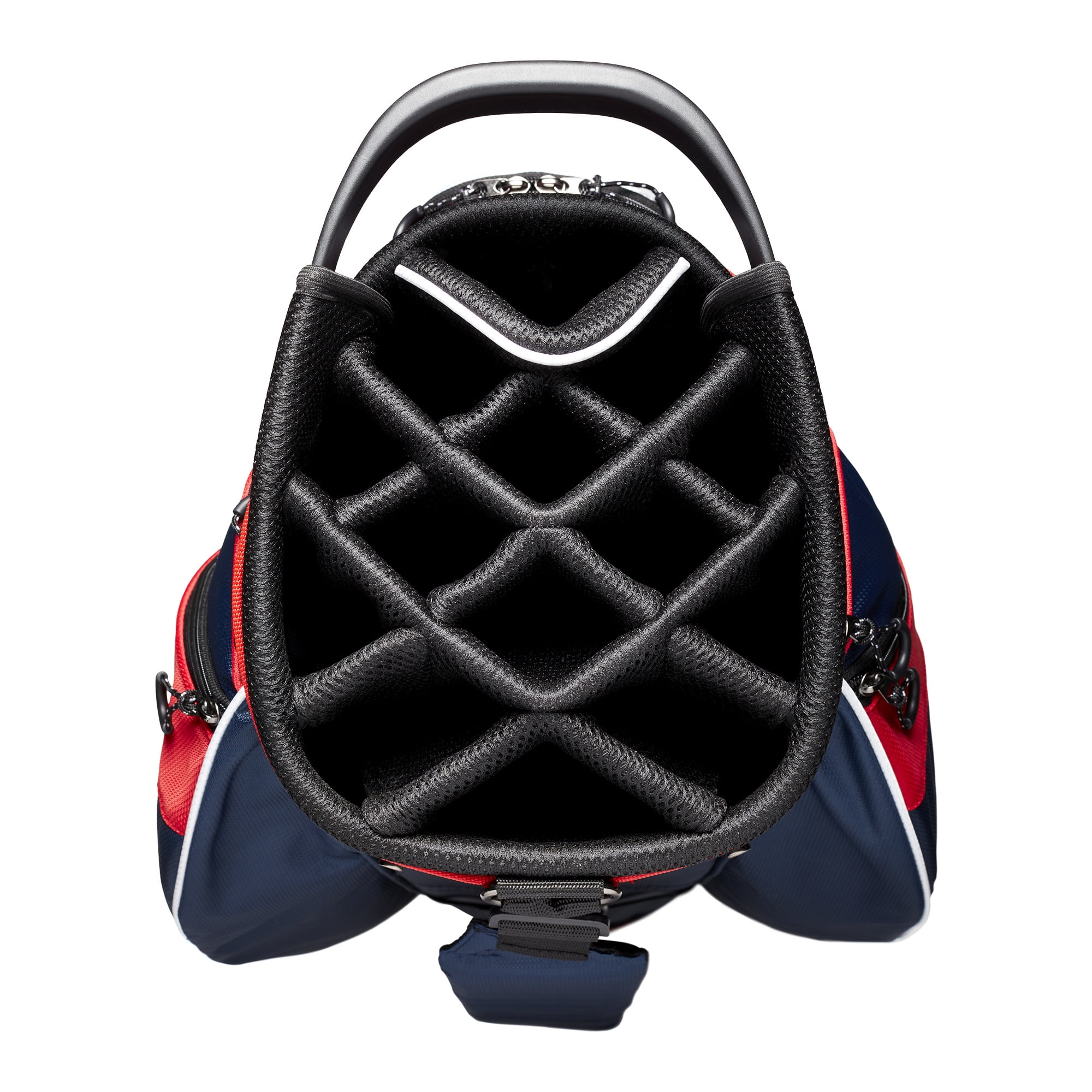Lightweight bag optimized for cart use Padded, 14-way top protects clubs Ergonomic single shoulder strap 7 large easy-access pockets Includes umbrella holder, towel ring, and glove holder