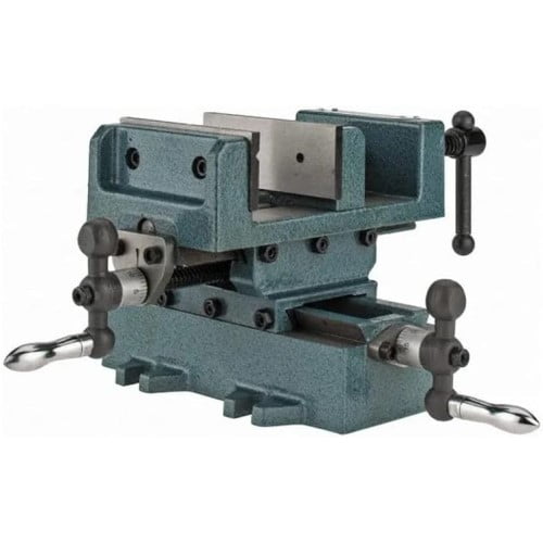 Accurately moves your workpiece in horizontal and longitudinal for precise positioning Cast side knobs accurately dial in 0.1millimeter increments Hardened V Grooved Jaws hold round shaped objects both vertically and horizontally Durable construction with fine grain cast iron castings Black oxide coated screw provides consistent clamping pressure Durable base has 5 bolt lugs for easy mounting on a machine table Specifications: Jaw width: 4 inches Opening capacity max: 4 inches Jaw depth: 1.38 inches X-travel: 4.9 inches Y-travel: 4.9 inches Color: Blue Dimensions (L x W x H): 7 x 10.5 x 5.75 inches Weight: 20 pounds Manufacturer warranty: Lifetime warranty