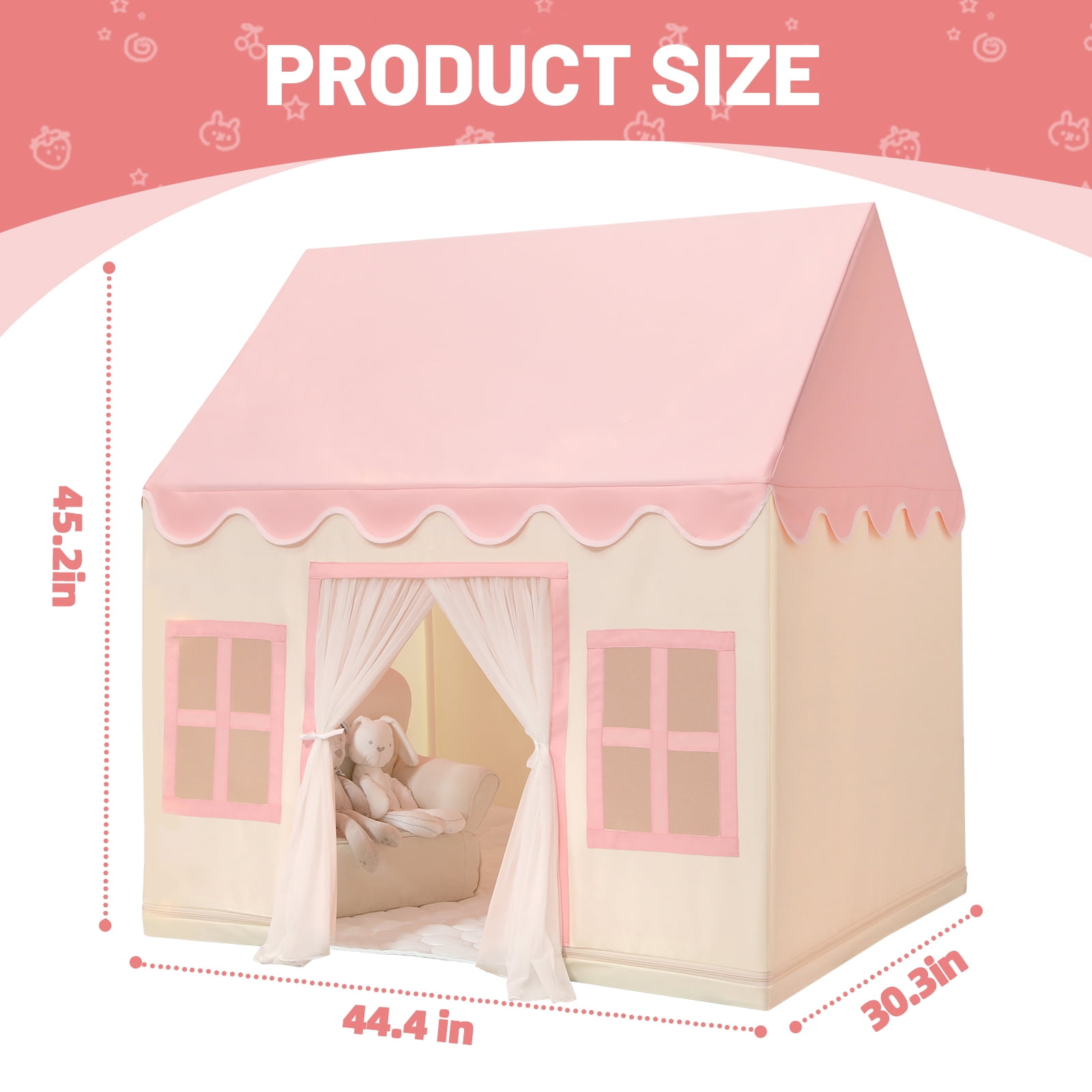 Perfect Gift for Kids: Children need this childhood gift, a secret space of their own. They can rest, read and enjoy this peace in this baby playhouse, invite friends to role-play, play and enjoy this pleasure, enter their own fairy tale world, grow up slowly in their dream castle and have a wonderful childhood. The play tent is spacious enough (44.4 x 30.3 x 45.2 inches) to accommodate more friends, toys. Complete quality and accessories, can bring better experience for kids. Easy to assemble, just ten minutes to set up complete, can be easy for you to clean and move around.