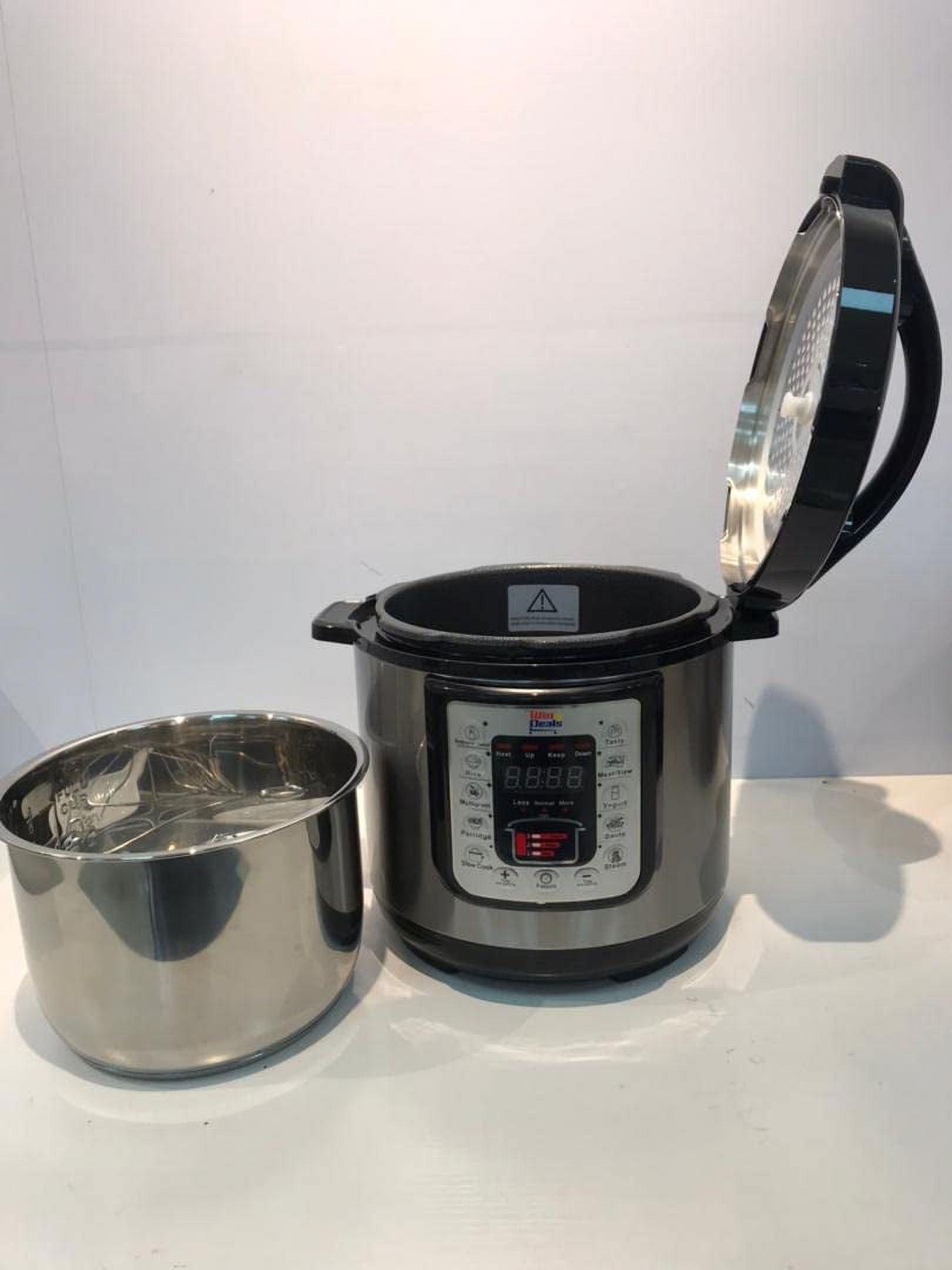 8-IN-1 MULTI-FUNCTIONAL ELECTRIC PRESSURE COOKER: This automatic 6 Quart electric pressure cooker is a combination of 8 kitchen appliances in 1. It combines the benefits of a Rice Cooker, Steamer, Meat/Stew, Sauteing, Slow Cooker, Porridge, Yogurt Maker, Food Warmer etc. A beautiful addition to your kitchen that cooks your favorite dishes at the touch of a button! INNOVATIVE TECHNOLOGY & FUTURISTIC DESIGN: Intelligently programmed with an embedded microprocessor that helps monitor pressure, temperature and time, also adjusts heating intensity accordingly. Exclusively designed to avoids the common errors, this cooker with high-grade stainless steel inner pot prevents your foods from overcooking and keeps the nutrition intact. PRE-SET COOKING FUNCTIONS FOR EFFORTLESS PRECISE COOKING: Amp up your chef skills with this fully programmable pressure cooker that makes every day meal planning simpler. With 8 preset cooking functions it also comes with an automatic keep warm feature to keep the food warm for a long time. Its dual pressure setting reduces your cooking time up to 70%.