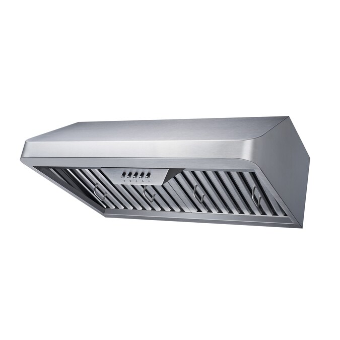 Enjoy style, value, and convenience with this 30 In. ducted under cabinet range hood from Winflo. The eye-catching high profile design is constructed of premium stainless steel to deliver elegance and easy cleaning. Complete with easy removable stainless steel baffle filters with handles and grease collector that remove odors and grease from your cooking area and are dishwasher safe. Low noise level operation provides quiet while 300 CFM is sufficient for household use and an ideal balance between power, energy efficiency and noise control. This model also comes with 2 ultra bright energy saver LED lights and 3-level fan speed push button.