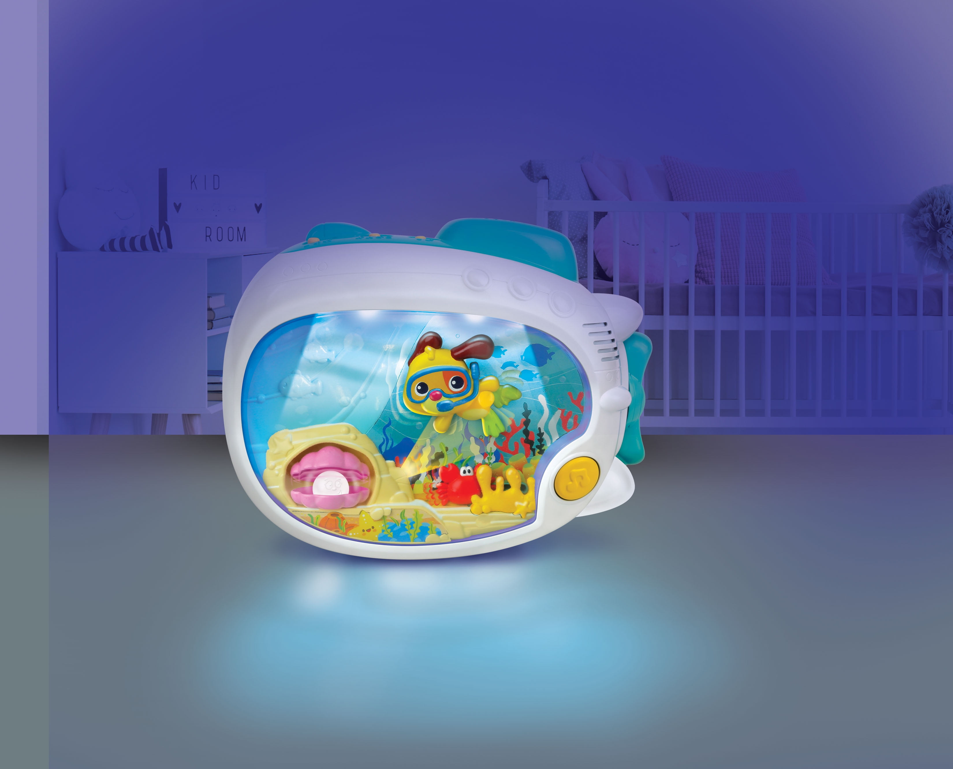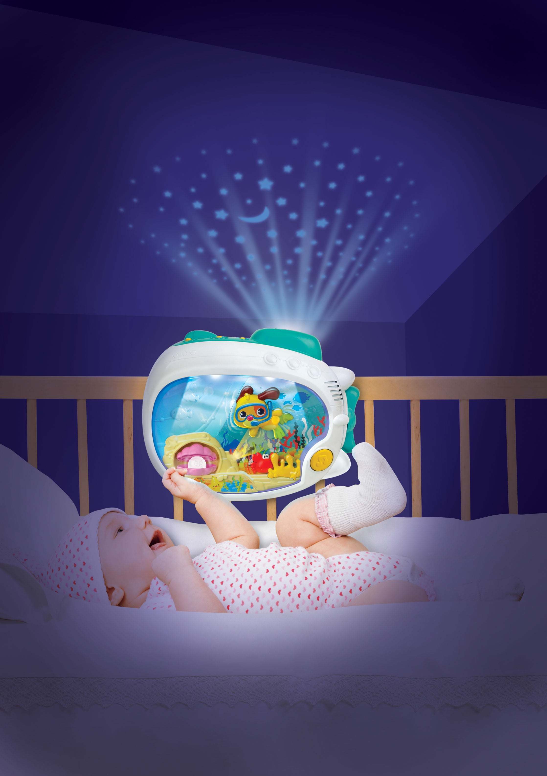 Winfun 720000 3 in 1 Soothing Seas Nightlight Includes Night Light and Required 2 C Batteries Projects a Calming Starry Night Sky Watch the Soothing, Swaying Motion of the Puppy, Crab, Pearl and Shell Easily Attaches to crib or Stands Alone on the Table -Top 3 C Batteries are Required and Included