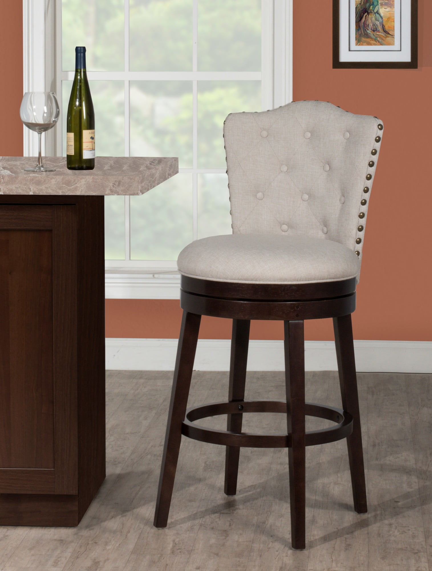Fiona Round High/Pub Table Refined details and casual elegance best describe this pub-style table with slightly flared legs. With a deep, rich walnut finish, the round table is an ideal size for a cozy dinner, working on your laptop or a game of cards. Great with any stools. The round table will accommodate up to four chairs. Table set up size is 33.66″W x 33.66″D x 38.98″H. Distance between legs is 16.14″. Match with our Wood Stools for a complete look. Made from solid wood in warm walnut finish. Simple Assembly Required. – Height: 38.98 – Material: Solid wood – Depth: 33.66 – Weight: 32.45 – Width: 33.66 – Collection Name: Fiona – Color Finish: Antique Walnut – Furniture Style: Transitional