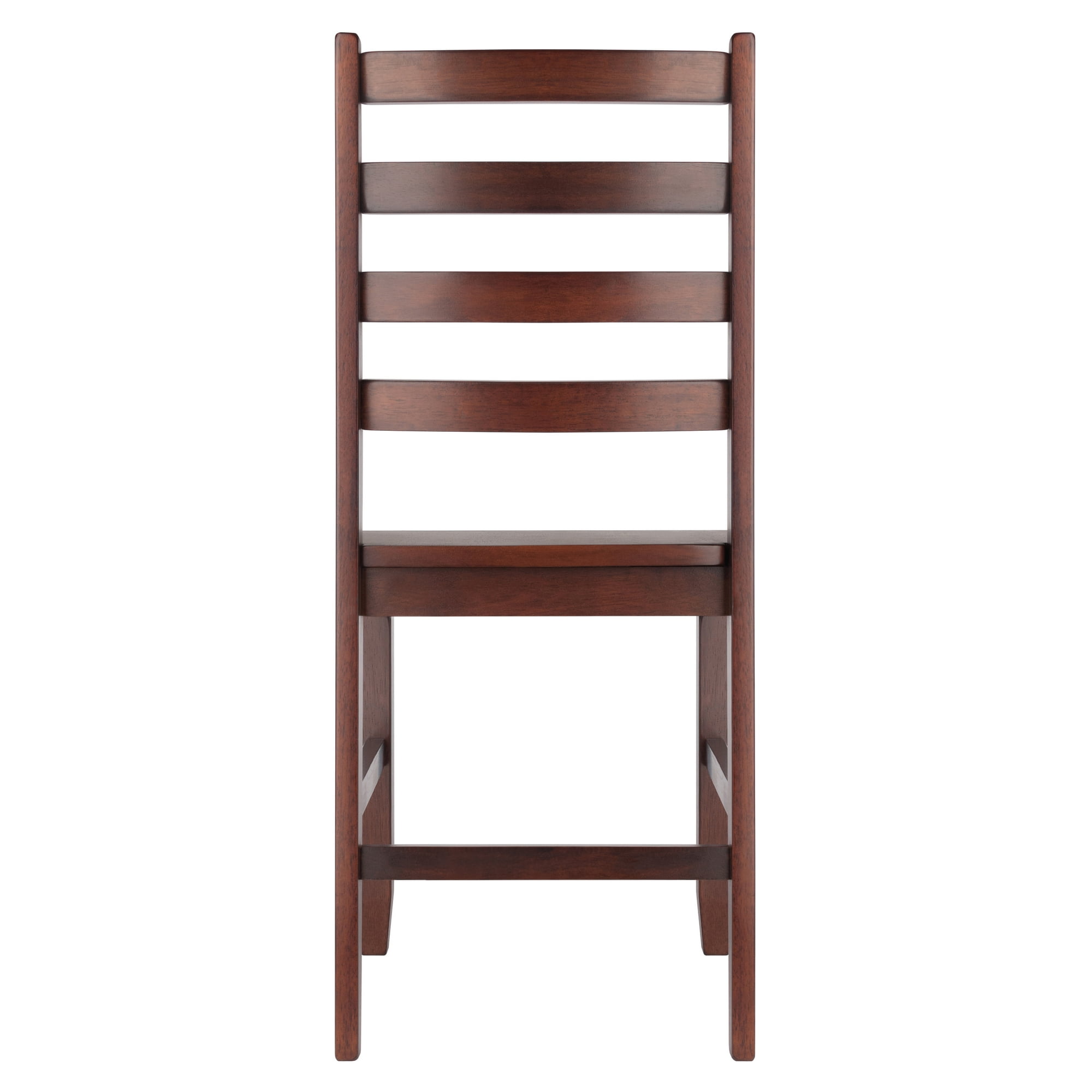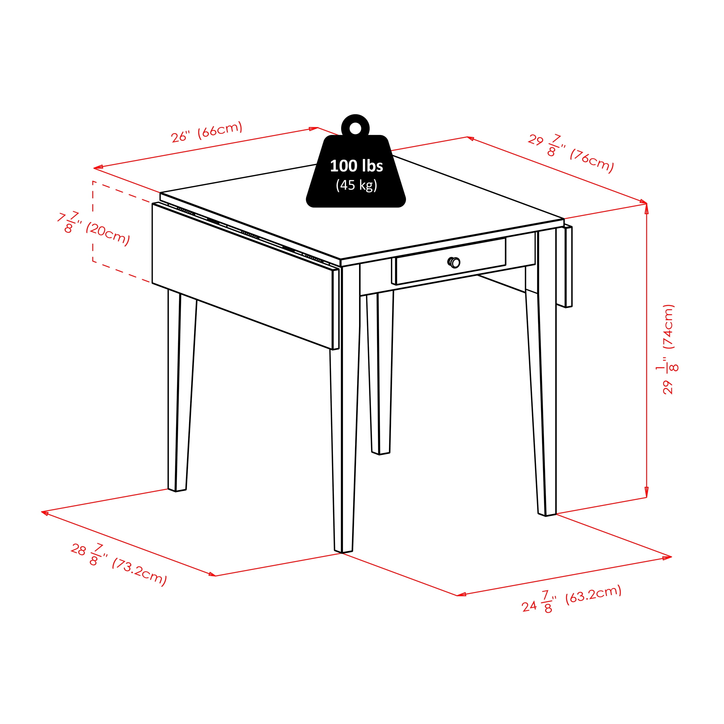 Transitional and versatile, the Winsome Trading Hamilton 3 Piece Drop Leaf Dining Table Set fits any style or space. This set includes a double drop leaf table and two ladder back chairs. The chairs are graced with high backrests that feature four slats each. The heart of this set is its handsome table with two drop leaves. It seats two when the leaves are folded and up to four when they’re extended. The dining table even features a drawer for extra storage. Nice! Sturdy solid wood construction ensures years of beautiful use. The walnut finish provides a good match to contemporary or classic homes. Product Dimensions: Table fully extended: 41.73W x 30.55D x 29.13H in. Drop leaf (2): 7.88W x 30.55D in. 1 leaf dropped: 34.76W x 30.55D in. Drawer: 7.80W x 8.98D x 2.07H in. Chair (2): 16.54W x 16.46D x 17.06H in. Ladder back seat: 16.60W x 16.69H in.