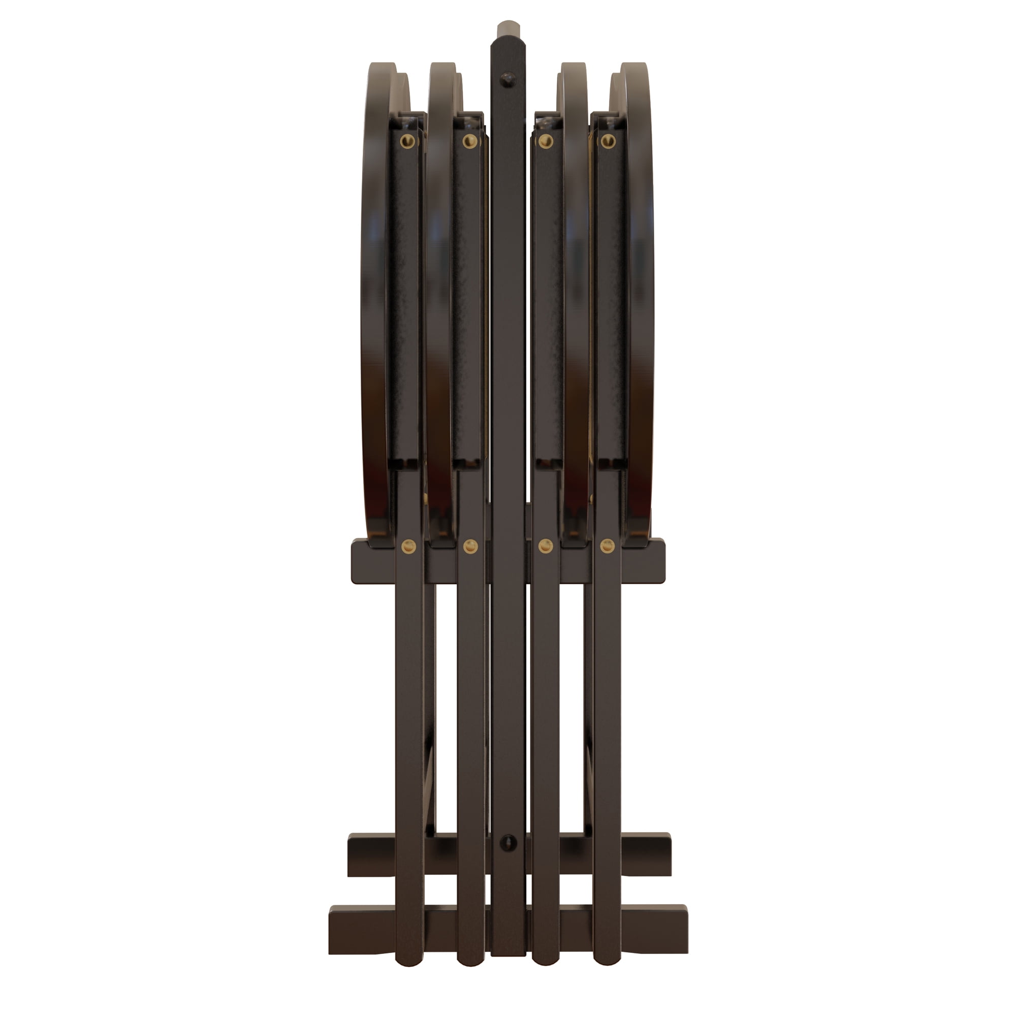 Make entertaining simple and easy with the Winsome Wood Skippy 5pc Snack Table set. Four generously proportioned tables for a casual meal at home in the family room or on the patio, or for working on your laptop. Quick to set up, and fold away easily to store on their own matching portable stand. Great for daily use and compact enough to store in the closet. Made with combination of solid and composite wood in a rich espresso finish allowing these to look neat and attractive. Conveniently packed and shipped in 1 box with the hardware necessary for assembling the stand.