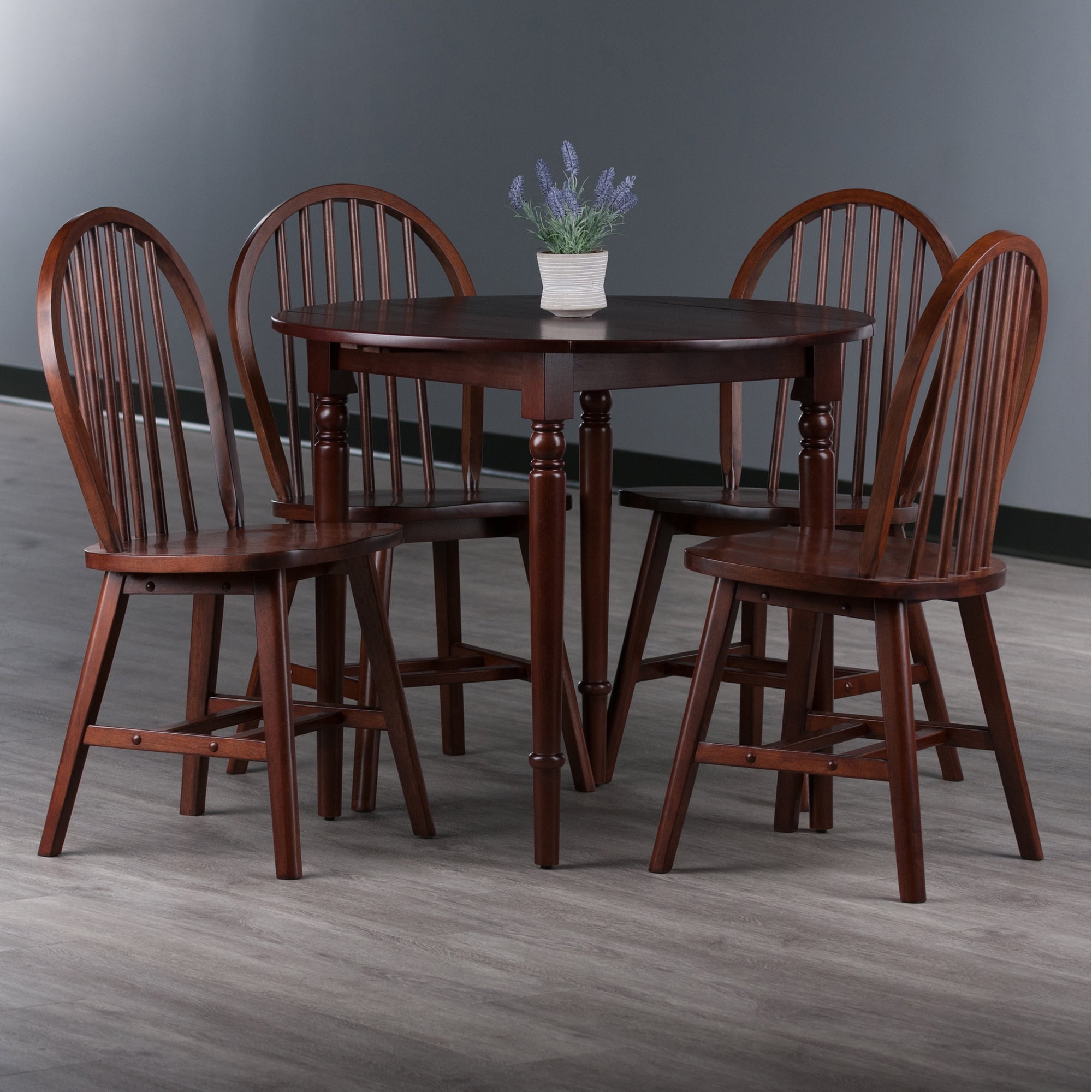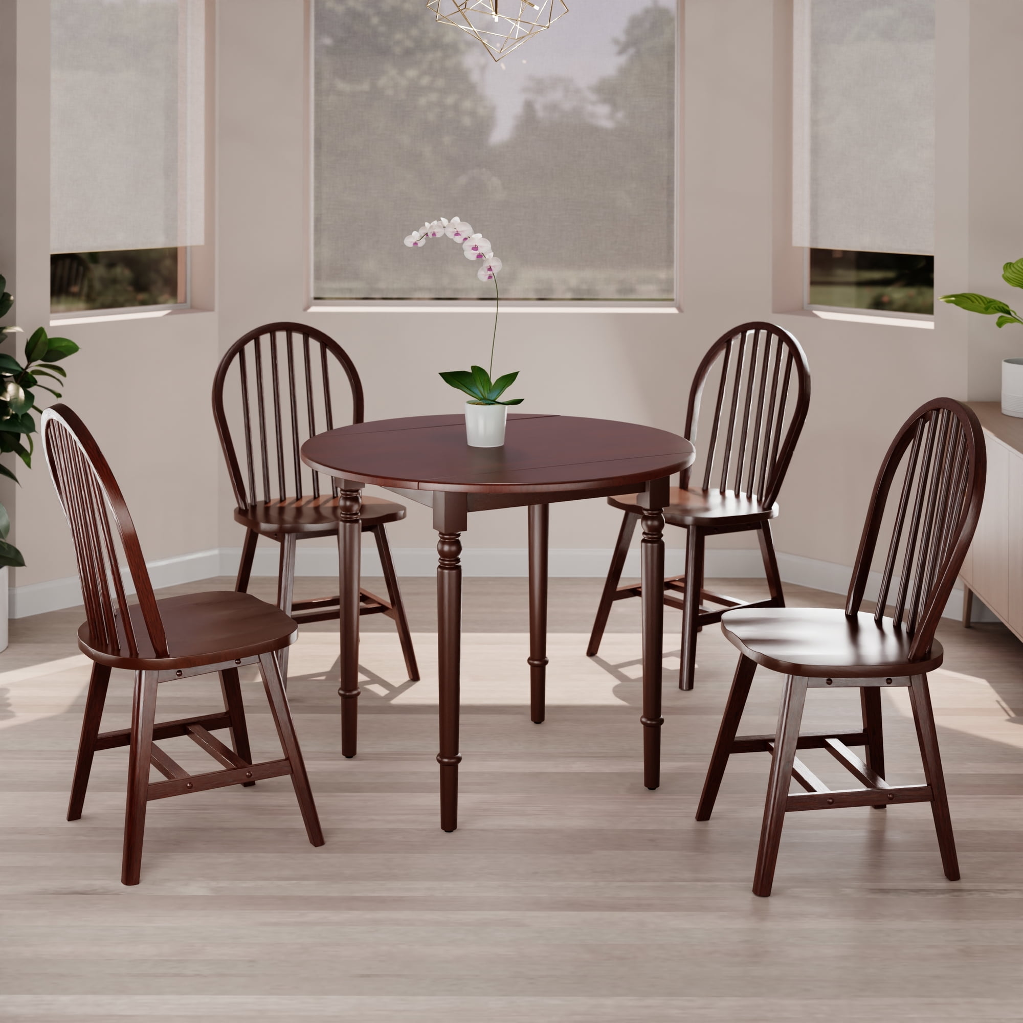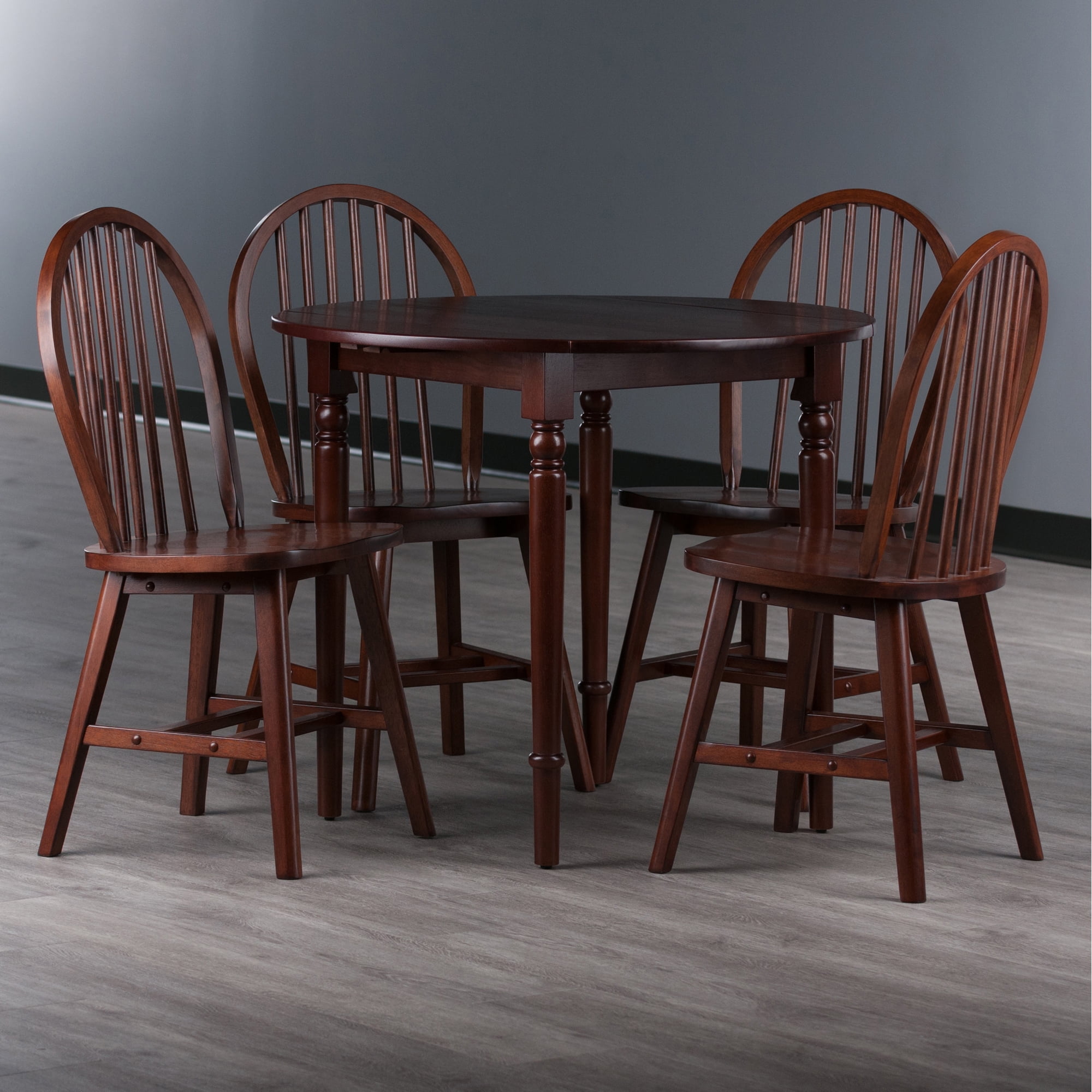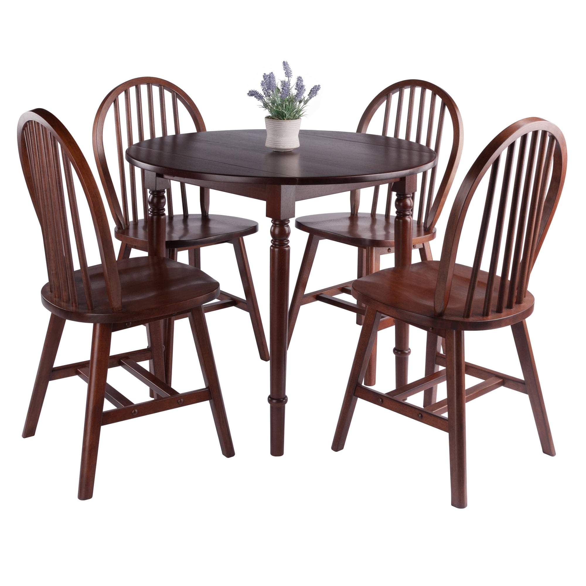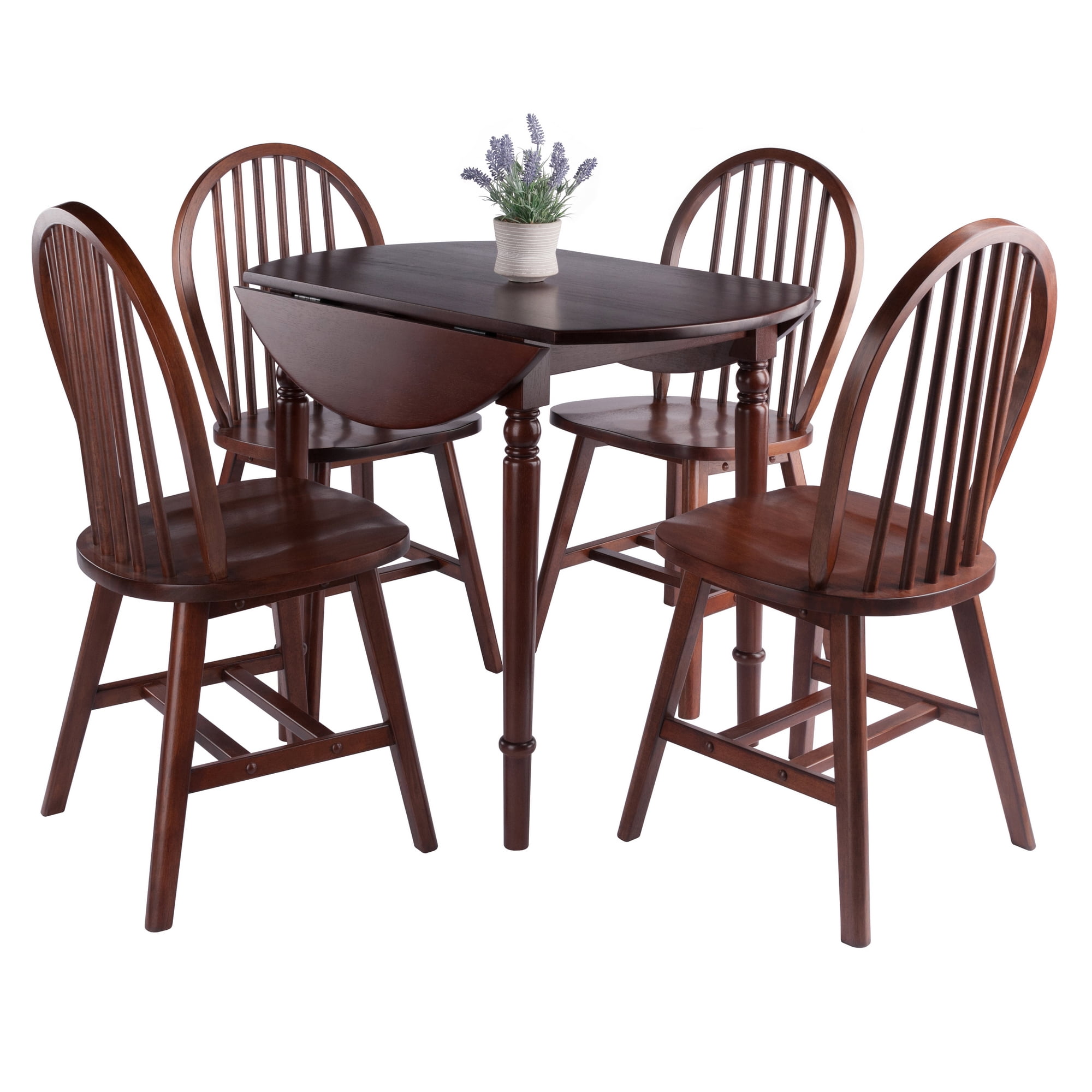 Winsome Sorella 5-Pc Set, Drop Leaf Table with Windsor Chairs, Walnut Finish
