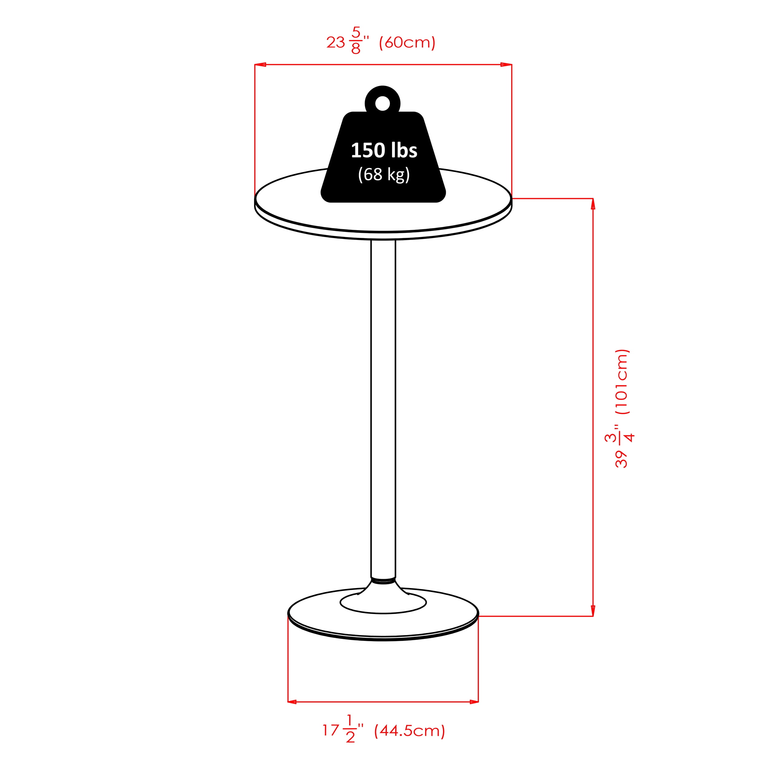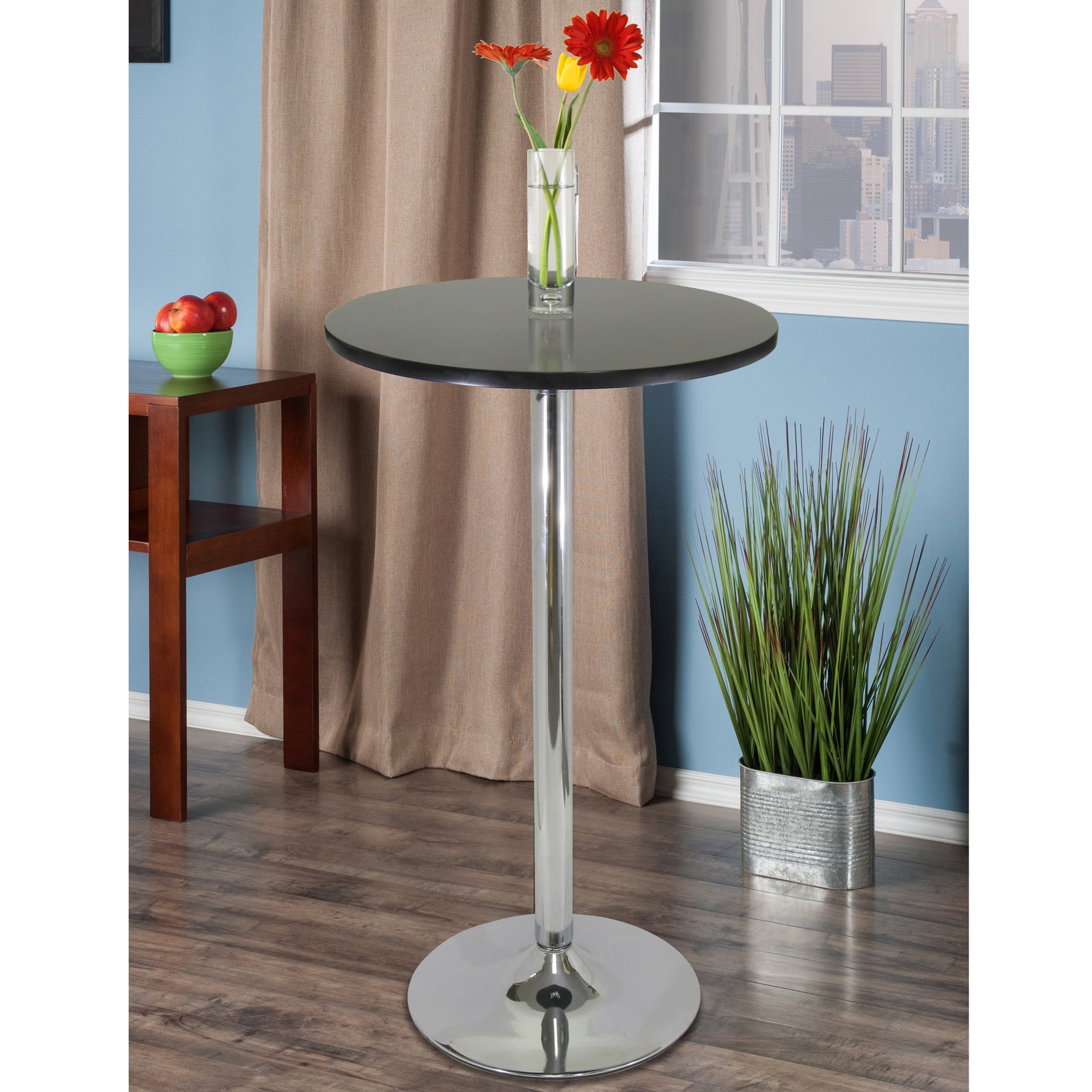 Winsome Spectrum Round Pub Table, Black Sold as 1 Each Black color smooth MDF top and chrome base, offering a modern and contemporary style Dimensions: 39.76″H x 23.66″L x 23.66″D, suitable for various applications including commercial, restaurant, outdoor, patio, and residential use Assembly required for easy setup Round shape enhances the aesthetic appeal and functionality