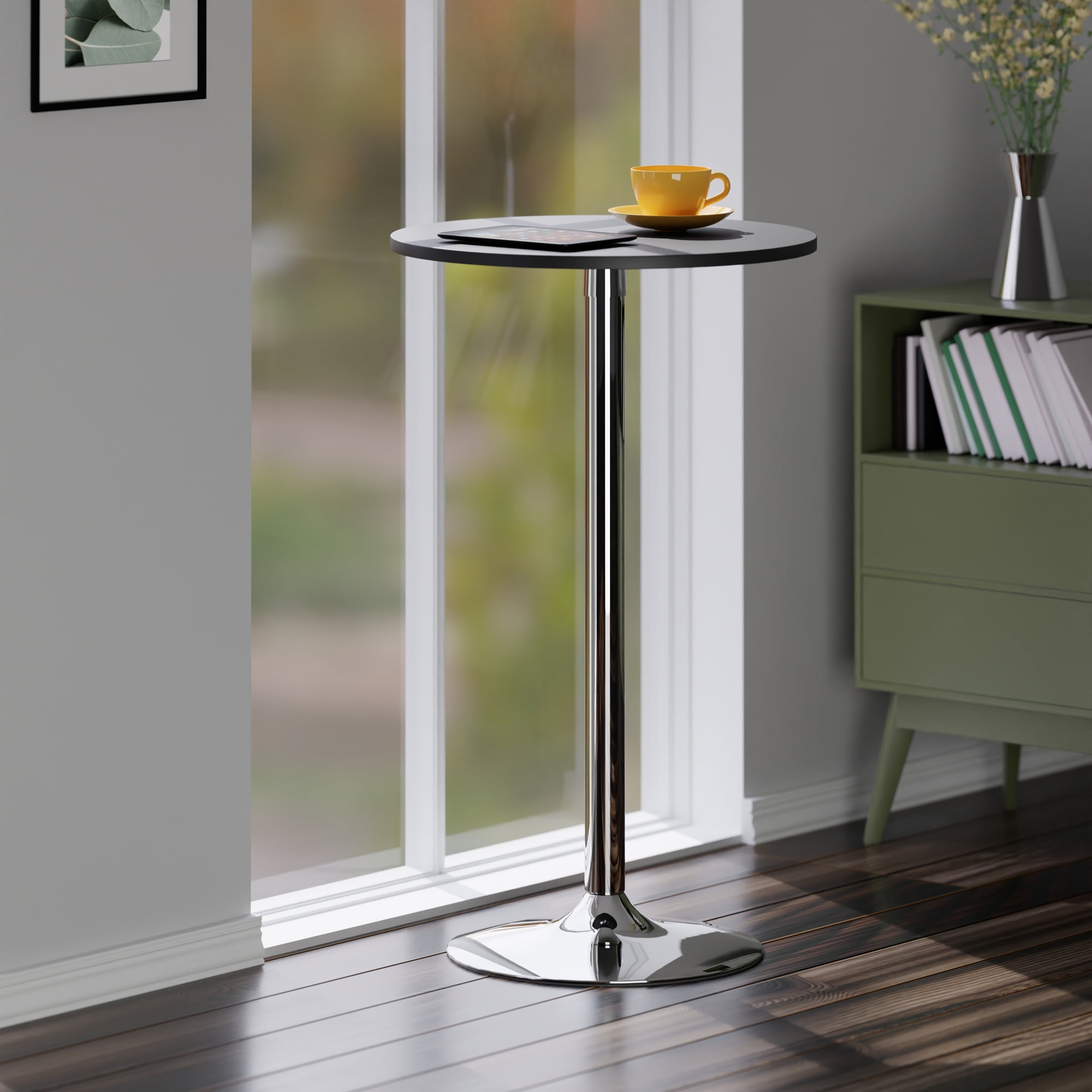 Spectrum Round Pub Table features 24″ Black Top and Chrome Base. The laminate top adds to the timeless look to the table and chrome metal accent based. Sleek and stylish, it is great for social gathers and light dining or extra table. Features: Material: Composite wood, chrome metal, wood veneer top, MDF Finish: Black Style: Contemporary Style: Transitional Specifications: Product Dimensions: 39.76″H x 23.62″W x 23.62″D Product Weight: 17.5 lbs Product Dimensions: (Base has a diameter of) 17.52″