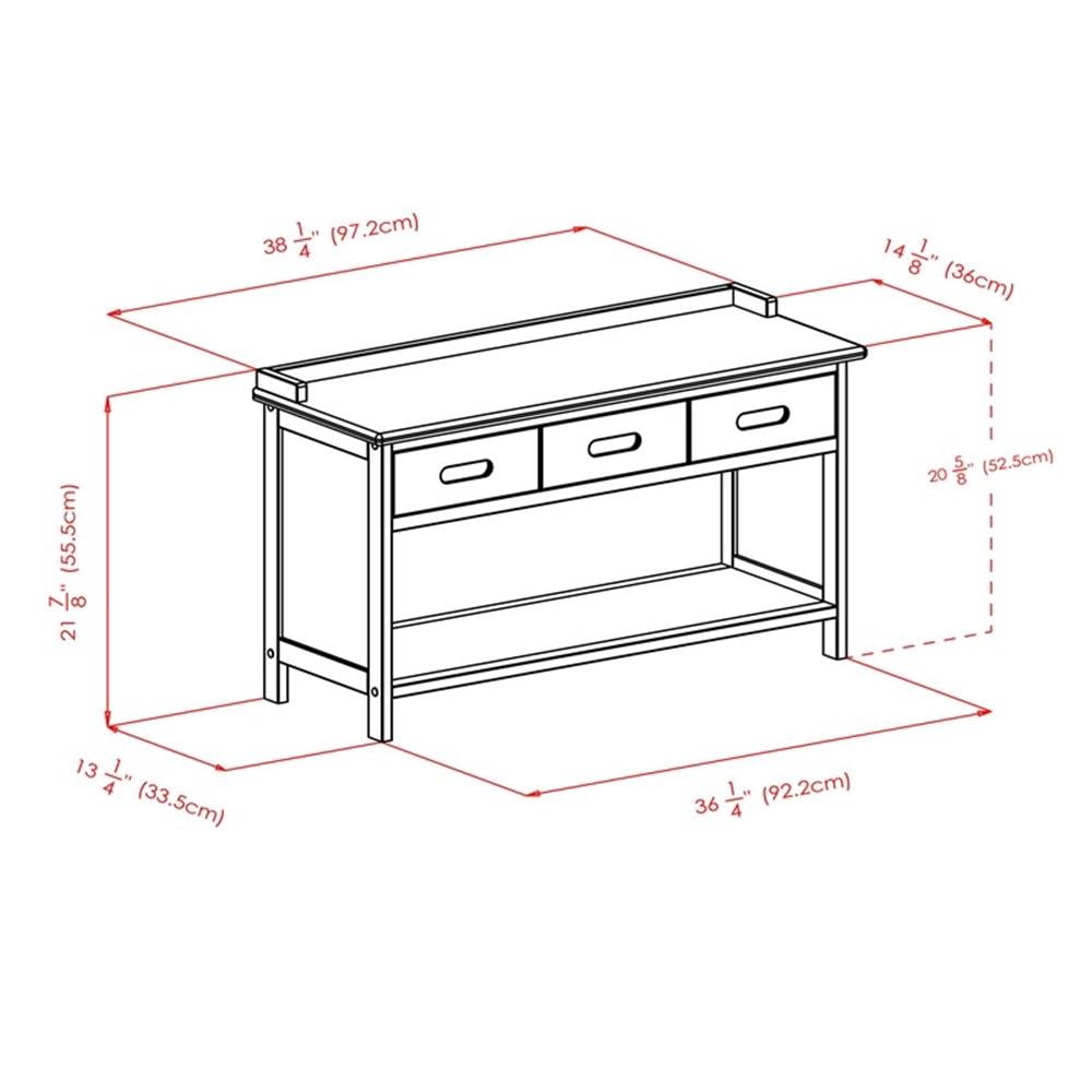 Walnut and espresso Adriana storage bench with cushion seat Walnut and espresso finished Seat height is 20.67 inches high Recommended for indoor use Measures 21.75 inches high by 14 inches wide by 38.25 inches deep