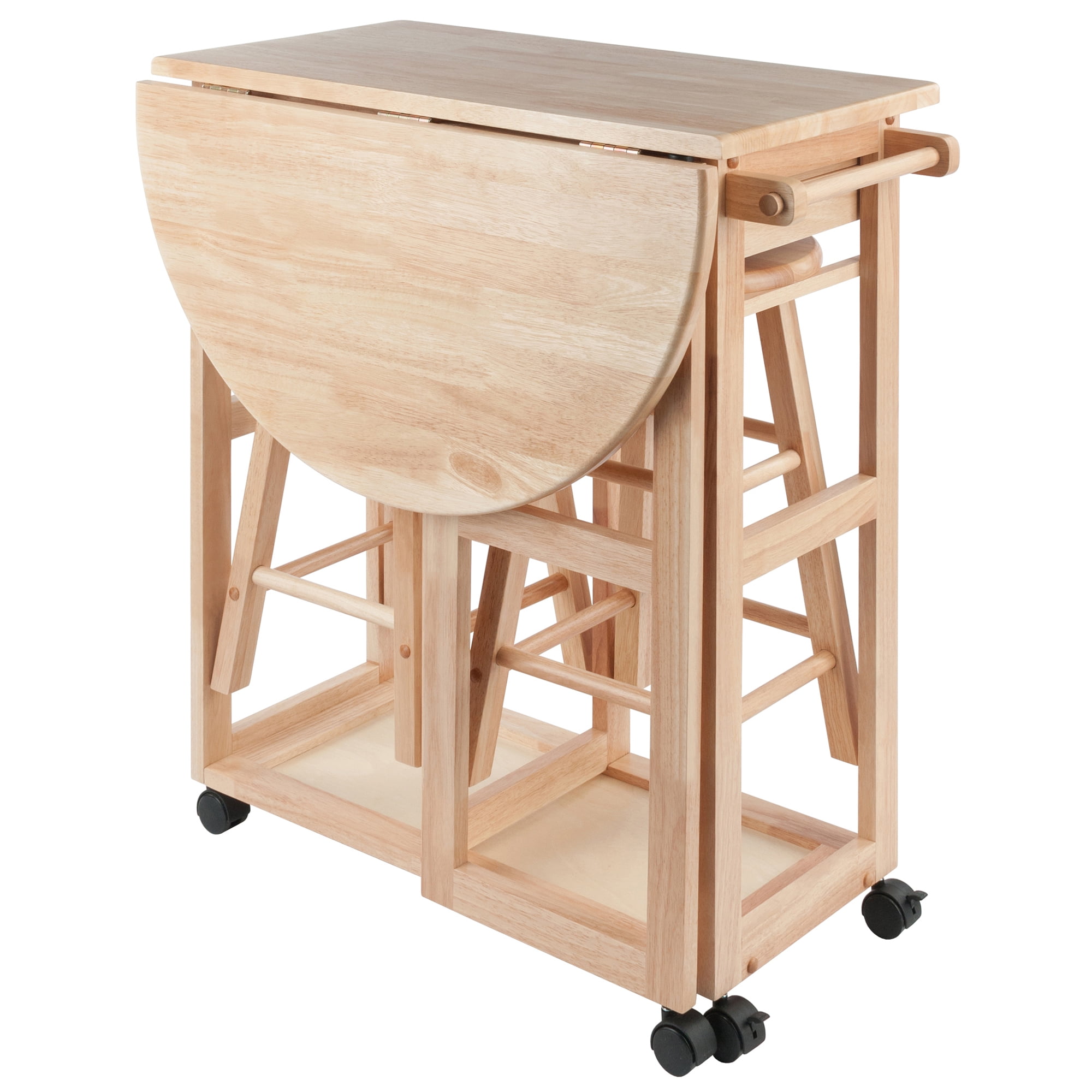 Winsome Wood Burnett 3-Pc Space Saver Set, 2 Tuck – away Stools, Natural Finish