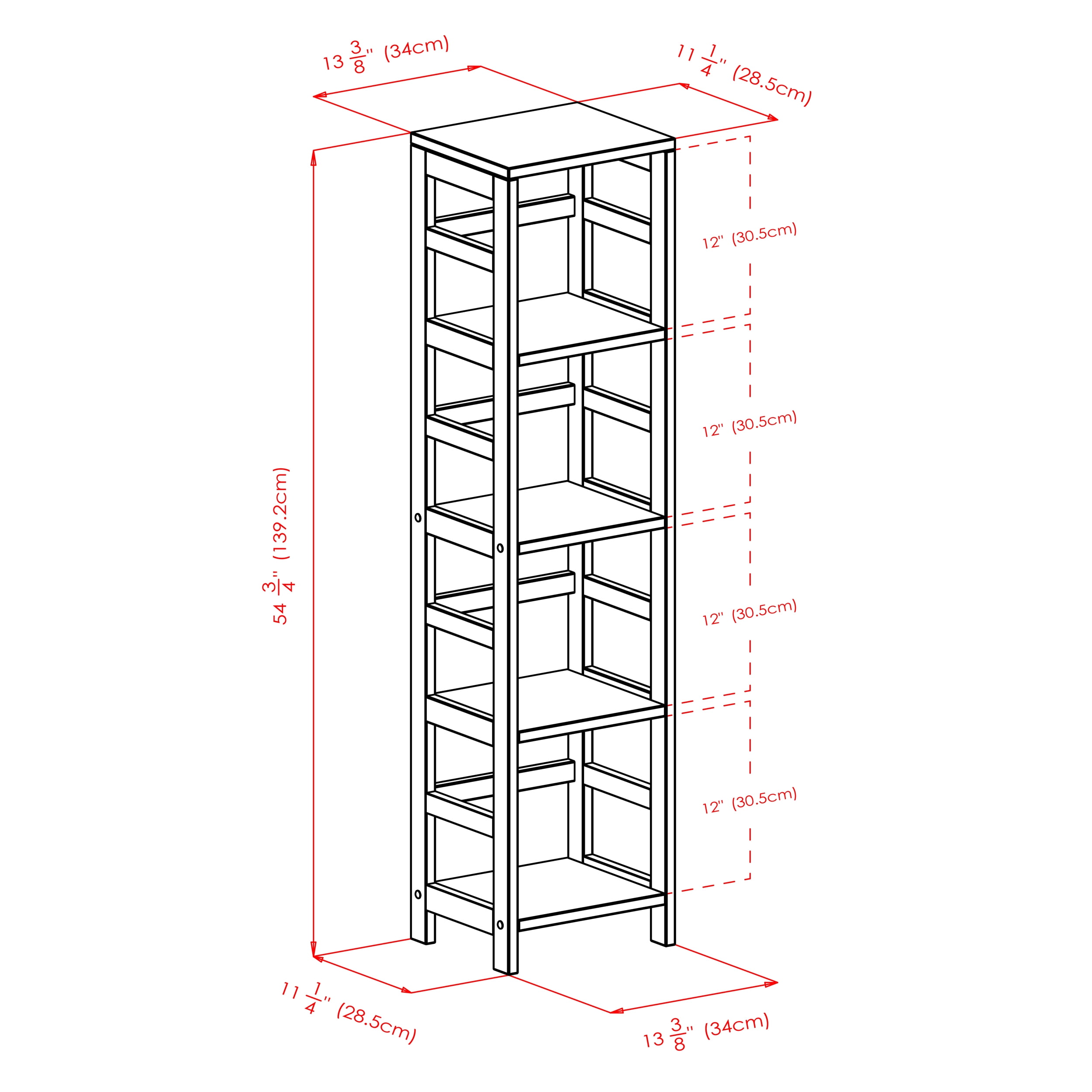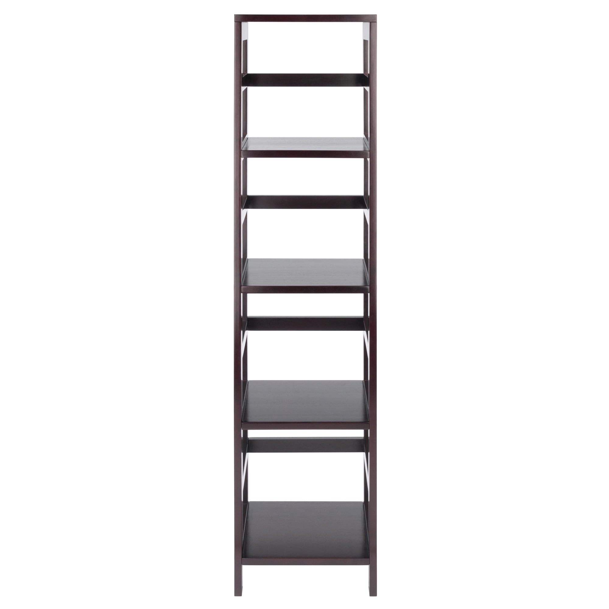 Winsome Wood Capri 5-PC Set, Narrow Shelf, Espresso Finish & 4 Foldable Beige Fabric Baskets: Transitional style Capri collection Shelving unit; 4 fabric baskets Ships in 2 boxes Box 1, item #92514 4-Section, narrow storage shelf Assembled dimensions: 13.39″W x 11.22″D x 54.80″H Shelves: 11.81″W x 11.14″D Clearance between shelves: 12.01″H Static weight capacity: 20lbs per shelf Constructed of solid wood Item weight: 24.40 Box dimensions: 57″L x 12.50″W x 4.25″H Shipping weight: 28.25lbs Box 2, item #82411 Set of 4 foldable baskets Basket dimensions: 10.06″W x 10.97″D x 9″H Beige fabric; non-woven polypropylene Static weight capacity: 15lbs Box dimensions: 11.80″L x 10.75″W x 3.75″H Shipping weight: 4lbs Model kit #92841