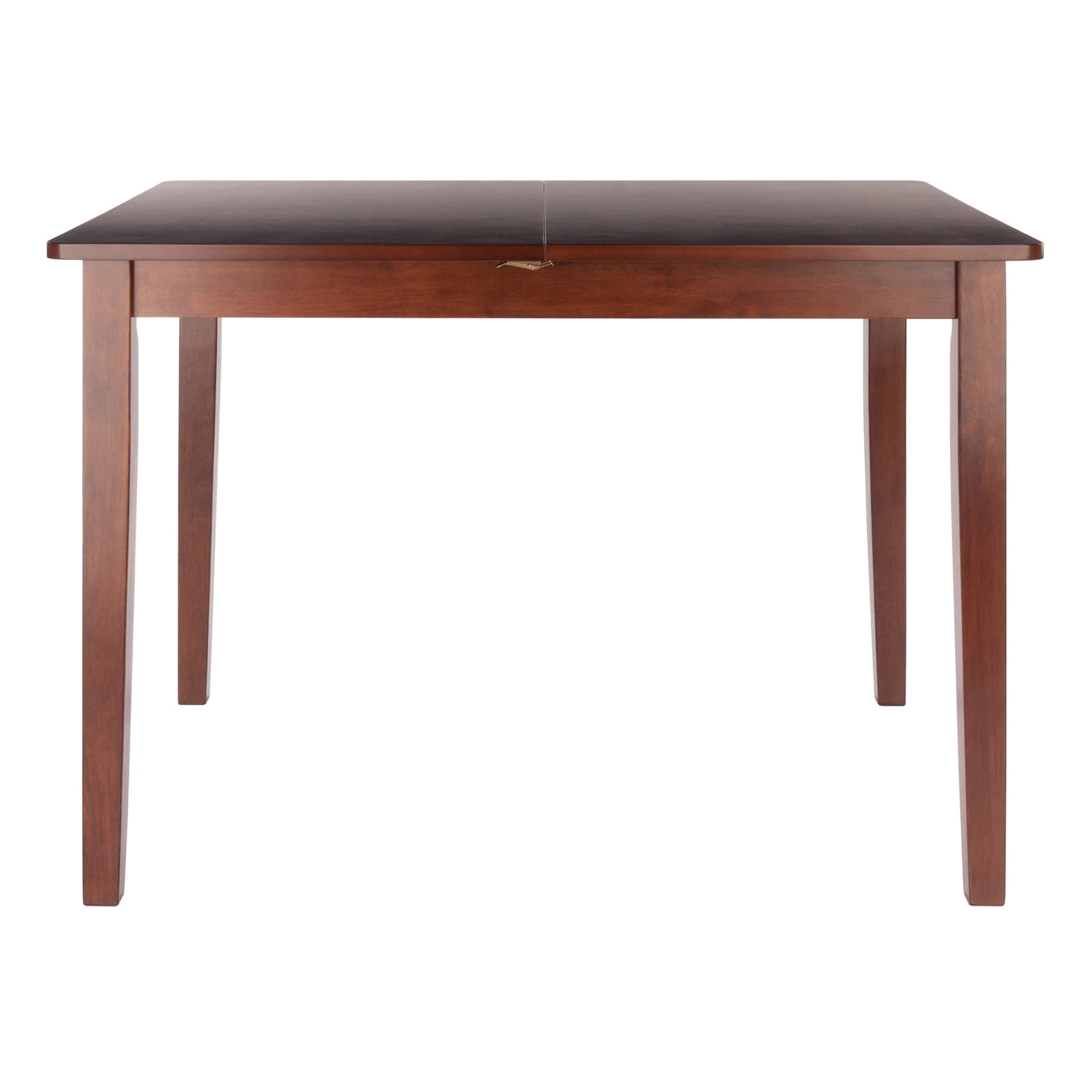Winsome Wood Darren Dining Table, Extension Top, Walnut: Transitional style Darren collection Table with self-storing butterfly leaf Walnut finish Bronze-finished hardware on leaf latches Solid wood construction Overall dimensions: 56.93″W x 31.5″D x 29.29″H Overall dimensions (compact): 42.91″W x 31.5″D x 29.29″H Extension (mid section) dimensions: 14.02″W x 31.5″D Tabletop has beveled edges and smooth rounded corners Ends slide on easy-glide tracks Sturdy square legs Static weight capacity: 150 lbs (evenly distributed) Item weight: 59.4 lbs Ships in 1 box Box dimensions: 49″L x 34.25″W x 4.6″H Shipping weight: 69 lbs Assembly required Model #94457
