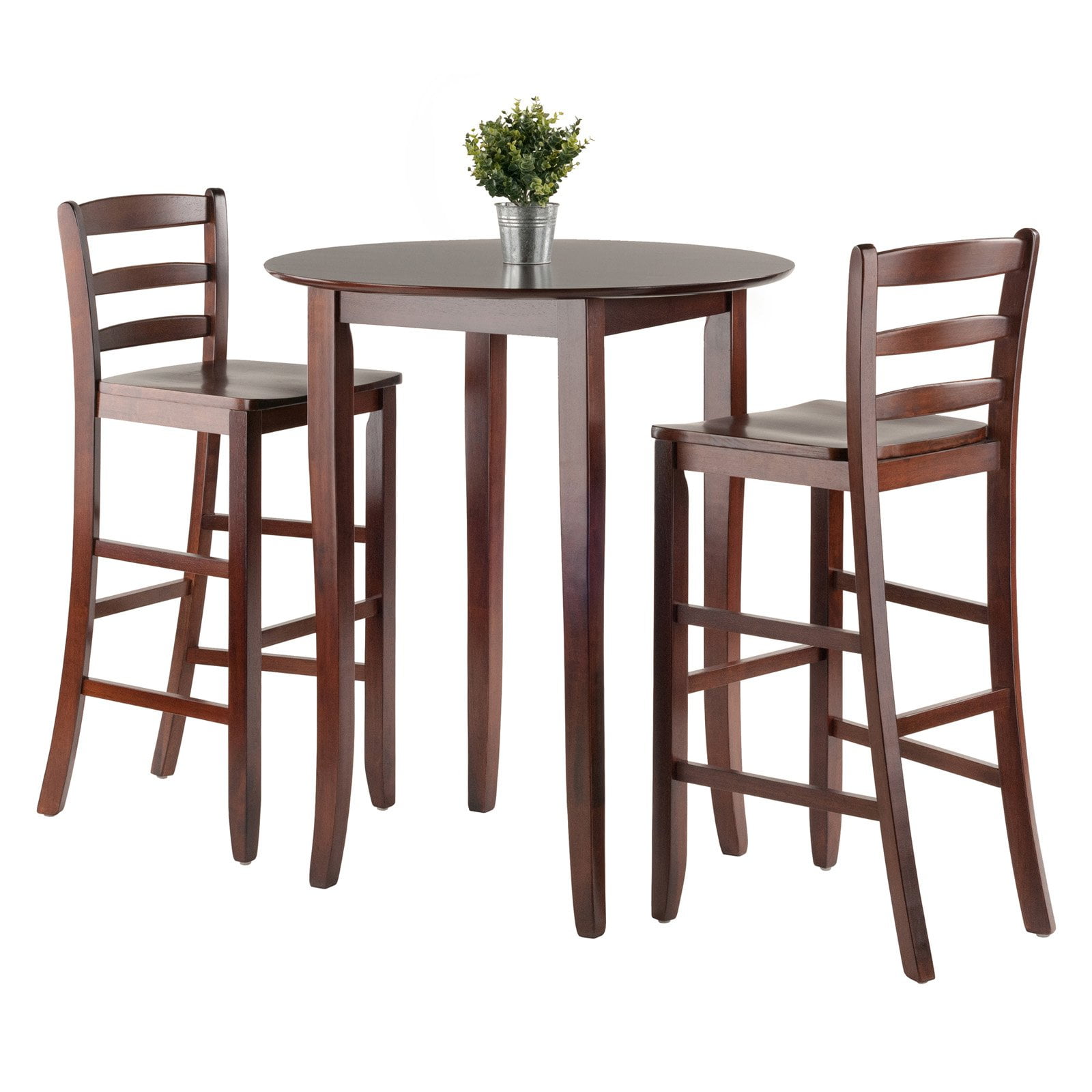 Winsome Wood Fiona 3-Pc Pub Set, High Table & 2 Ladderback Bar Stools, Walnut Finish