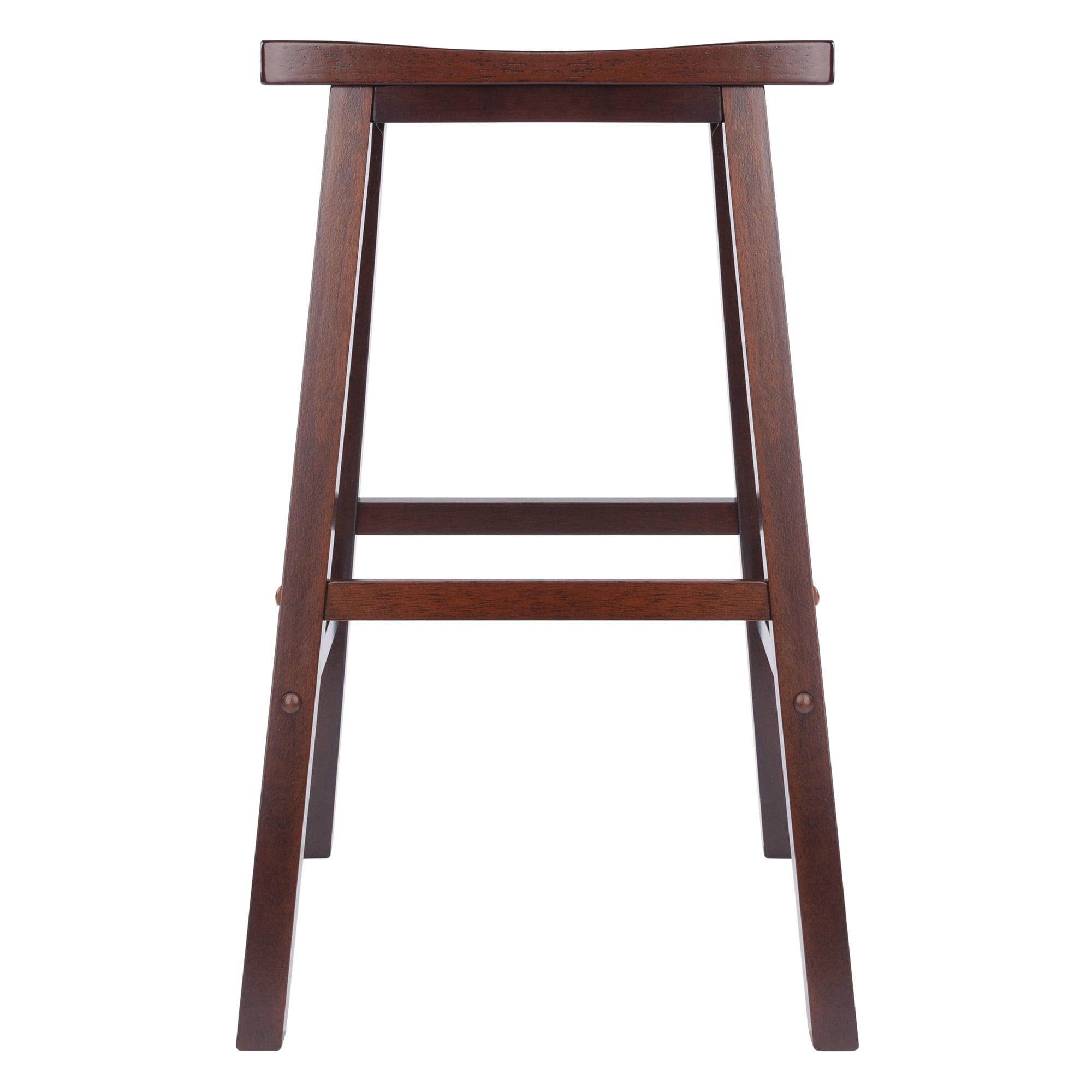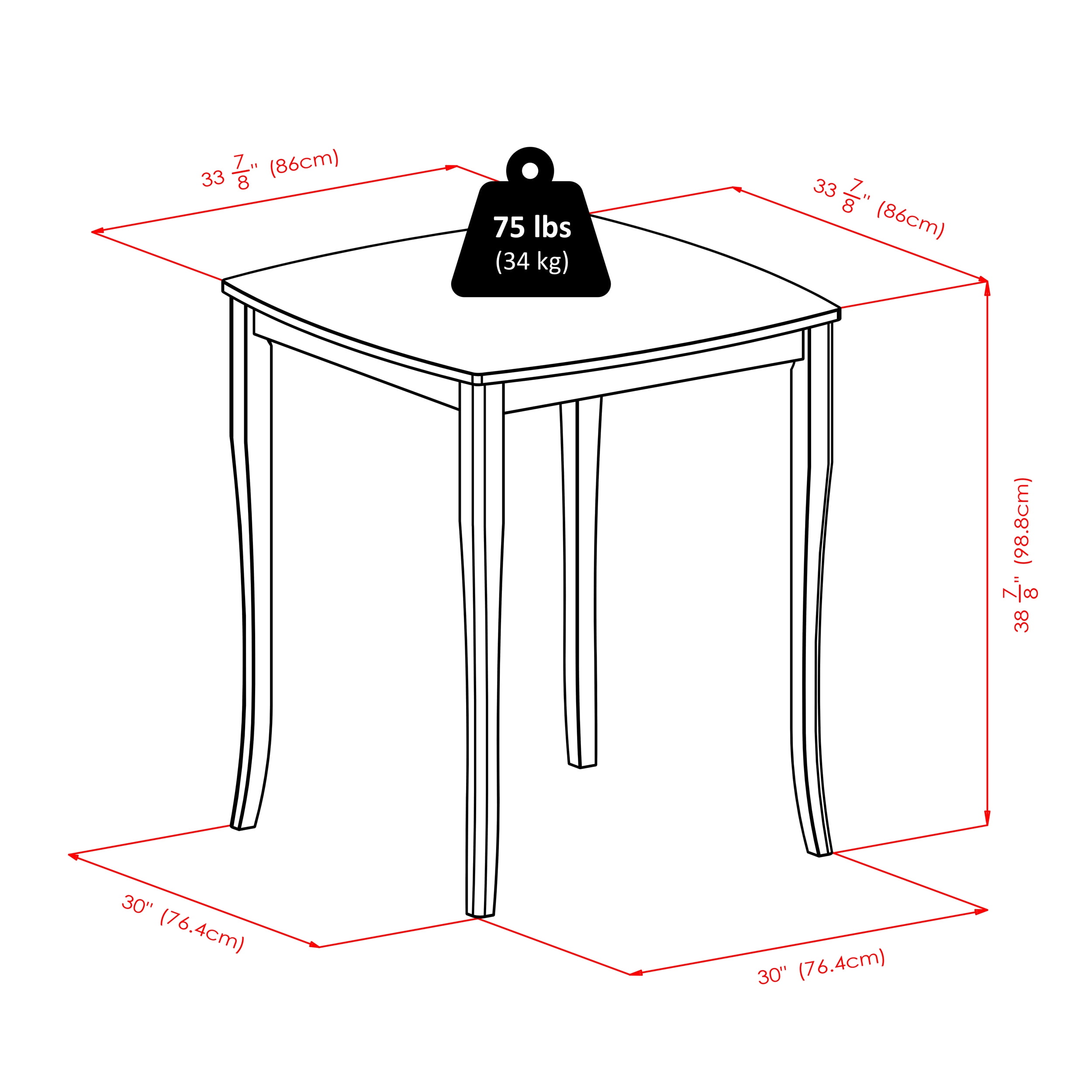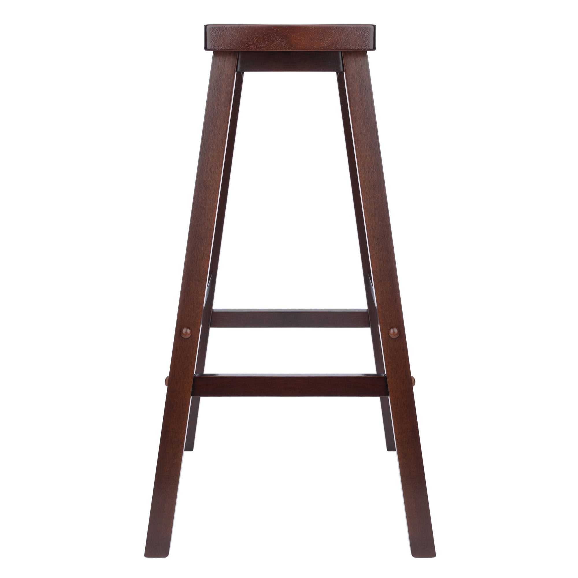 Winsome Wood Inglewood 3-Pc Dining Set, High Table & 2 Saddle Seat Bar Stools, Walnut: • Transitional style • Inglewood collection • Walnut Finish • Constructed of solid wood • Tall square tabletop table with contoured, cabriole legs; two saddle seat bar stools • Ships in 3 boxes • Box 1, item #94733 • Table dimensions: 33.86″W x 33.86″D x 38.9″H • Clearance underneath table top: 35.43″ (measured from apron) • Distance between legs: 25.67” – 27.32” • Item weight: 39.05 lbs • Box dimensions: 40″W x 40″L x 4.6″H • Shipping weight: 47 lbs • Box 2 & 3, item #94089 • Bar height stool with saddle like seat • Overall dimensions: 17.91”W x 15.79”D x 28.86”H • Saddle seat dimensions: 17.48”W x 8.9”D • Foot print: 17.9”W x 15.8”D • Item weight: 11.15 lbs • Static weight limit: 220 • Single stool packed per box • Box dimensions: 13.10”W x 29.75”L x 3.25”H • Shipping weight: 12.55 lbs • Assembly required • Model kit #94380