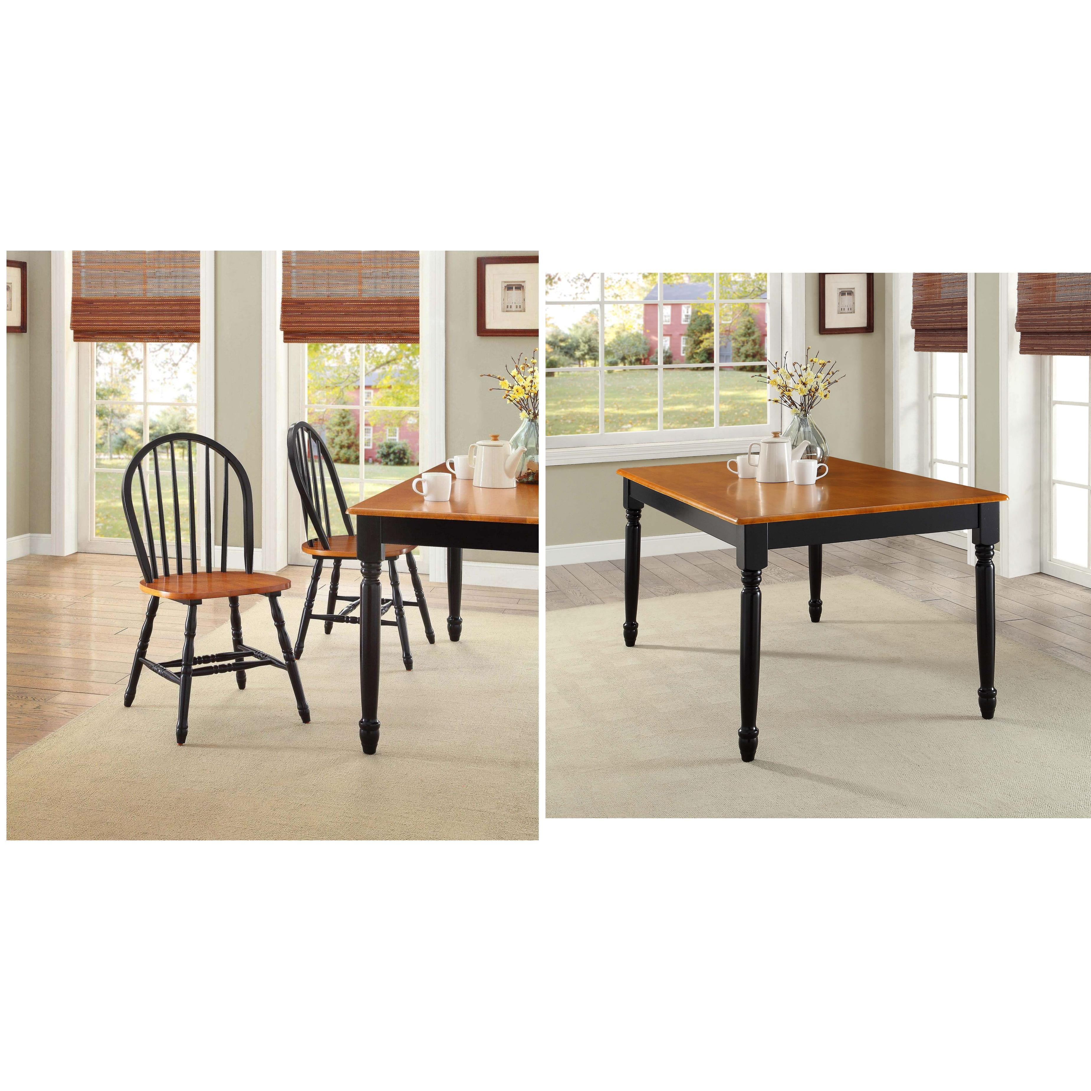 Transitional style Inglewood collection Walnut finish Constructed of sturdy solid wood Oblong tabletop with softly curved profile and contoured, cabriole legs; four classic ladderback chairs Ships in 3 boxes Box 1 item #94148 Table overall dimensions: 47.24″W x 29.53″D x 29.13″H Clearance underneath table top: 25.59″ (measured from apron) Distance between legs: 37.4″ (front/ back), 19.84″ (sides) Item weight: 39 lbs Box dimensions: 32.5″W x 51″L x 4.5″H Shipping weight: 47 lbs Box 2 & 3 item #94232 Chair overall assembled dimensions: 16.6″W x 20.5″D x 34.7″H Seat height: 17.97″ Seat dimensions: 16.54″W x 15.55″D Backrest height: 16.69″ Max seating limit: 220 lbs Item weight: 13.4 lbs per chair Box dimensions: 19.5″W x 37″L x 9″H Shipping weight: 32.95 lbs Assembly is required Replacement parts within 60 days from date of purchase