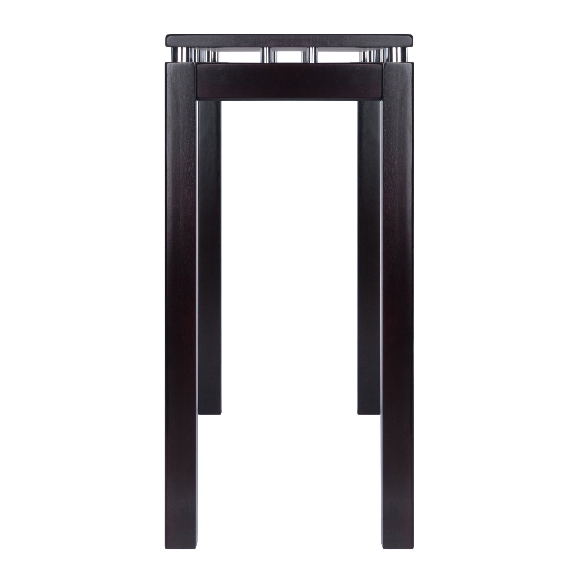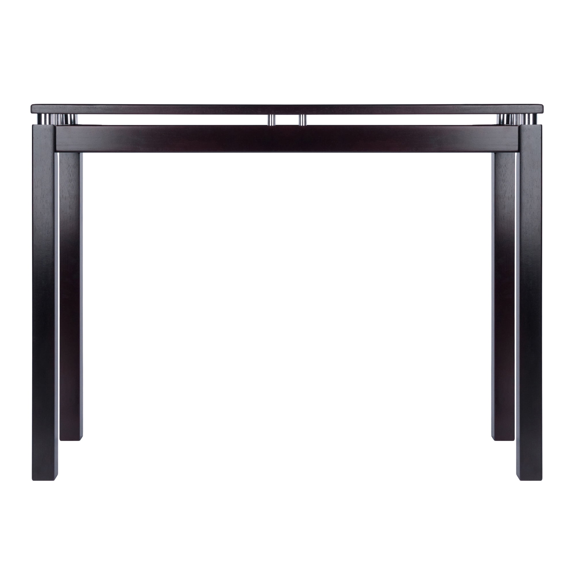 Winsome Wood is featuring the sleek and stylish Linea design that includes the Linea Console Table. Designed to complement most decor, this console table is a sensible choice to add to your living room, hall way or even bed room. It’s rich espresso finish makes it easy to compliment almost any décor all while the chrome accents offer a striking contrast of elegance. The stylish and unique design of this console table makes it an attractive addition to any room, while the broad, flat surface has many practical uses all while still conserving space. Great for displaying family photos, knick-knacks or a flower arrangement. Finish off your area with the additional items from the Winsome Linea collection for a unified space (each sold separately). The Linea collection is crafted from a combination of solid and composite wood. Conveniently packed and shipped in 1 box, that includes the hardware necessary for assembling.