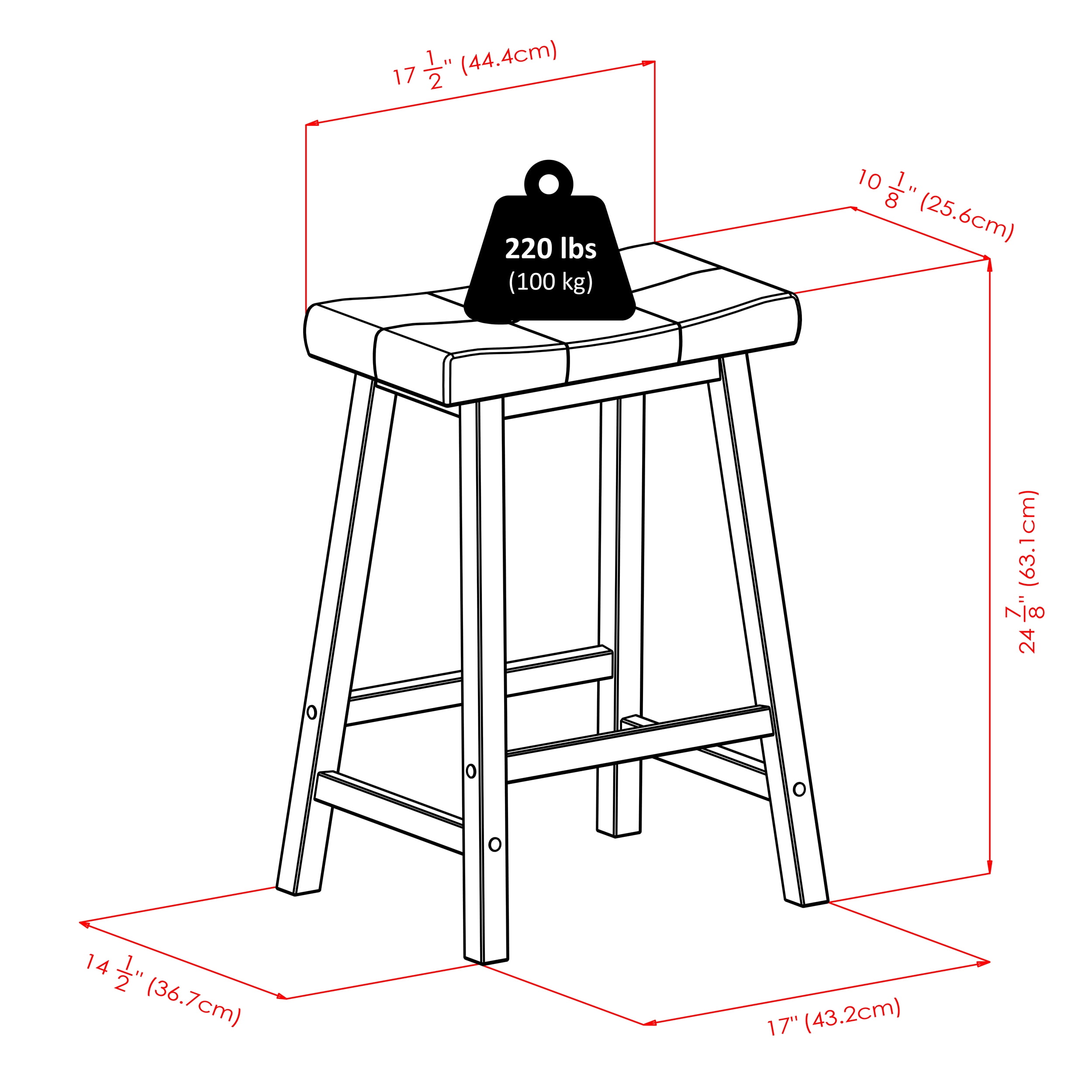 A handsome backdrop to any meal, the Winsome Lynnwood 3 Piece Drop Leaf Small Kitchen Table with 2 Cushion Saddle Seat Stools is a sleek, transitional design with rich color. Both the table and matching saddle stools are expertly crafted from solid hardwood in an antique walnut finish that looks divine in both traditional and modern interiors alike. The table boasts a rectangular top with drop-down leaf for extra space when you need it, and it stands on four sturdy block legs with stabilizing stretchers for terrific balance. The splayed legs of the stools are reinforced with stretchers as well, and their ample seats are topped with black PVC faux leather cushions with sophisticated button tufting. Some light assembly is required.