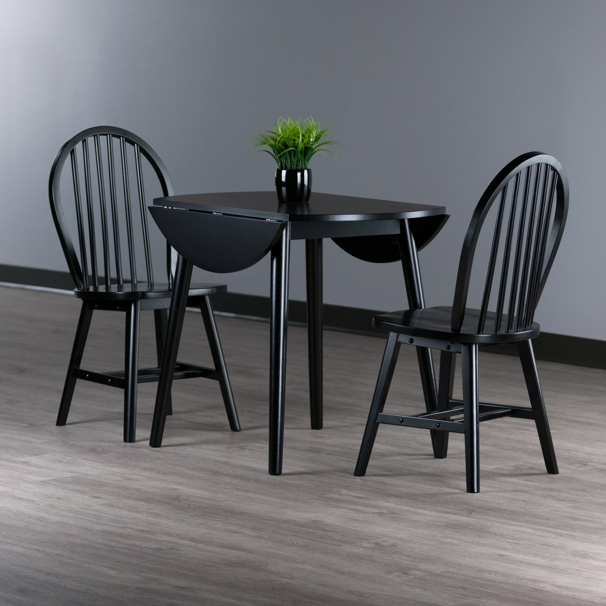 Winsome Wood Moreno 3-Pc Set, Drop Leaf Table with Windsor Chairs, Black Finish