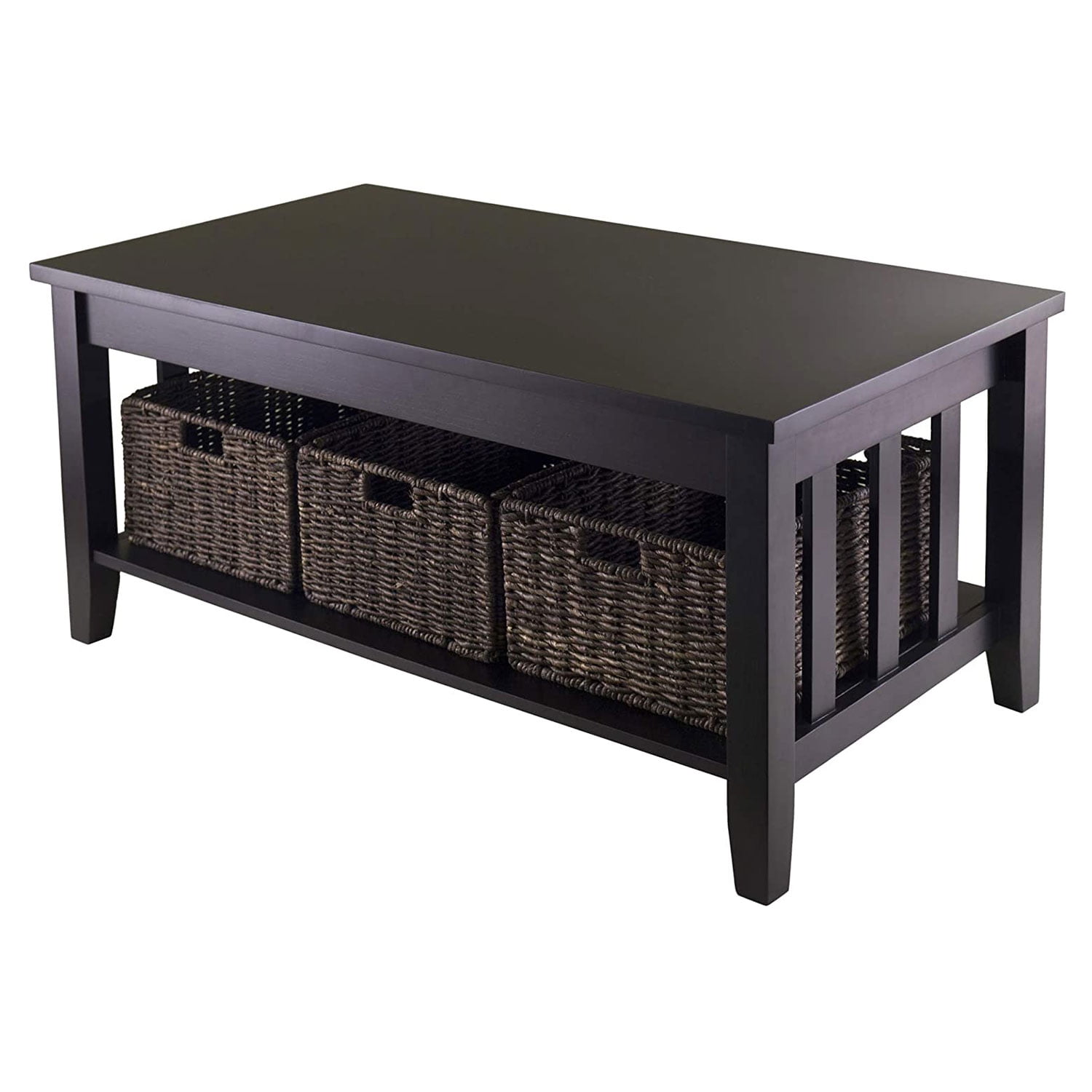 Winsome Wood Morris Coffee Table with 3 Storage Baskets, Espresso Finish