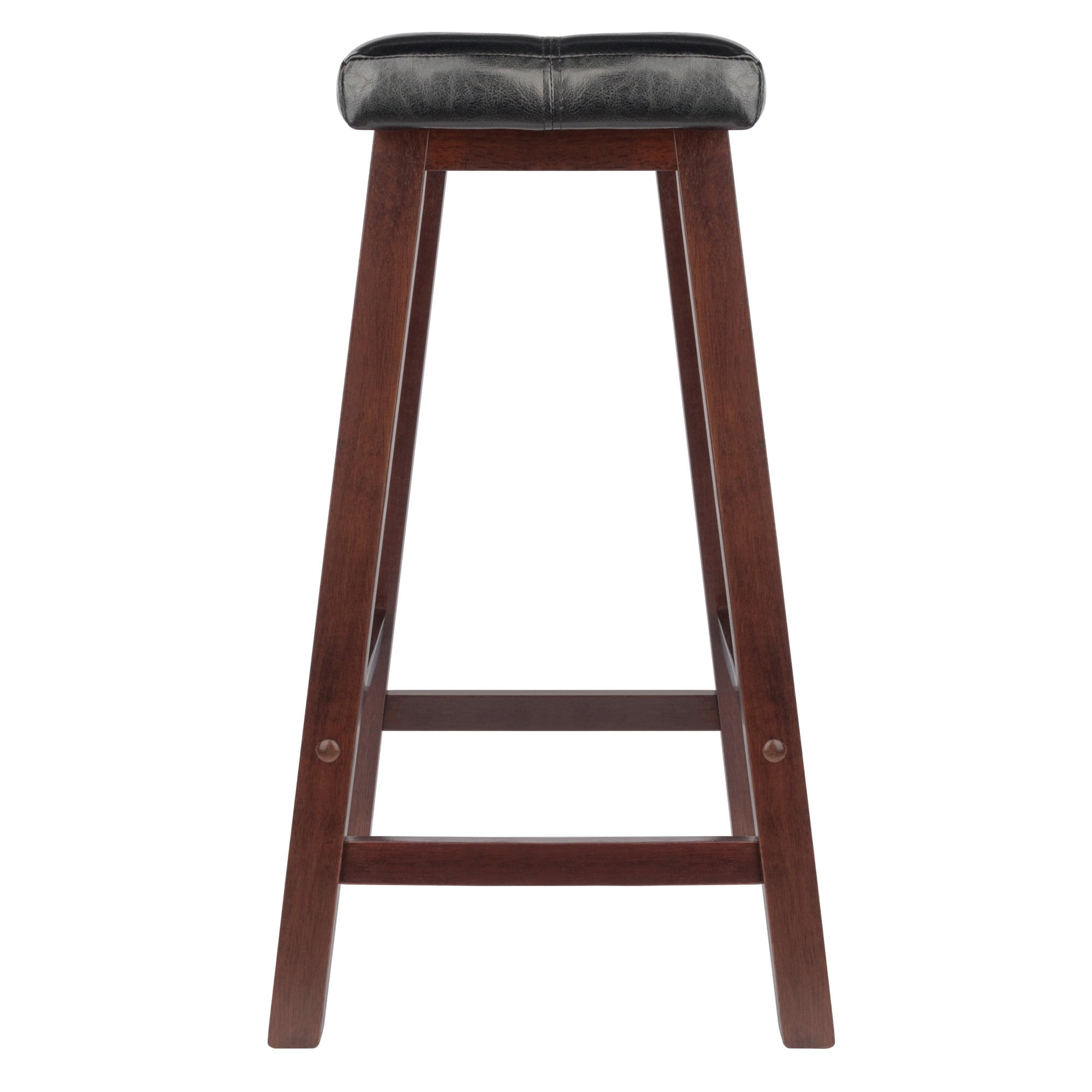 Winsome Wood Orlando 3-Pc Set High Table, 2 Shelves & 4 Cushion Seat Stools, Walnut: • Transitional style • Orlando collection • Tall table with shelves; four cushion seat counter stools • Constructed of solid and composite wood • Assembly is required; hardware included • Ships in 5 boxes • Box 1, item #94034 • Tall, square top table with two open shelves • Walnut finish • Overall assembled dimensions: 33.86”W x 33.86”D x 36.06”H • Top shelf dimensions: 17.17”W x 17.17”W • Bottom shelf dimensions: 19.13”W x 19.13”D • Leg clearance: 34.09”H • Leg foot print: 21.89”W x 21.89”D • Static weight capacity: top 75 lbs, shelves 25 lbs each • Item weight: 51.05 lbs • Constructed of solid and composite wood • Box dimensions: 37”L x 36.5”W x 5.75”H • Shipping weight: 61 lbs • Box 2-4, item #94064 • Counter height stool dimensions: 17.48”W x 14.49”D x 24.84”H • Seat height: 24.84″ • Black faux leather padded seat cover • Seat cover is not removable • Saddle seat dimensions: 17.48″W x 10.08″D • Square legs in walnut finish • Foot print: 17.02″W x 14.49″D • Built in foot rest • Item weight: 8.8 lbs • Static weight limit: 220 lbs • Box dimensions: 13.2″W x 24.8″L x 3.8″H • Shipping weight: 9.9 lbs • Model kit #94506