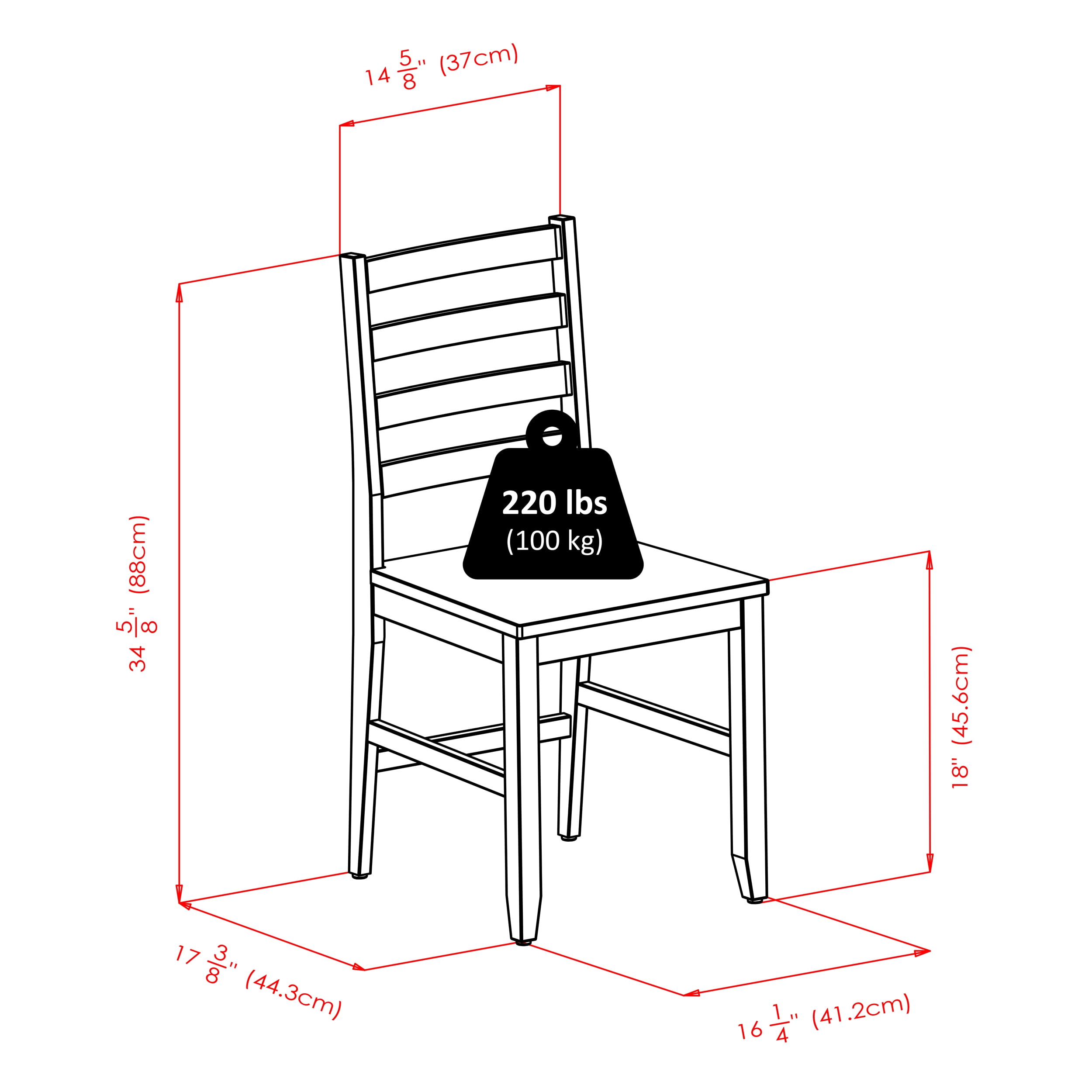 Winsome Wood Taylor 3-Pc Drop Leaf Dining Table with 2 Ladder Back Chairs, Walnut: Transitional style Taylor collection 3-Pc dining set Walnut finish Constructed of solid wood Assembly required Ships in 2 boxes Box 1, item #94145 Drop leaf table with drawer Overall dimensions: 41.73″W x 30.51″D x 29.13″H Top surface (fully extended) dimensions: 41.73″W x 30.51″D Top surface (leaf down) dimensions: 41.73″W x 15.26″D Drawer (interior) dimensions: 21.50″W x 10.83″D x 2.40″H Static weight capacity: top 100 lbs, leaf 75 lbs, drawer 15 lbs Item weight: 44.24 lbs Box dimensions: 44.75″L x 33.50″W x 6.50″H Shipping weight: 54.45 lbs Box 2, item #94236 Set of 2 ladder-back chairs Overall dimensions: 16.54″W x 18/.63″D x 34.65″H Seat dimensions: 16.54″W x 16.46″D Seat height: 17.98″ Static weight capacity: 220 lbs Item weight: 15 lbs Box dimensions: 38″L x 19.40″W x 8.75″H Shipping weight: 35 lbs Kit model #94368