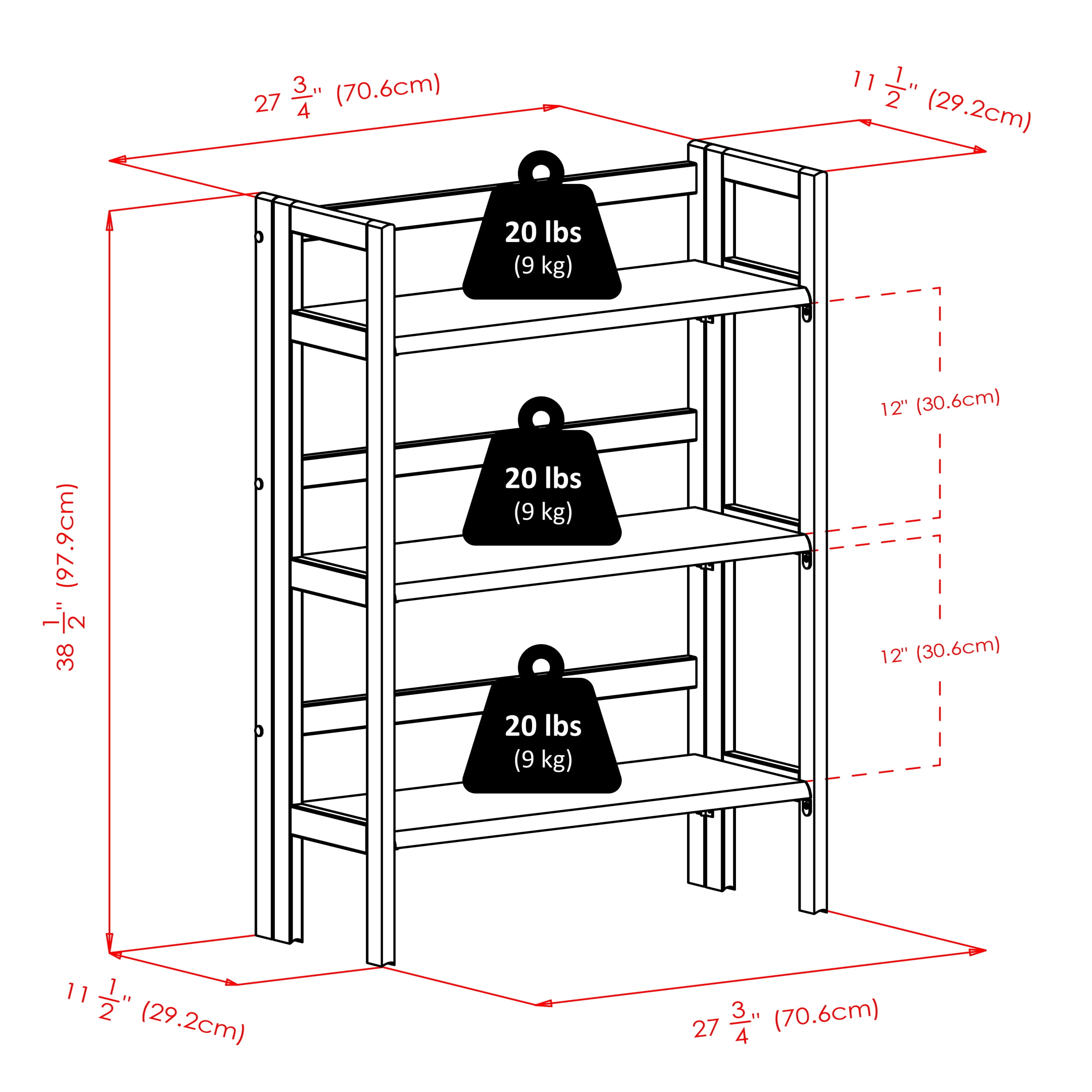 Winsome Wood Terry 3-Tier Foldable Shelf, Black: Transitional style Terry collection 3-Tier foldable storage shelf Black finish Unit dimensions: 27.80”W x 11.50”D x 38.54”H Folded dimensions: 27.80”W x 2.48”D x 42.09”H Shelf dimensions: 26”W x 10.40”D Shelf clearance: 12”H Static weight capacity: 20 lbs per shelf Stackable; max 2 units high Item weight: 27.55 lbs Ships in 1 box Box dimensions: 42”L x 13.50”W x 6”H Shipping weight: 31.05 lbs Model #20896