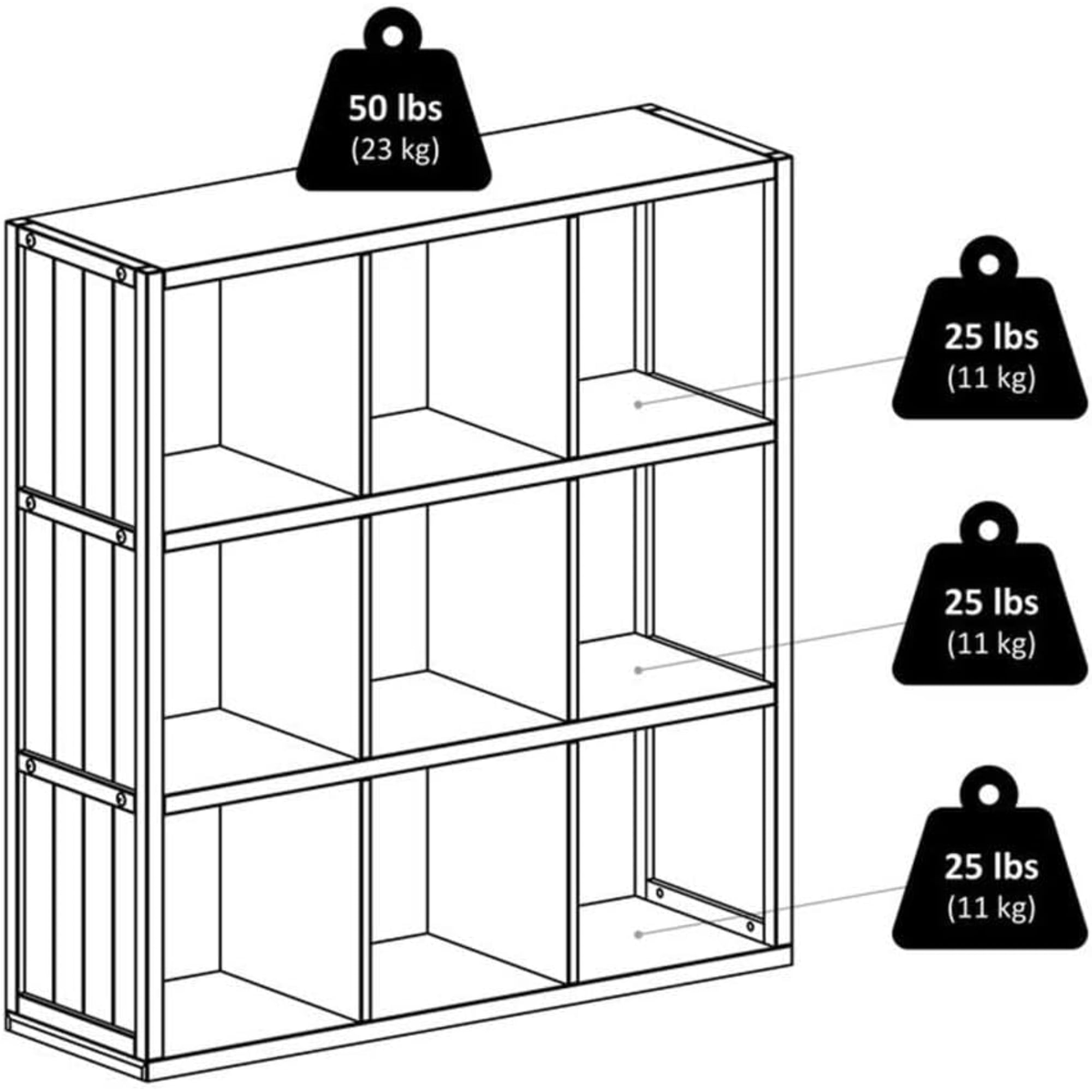 Freestanding 3×3 cabinet with baskets Timothy collection Transitional style Ships in 2 boxes Box 1, item #20040 9-Open storage shelf compartment Constructed of composite wood in black finish Assembled dimensions: 37.76”W x 11.81”D x 40.08”H Individual cube dimensions: 12.05”W x 11.81”D x 11.54”H Static weight capacity: 50lbs top, 25lbs per cubby Item weight: 47lbs Assembly required Box dimensions: 42.60″L x 15″W x 9.50”H Shipping weight: 51.20lbs Box 2, item #38622 Set of 6 foldable baskets Basket dimensions: 10.06″W x 10.97″D x 9″H Made of chocolate fabric; non-woven polypropylene Static weight capacity: 15lbs ea. Box dimensions: 11.90”L x 10.75”W x 5”H Shipping weight: 6.20lbs Model #20642