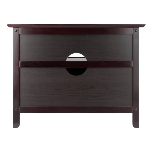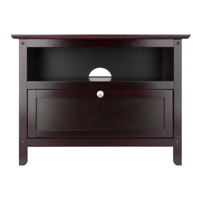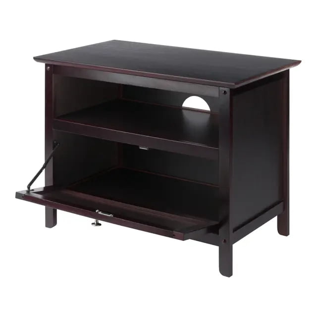 Winsome Wood Zara TV & Media Stand, Espresso Finish: Fits most flat panel TVs up to 32″ up to 50 lbs Contemporary styling is accented with a brushed aluminum knob Constructed with a combination of solid and composite wood 1 pull down door that opens to 2 sections of storage shelf Espresso finish Assembly required 60-day parts warranty Model# 92125 See all TV stands on . Save money. Live better. Televisions sold separately. See all televisions.