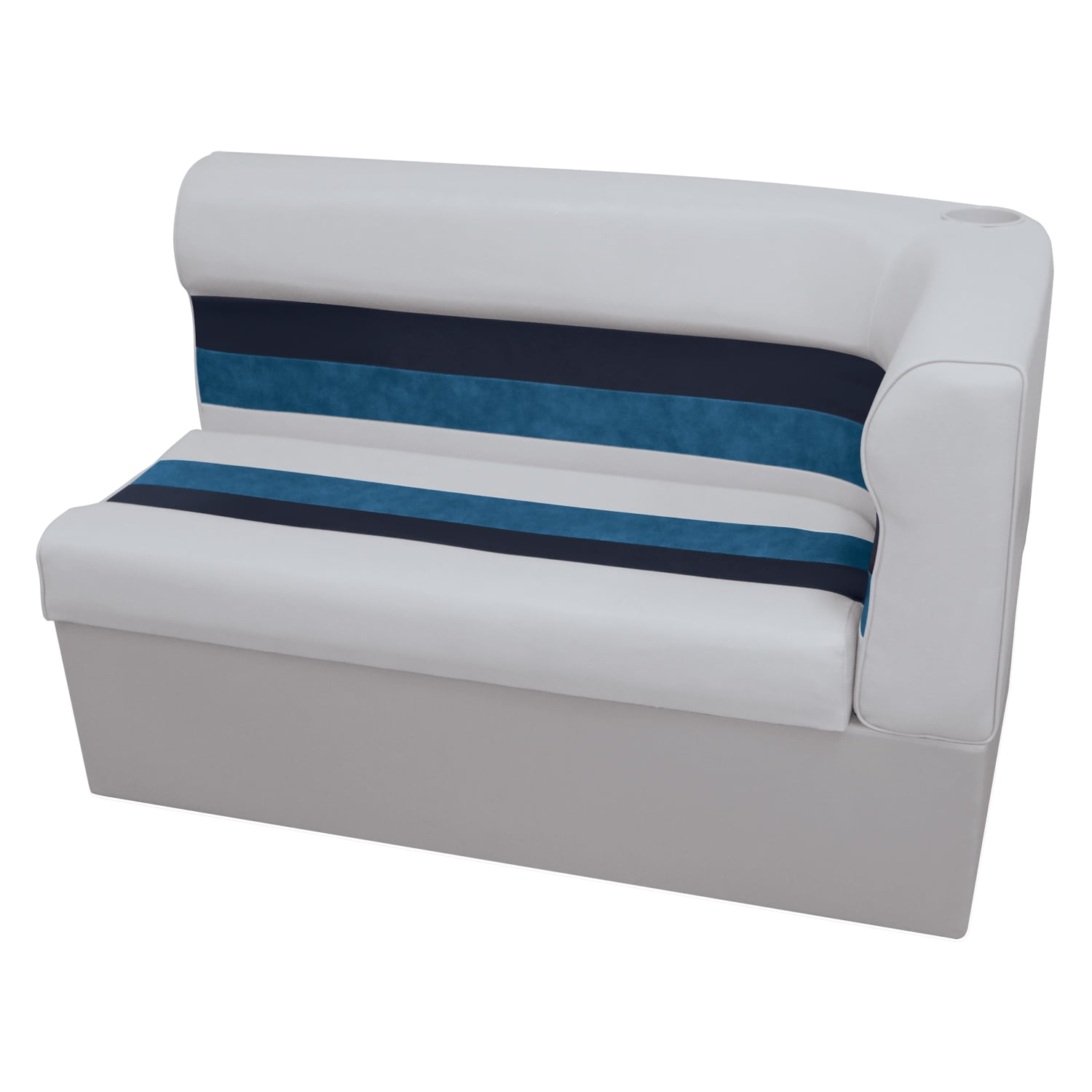 46″ Deluxe Series Pontoon Left Corner Lounge Seat and Backrest Cushion Set Only, Color: Grey/Navy/Blue