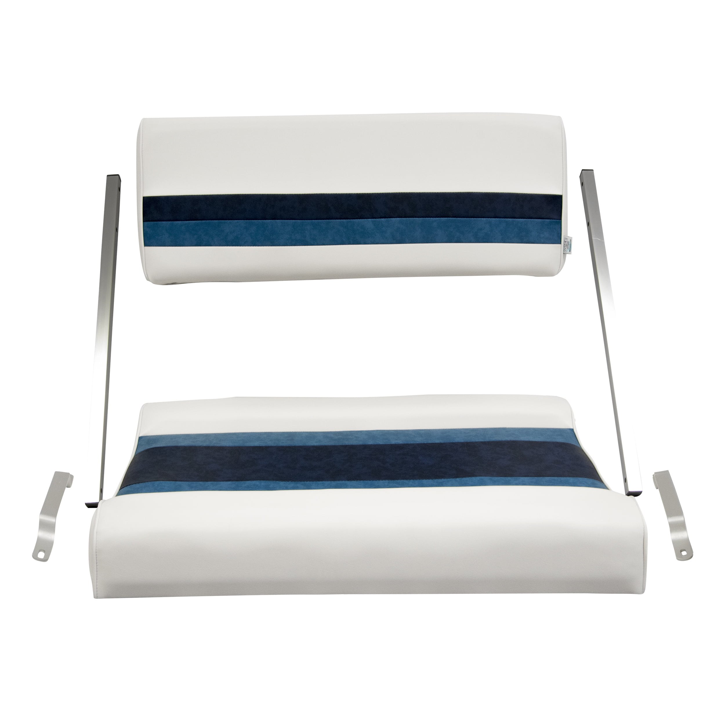 Wise 8WD125FF-1008 Deluxe Series Pontoon Flip Flop Bench Seat and Backrest Cushion Set, White/Navy/Blue