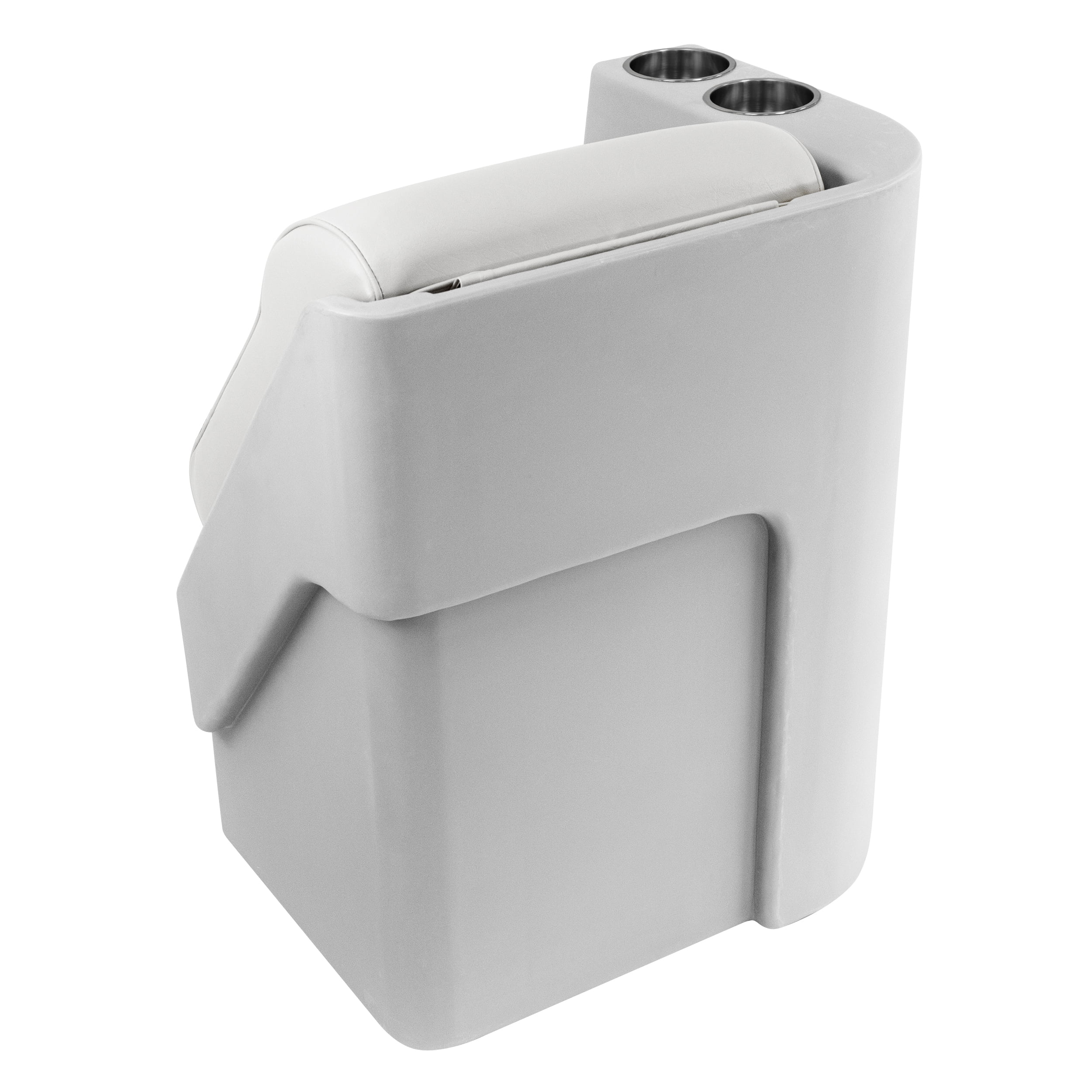 Deluxe Series Pontoon Series Lean Back Recliner Left Radius (Installs to your left from sitting position) features two stainless steel cup holders, detailed styling and enhanced comfort State of the art, high impact rotational molded plastic frame with hinged backrest-door for inside storage access, radius corner Contoured cushions with compression foam padding and heavy duty 28 oz. marine grade vinyl withstands the effects of sun, heat, rain and soiling under normal marine environment conditions Perfect color and style match with other Wise Deluxe Series pontoon seating components • Lean Back Recliner Dimensions – Height: 29.25″, Width: 17″, Depth: 23.75″, Base Footprint: 24″ x 15.5″