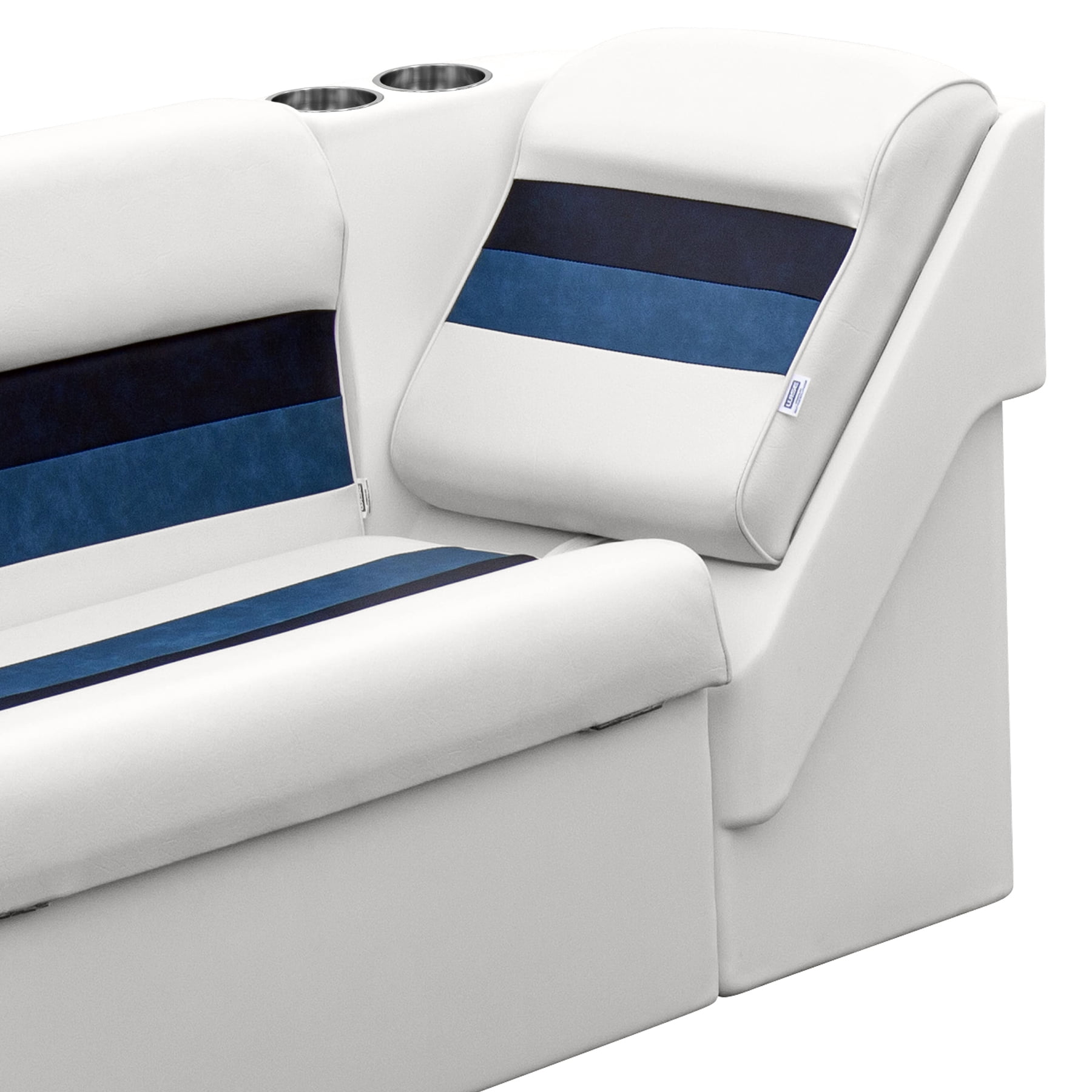 Wise 8WD1305L-1008 Deluxe Series Pontoon Left Radius Lean Back Recliner – White / Navy / Blue