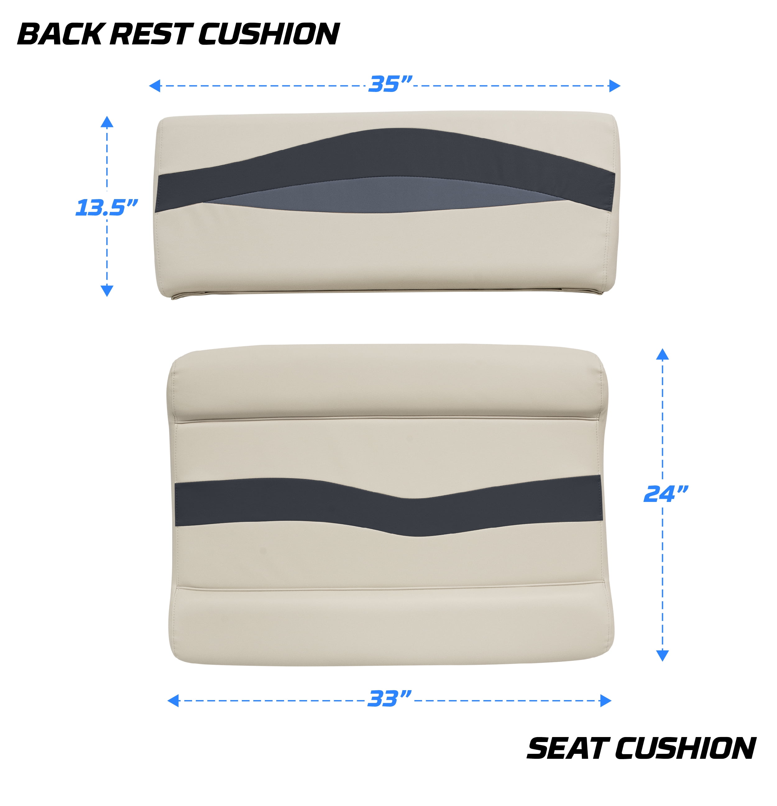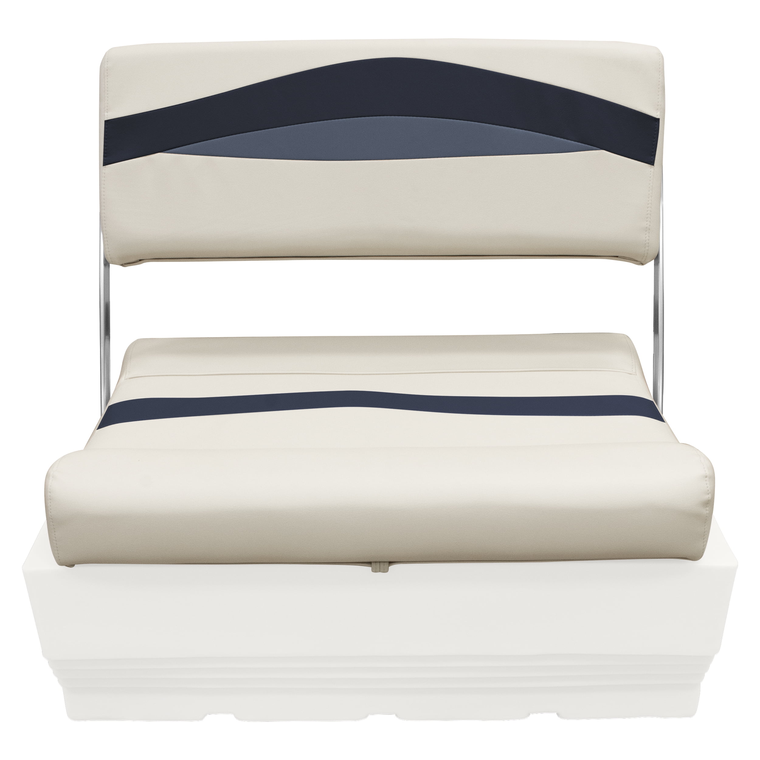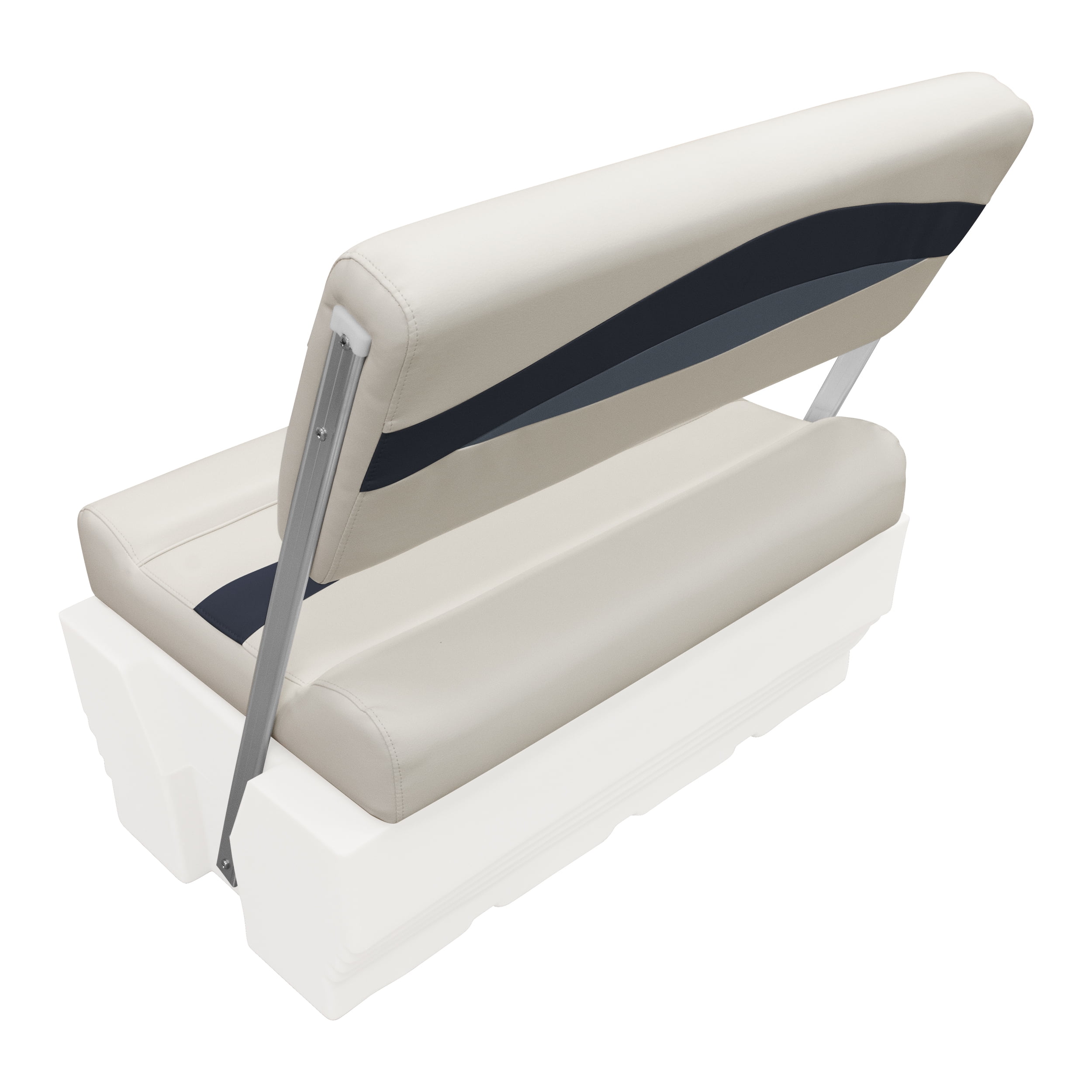 Wise Premier Series Flip-Flop Seat is the most versatile seat in the boat, can be used anywhere with lots of storage when attached to seat base; Seat back “Flip-Flops” for convenient seating and access from various positions Heavy Duty 28 oz. Soft Touch Marine Grade Vinyl is sewn with Dacron polyester thread to OEM standards; withstands the effects of sun, heat, rain and soiling under normal marine environment conditions; Plush high compression foam padding for comfort•Perfect color and style match with other Wise Premier Series pontoon seating components and accessories Requires Premier Series Base BM1152-1B-990 to Complete the Flip-Flop Bench Seat (Base Sold Seperately)•Dimensions – Width: 33.5″, Depth: 24″, Sitting Depth 18.5″, Overall Height with Base: 35″