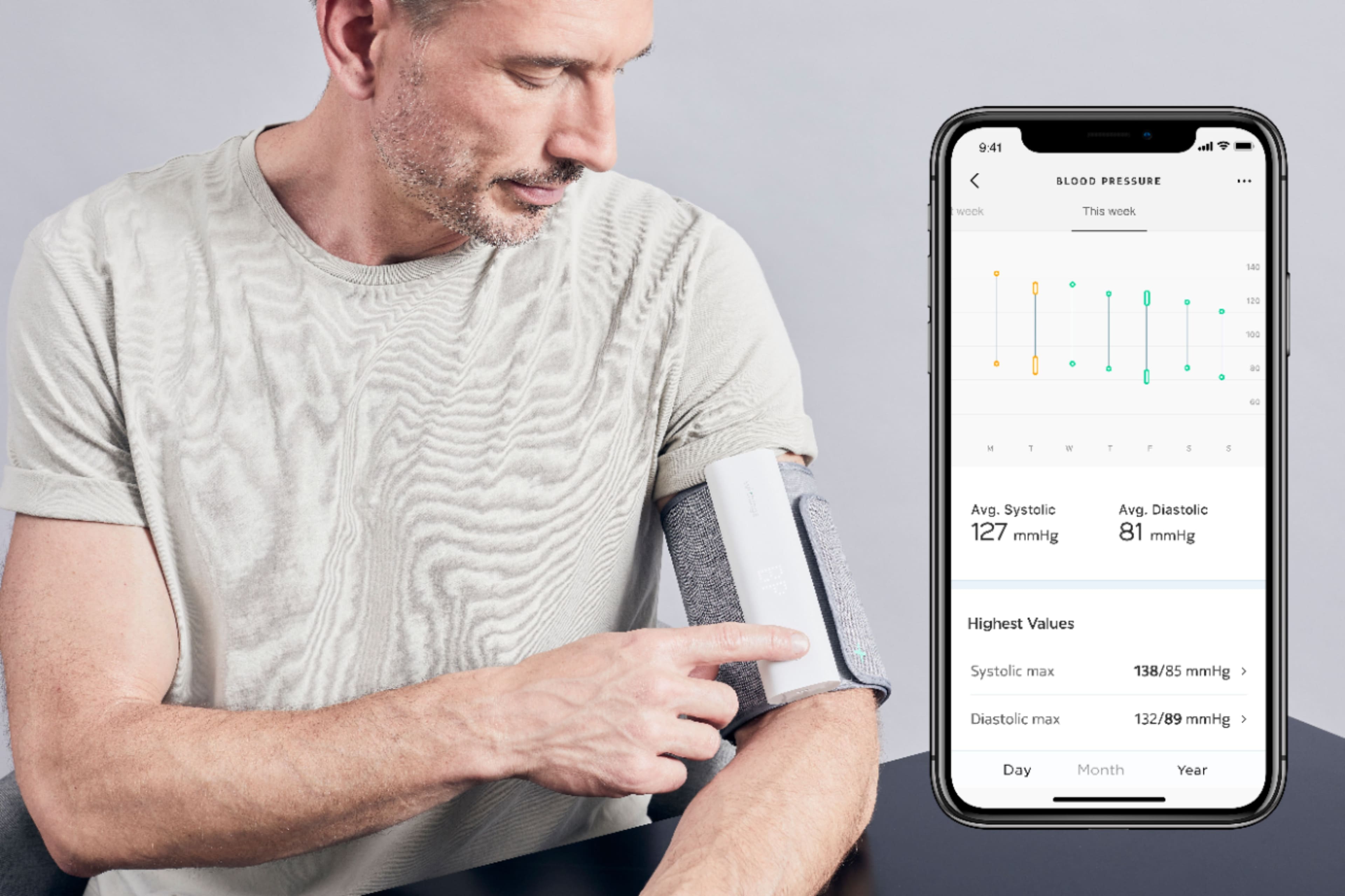 This Wi-Fi blood pressure monitor provides medically accurate blood pressure and heart rate measurements with immediate feedback on the device and full data history in the app.