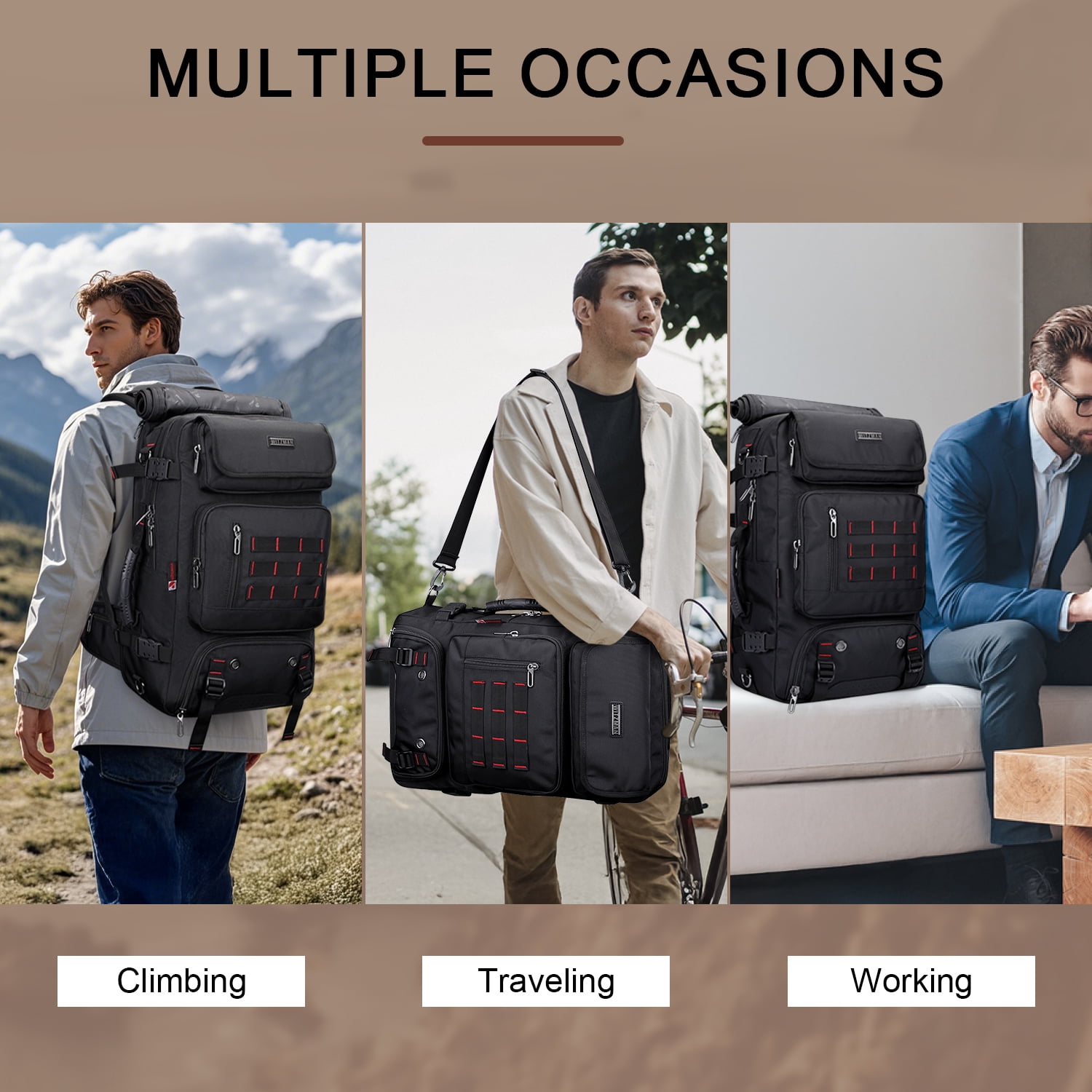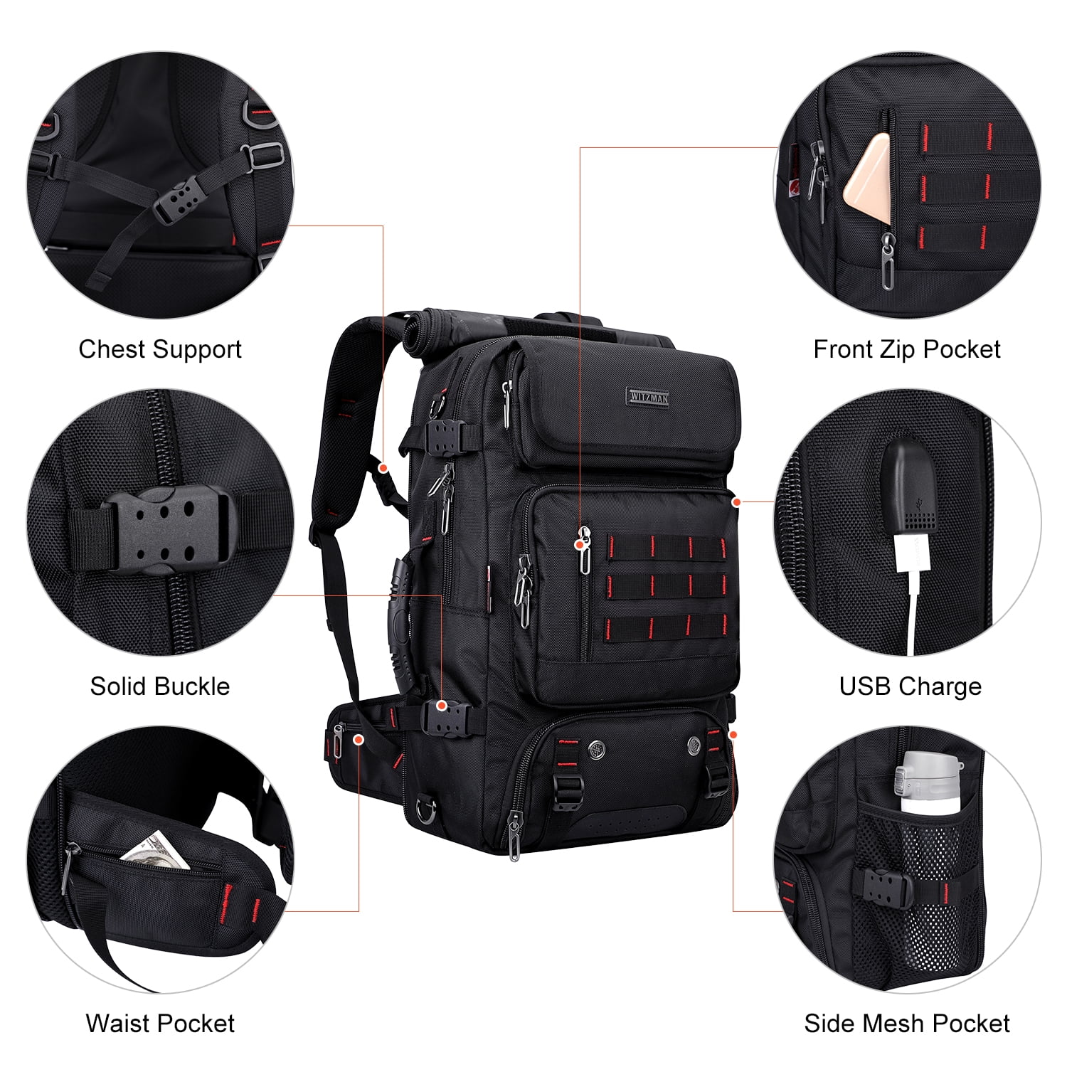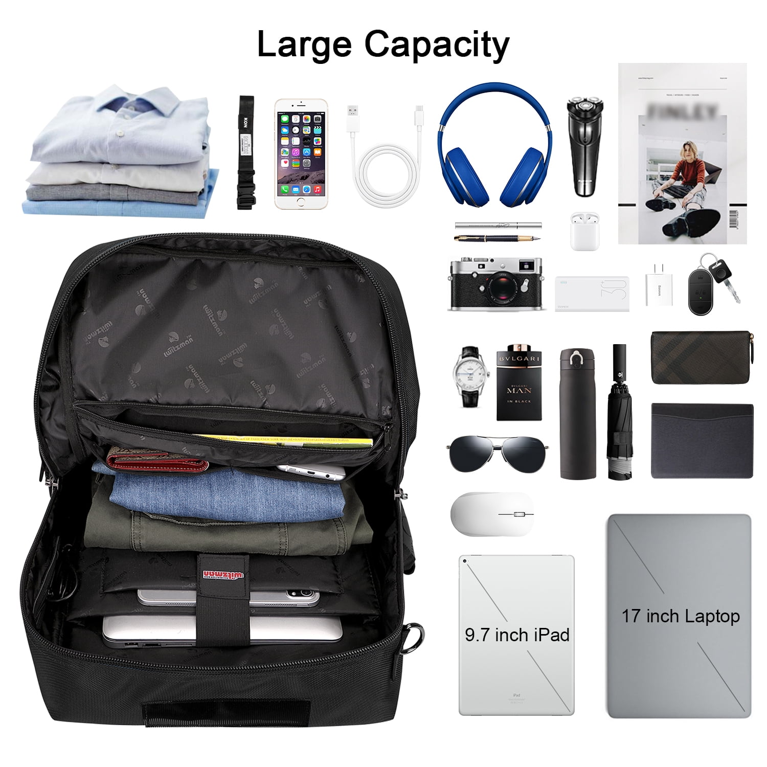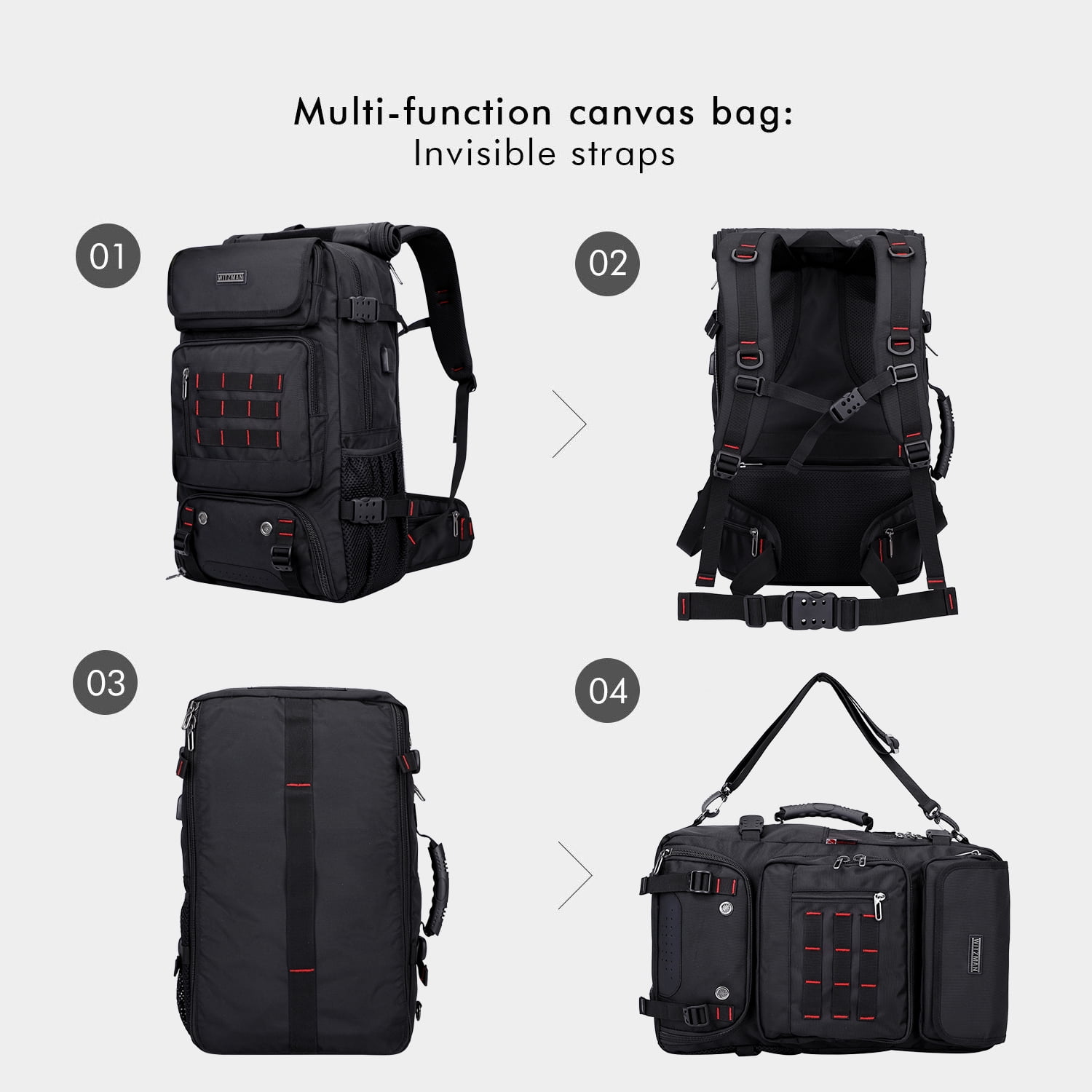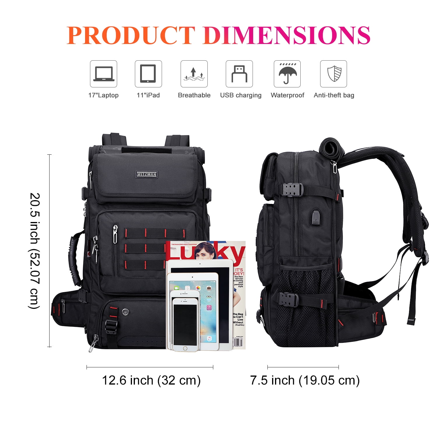 The men travel backpack made of high quality Nylon with polyester lining.High quality zipper with WITZMAN logo. 1 bag 3different usage options for backpack, duffel bag, tote bag.This backpack meets the maximum size allowed by IATA flights,can be fitted overhead and under-seat, is ideal for a weekend trip, business trip. Can hold your 17 inch laptop, 2 sets of clothes, shoes, water bottle, umbrella and other items. Travel backpack is large capacity enough for vacation, weekend getaway, overnight trip.Because backpack for travel has expandable design space is large enough for vacation, weekend getaway, overnight trip. Great gift choice for your family and friends for Valentine’s Day, Anniversary, Birthday, Christmas, New Year and Thanksgiving Day.