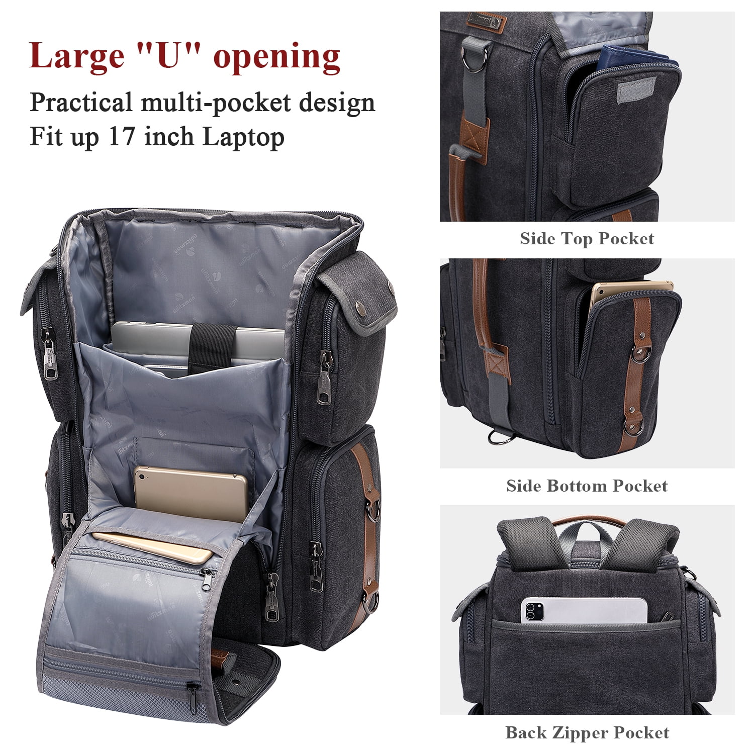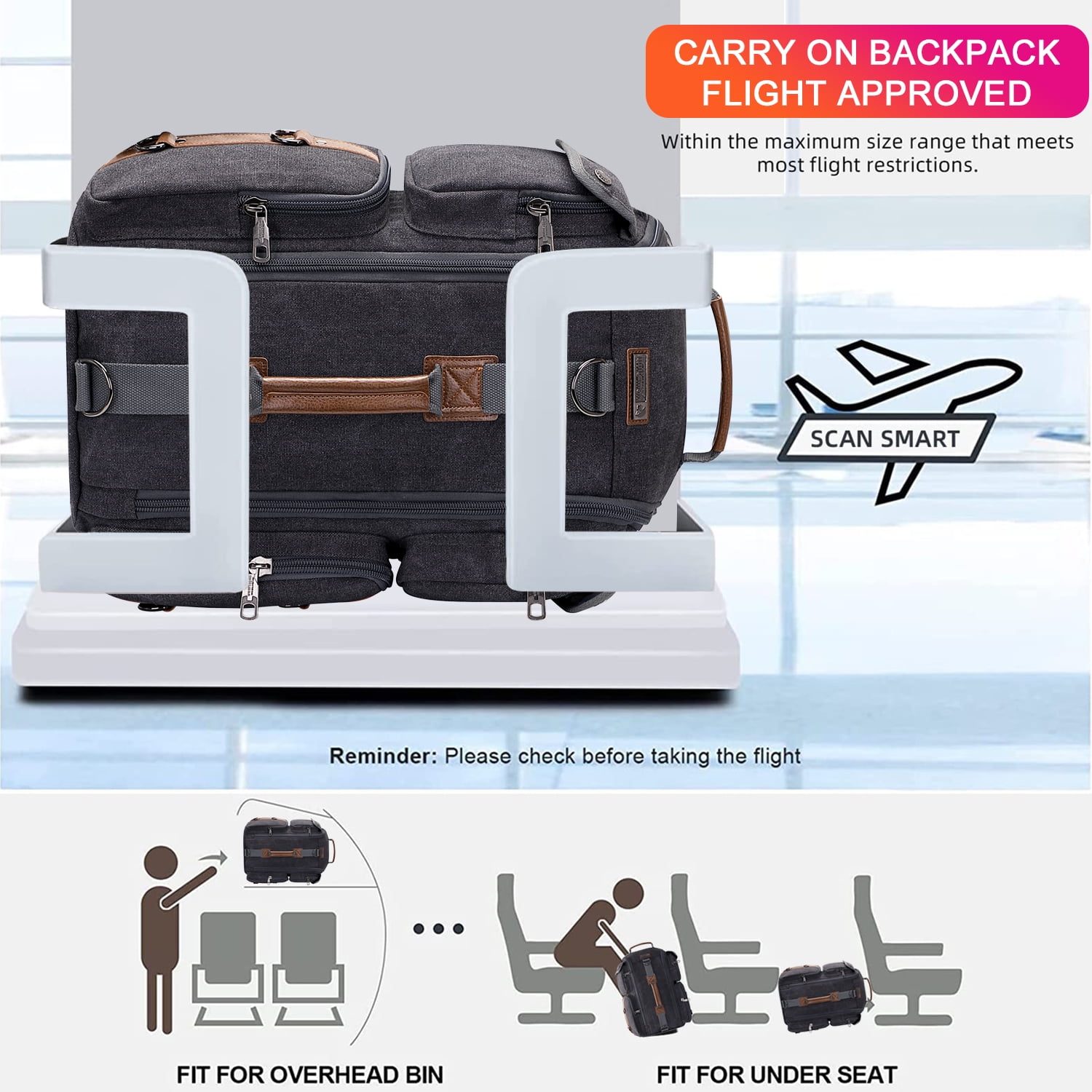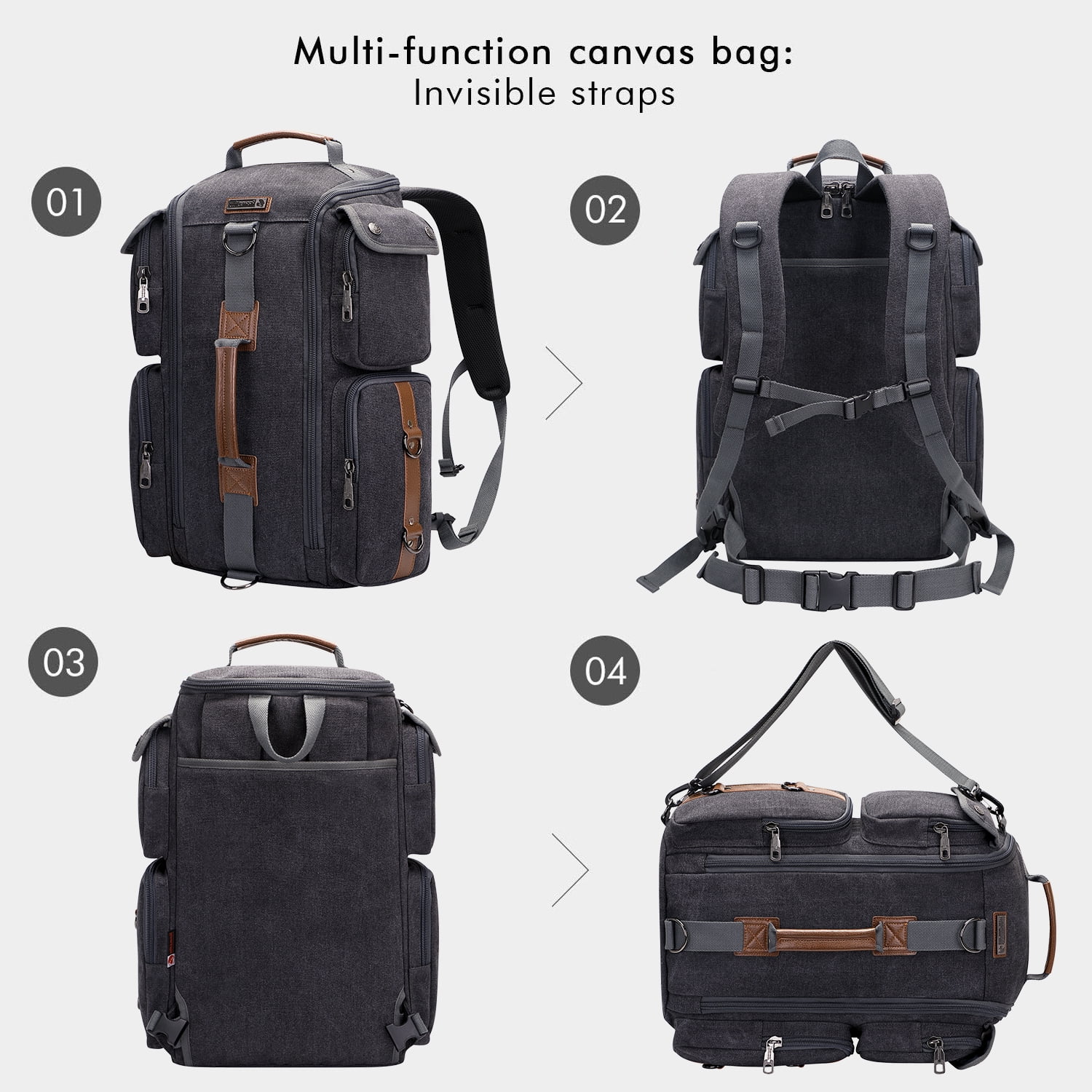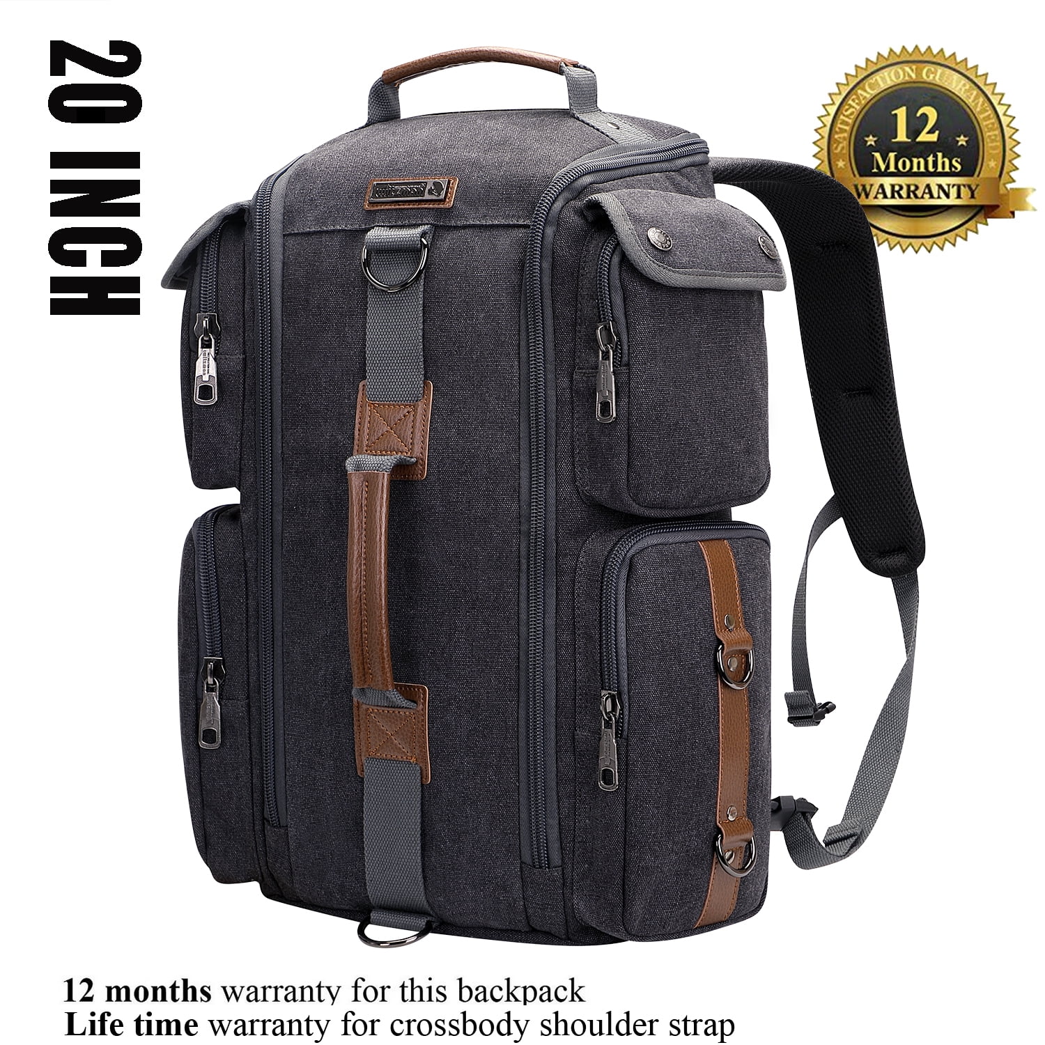 ✈ Material: This luggage backpack made from high quality Canvas. polyester lining. Product Dimension: Approx 13″L x 20″H x 6″ W; Weight: 1.45kg(3.19 lbs) ✈ Backpack Structure Multi Pockets Design: External: 1 main top U shaped zipper pocket,two zip pockets on the two side,1 back large zip pocket; Internal: 1 sunder padded laptop pocket and ipad pocket ,1 mesh pocket ,2 zip pockets ,1 open pocket. ✈ Multifunctional Backpack: This traveler backpack come with a removable and adjustalbe shoulder strap. The backpack straps can be hidden in the back compartment. You can easily convert it into a duffel bag, crossbody bag, shoulder bag, tote bag. ✈ Large Capacity: This men rucksack for large storage and organization for small items. The main spacious compartment for supplies, travel accessories, clothes, sunder. Versatility pockets to keep your items organized and easy to find.Suitability for travel gifts with men women who like international travel, camping, hiking and overnight trip. ✈ Easy to Organize: The travel backpack’s main compartment with a laptop pocket for 12 to 17 inch laptop roomy space to store different travel gears. The travel backpack is large enough for vacation, weekend getaway, overnight trip.