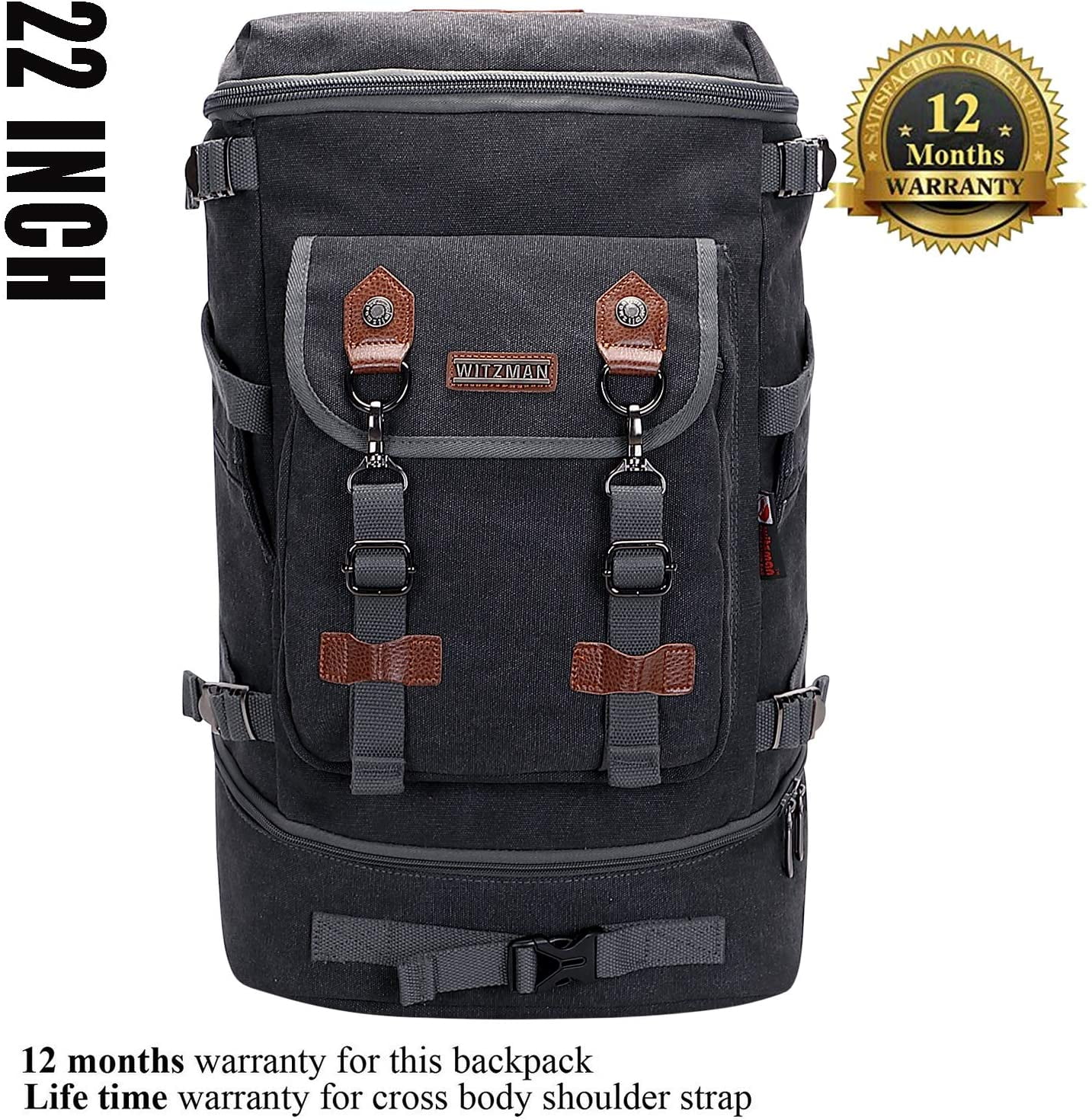 WITZMAN Travel Backpack for Men Large Carry on Vintage Canvas Luggage Backpack Duffel Bag with Shoe Compartment (A568 Black)