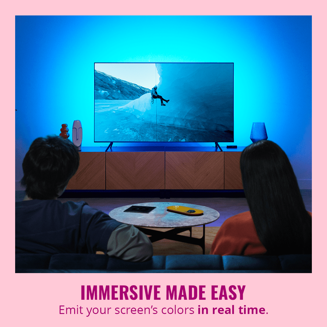 The WiZ Sync Box offers a host of features and functionalities that set it apart, so everyone becomes an artist in their own home. Using the intuitive WiZ app, you can easily control your lights from anywhere using your existing Wi-Fi network. Whether you’re at home or on the go, you can adjust colors, brightness, and effects with just a few taps on your smartphone. The WiZ Sync Box has the perfect lighting to suit your mood and style. With over 16 million colors to choose, discover what RGBIC can do by pulsating different colors simultaneously creating your perfect multi-colored light ambiance. Thanks to its innovative design and adhesive backing, installing the WiZ Sync Box is a breeze. Simply peel, stick, and connect – no complicated wiring or professional installation required. And with its cuttable design, you can easily tailor the length of the strip to fit any space, ensuring a perfect fit every time. With support for popular smart home platforms like Google Home, Amazon Alexa, and Apple Home Kit, controlling your lights has never been easier. Simply use voice commands to adjust settings, create scenes, or turn your lights on and off – no need to lift a finger. Unleash your creativity with WiZ Sync Box today and experience the difference for yourself. Dream it, Create it, WiZ it. HDMI box is black in color with 2 HDMI ports.
