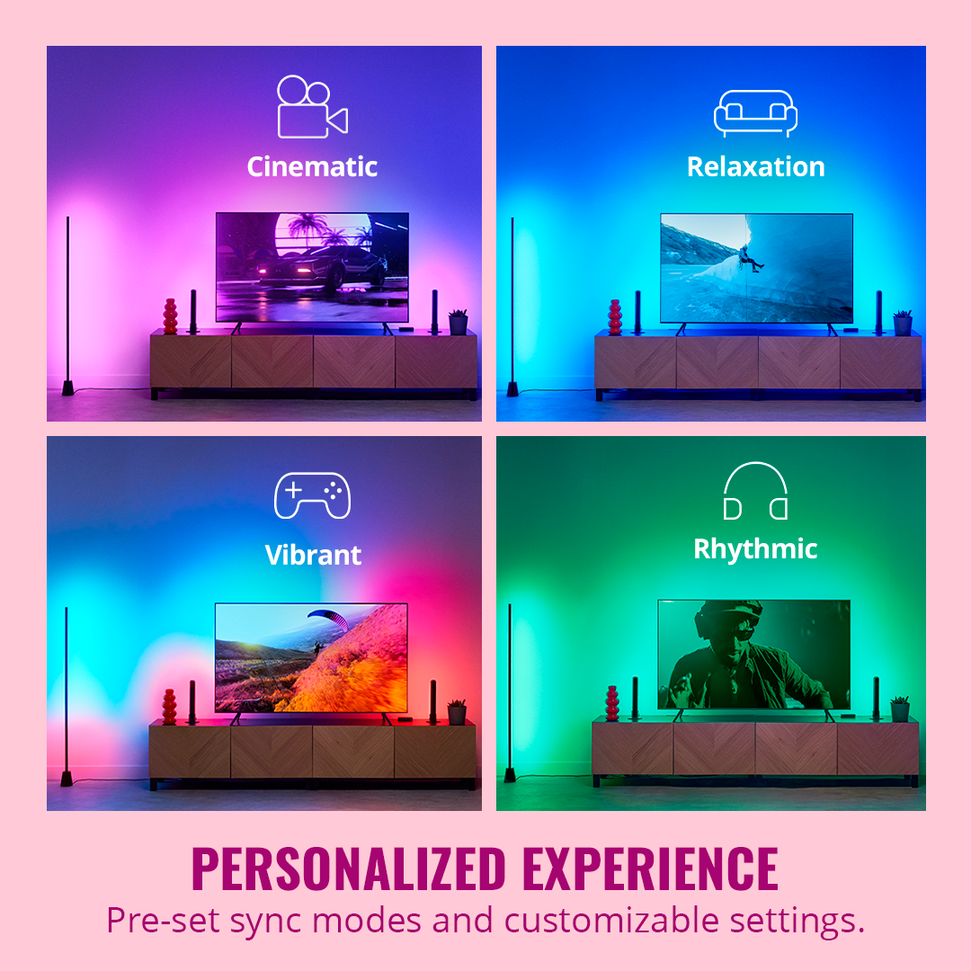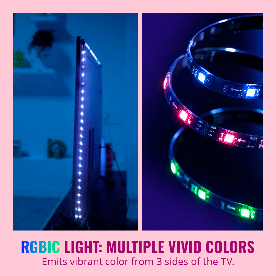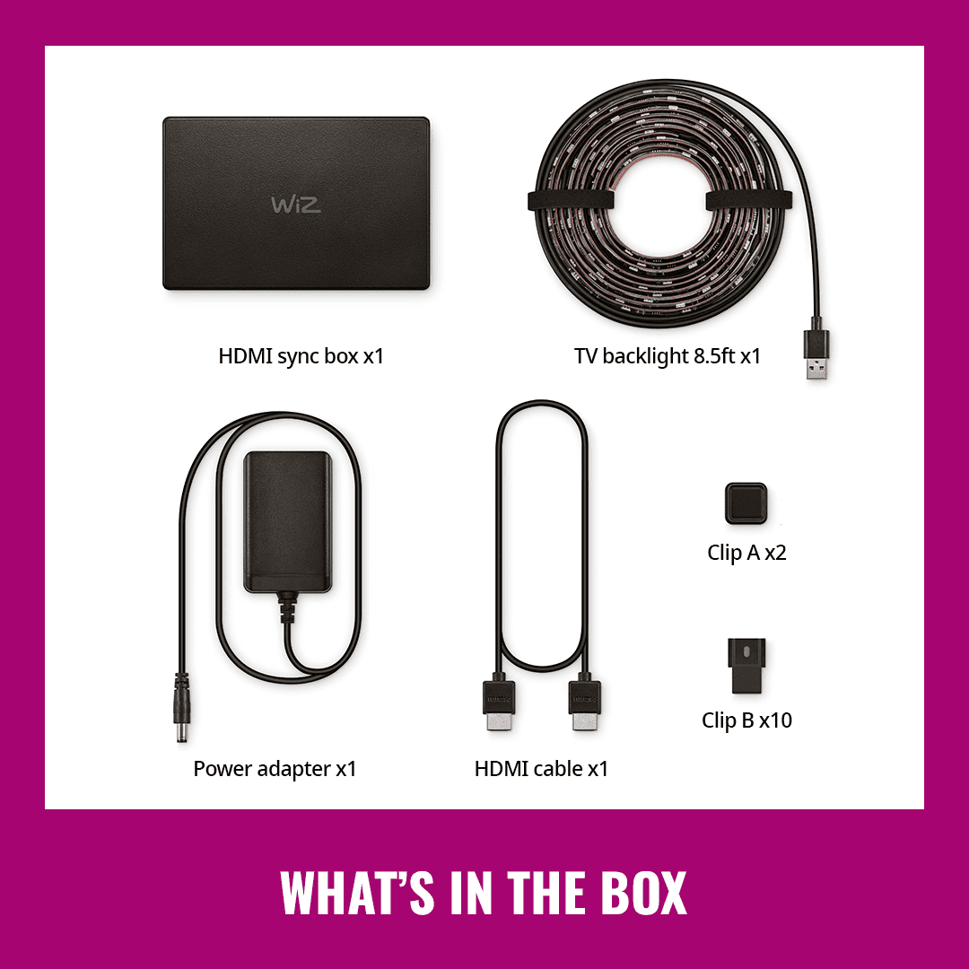 Smart Dimming: Dim to the right brightness level via app or voice control. Easy setup: WiZ works with your existing Wi-Fi router, no additional gateway is needed. Simply plug in your new light, download the WiZ app and you’re ready to go! Smart control: Control from anywhere with the WiZ app or go hands-free with voice control. The app makes it easy to invite family members and guests to control the lights without changing your settings. Smart control is easy for everyone with WiZ. Product Length fits 55-65″ TVs