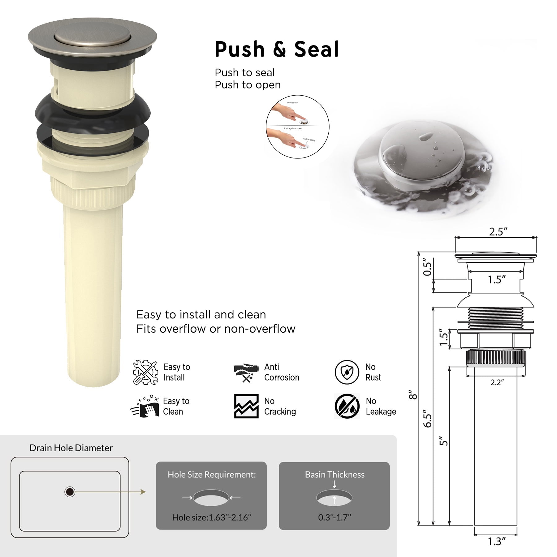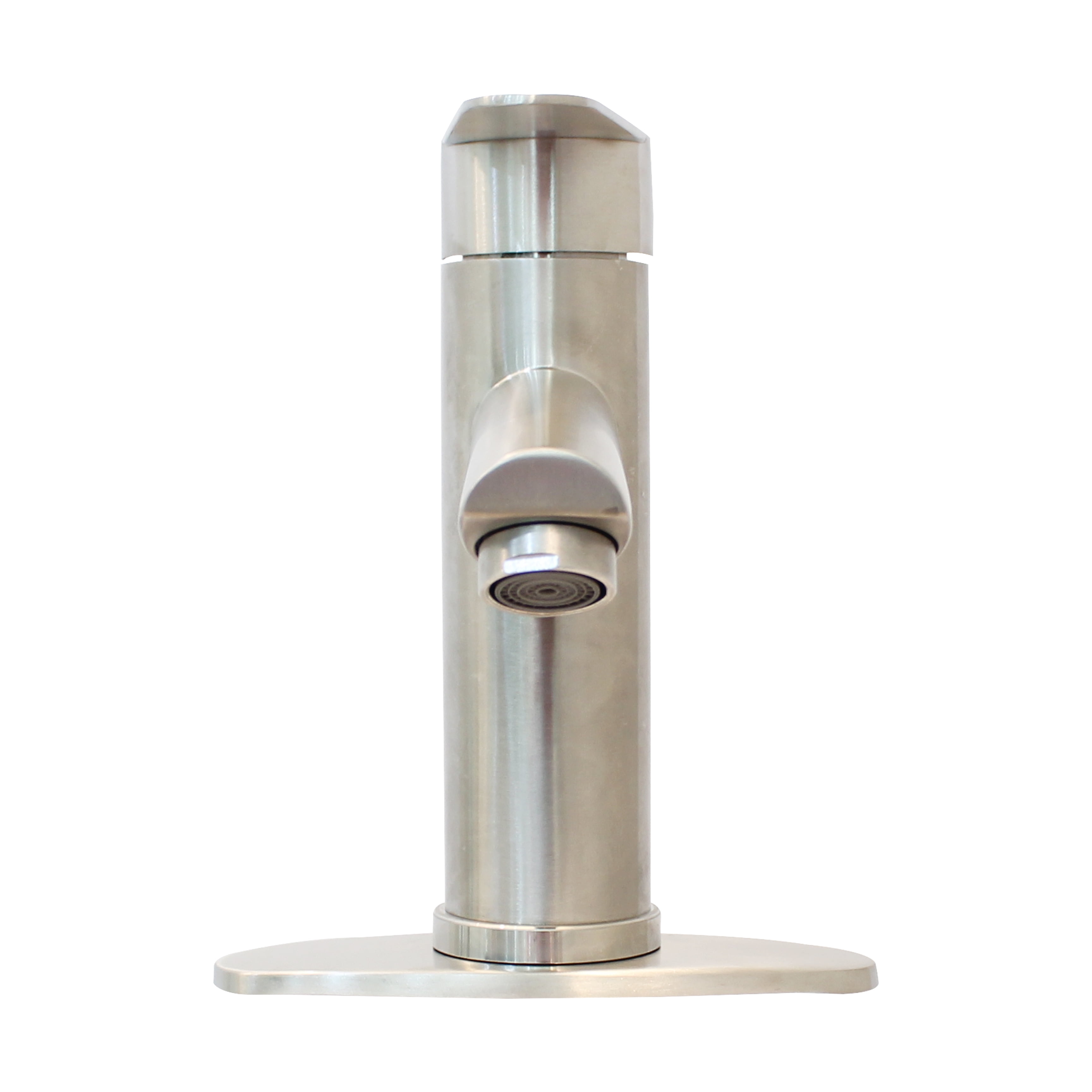 Stainless Steel Lavatory Faucet Single Handle with Pop Up and Deck Plate High Quality Ceramic Cartridges for Durability and Reliability Brushed Nickel Finish Flow Rate: 1.2 GPM Brushed Nickel Finish Standard 3/8″ IP faucet connection Easy do-it-yourself Installation Complies with ASME A112.18.1-2012/CSA B125.1-12 Complies with NSF Meets California low-lead AB1953 requirements cUPC certification