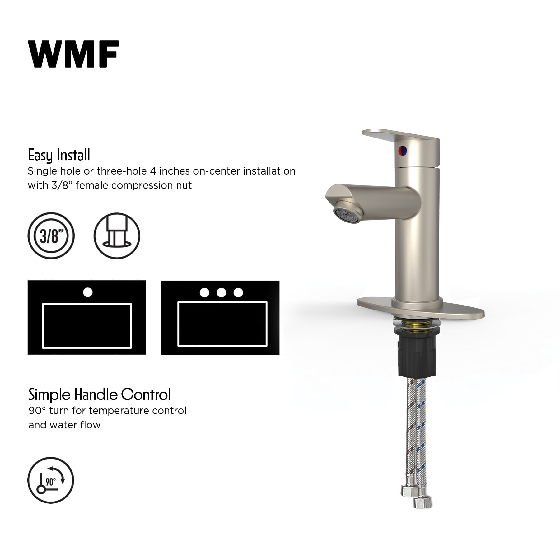 WMF-4316SS-1S – Stainless Steel 4″ Single Handle Lavatory Faucet, Bathroom Sink Faucet with Pop Up and Deck Plate